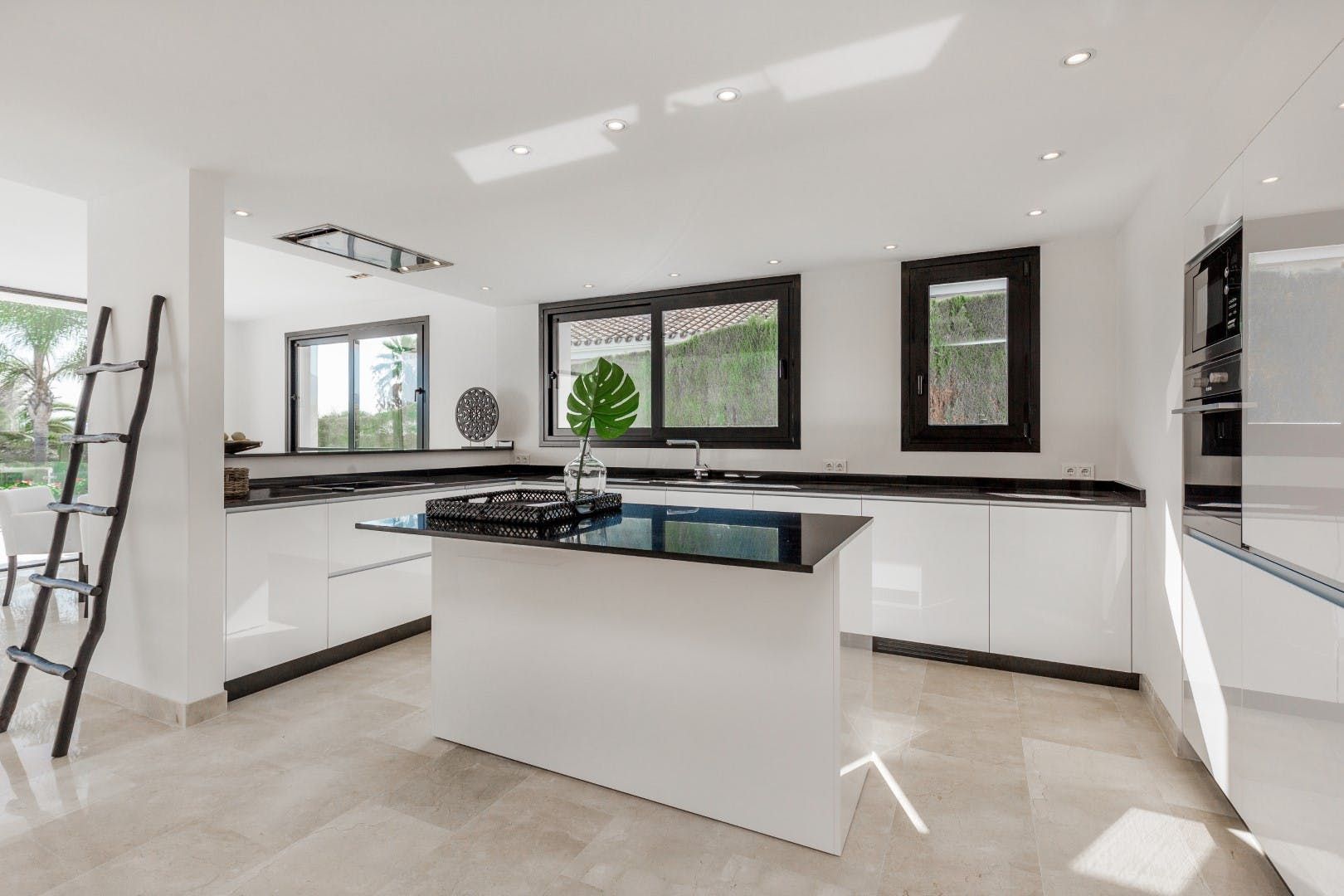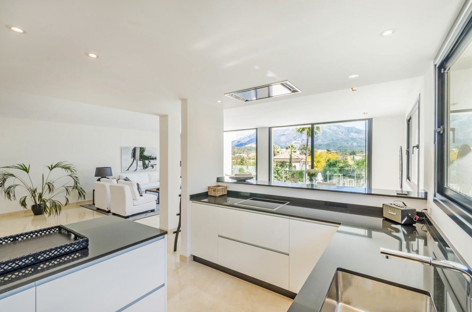 Situated among exclusive golf courses and just a short drive from both the beaches of Puerto Banus and Marbella, this stylish villa has a lot to offer. The outdoor boasts a private swimming pool, along with a secluded garden where you can share delicious alfresco meals. It would be hard to beat the mountain views which can be admired from the terrace here, and there’s even an outdoor bar for those evenings of drinks and barbecue dinners under the stars, with the garden's state-of-the-art illuminated irrigation system to wow you. The inside exudes minimalist elegance and offers plenty of bright space. Bear in mind that there are some steps to climb here, including to access the pool area.