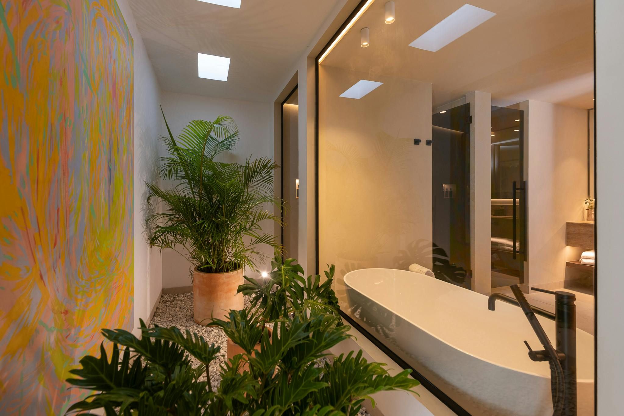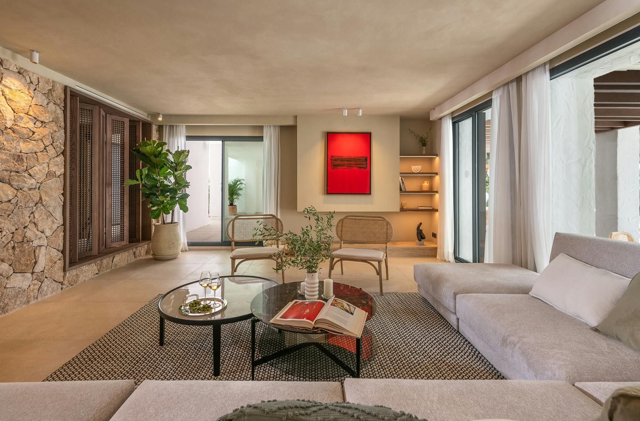 This contemporary villa perfectly blends coastal and Scandi styles to achieve a slice of modern paradise. And it’s not just the interior design that caught our eye here. There are private terraces and plunge pools when you want to enjoy a quiet moment, while the main terrace provides a large pool, an outdoor lounge and a dining area for sipping sangria long into the balmy evenings. Location-wise, you can dine and shop along the Puerto Banus marina or spend a beach day on Playa Nueva Andalucía – they’re walkable, though we suggest driving to maximise sunbathing time.