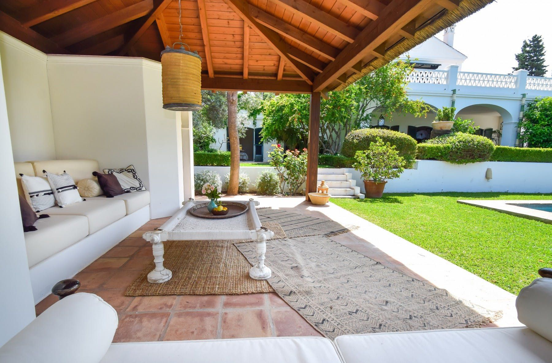 Close to the sandy beaches and traditional Spanish "chiringuitos", this Colonial-style villa offers a homely retreat from which to explore all of Marbella's main attractions. Retaining some of its original features, arriving at the traditional hand-crafted entrance will transport you back in time. Boasting lush private gardens, start your day with a refreshing swim in the heated pool, or simply savour a cup of coffee on the patio before heading out to explore.