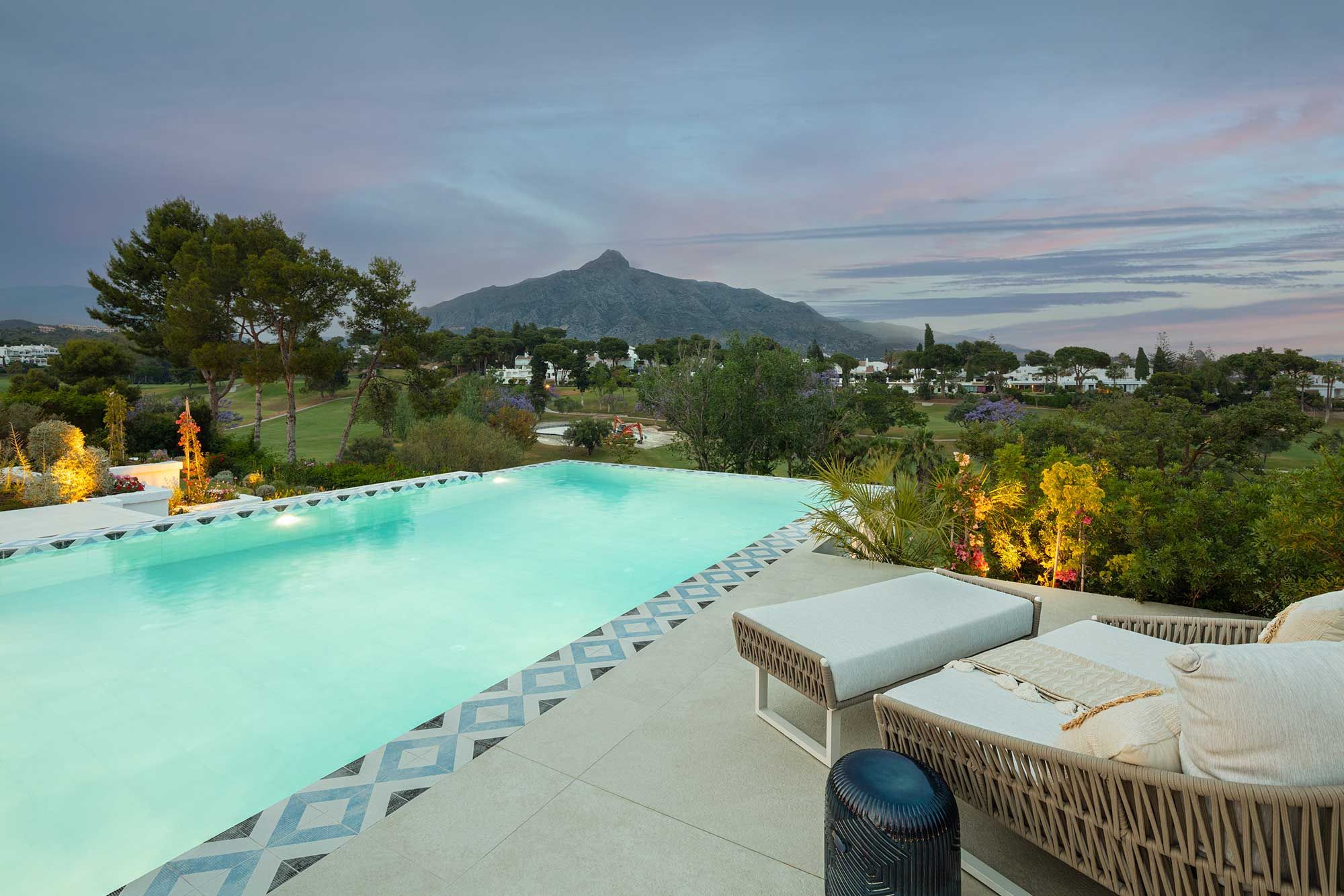 This contemporary Marbella villa is the epitome of luxury. Perfect as a base for a large group, there’s so much to enjoy here that you may never want to leave home. Indoor and outdoor heated pools, a private gym, massage room, sauna, padel courts – whether you love to stay fit or relax, this home has you covered. Throw in the sun-kissed terraces and views of La Concha mountains, and it’ll tick all your holiday boxes. If you can tear yourself away, you’re well-located, too. Aloha golf course sits next door, while it’s a mere five-minute drive to Puerto Banús, where the marina and a whole host of eateries, bars, and the beach await.