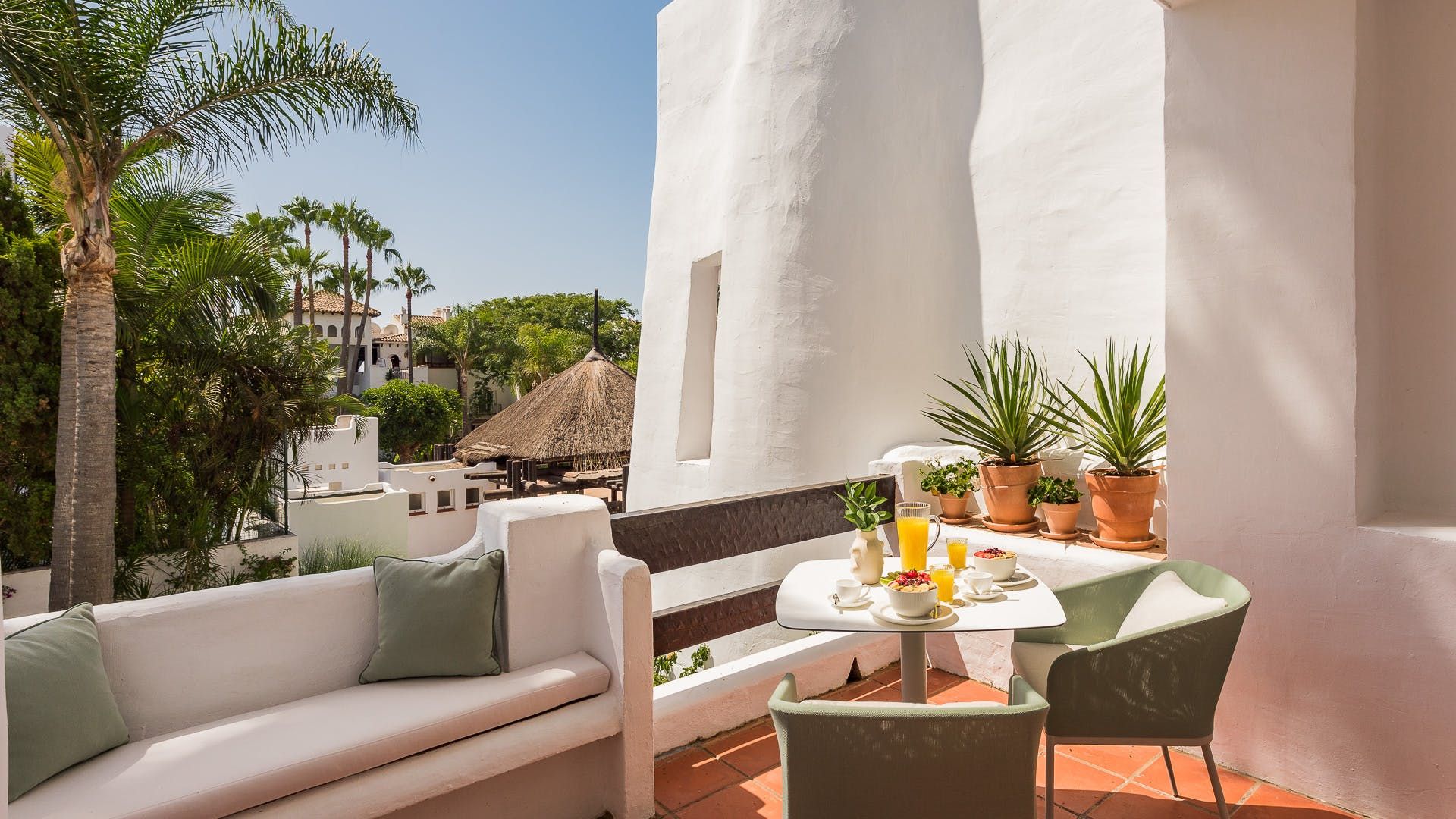 With a stay here, relaxation and restoration will be effortless. Open your eyes to the Costa del Sol rays dancing on the ceiling of your bedroom sanctuary before stepping out onto your cactus-lined balcony to sip your morning coffee. We imagine you’ll spend leisurely mornings stretched out on the balcony sofas with your holiday read and fresh juice before heading to the pool for a refreshing dip.