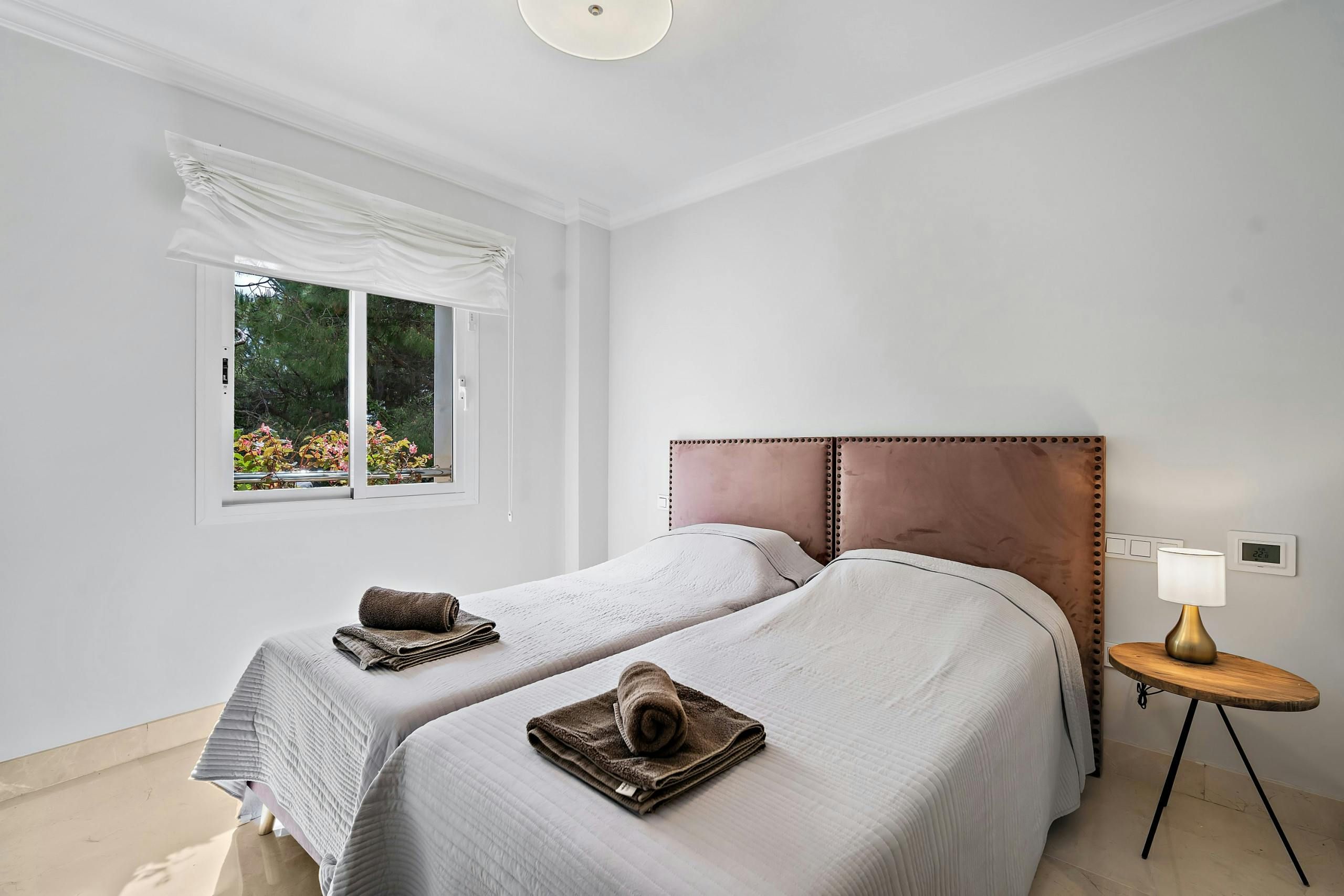 Just a few metres from the beaches of Marbella's Golden Mile, this apartment is a great choice for those visiting the Costa del Sol. Along with its enviable location near the shops, bars and restaurants, you'll also be able to enjoy the resort's tropical gardens and two shared swimming pools. The apartment itself is sleek and practical with an open living area leading out onto a private terrace benefitting from verdant green views – it's a lovely spot for drinks after a fun-filled day at the beach. Downstairs, you'll also find a welcoming reception area and helpful staff on hand to ensure you have an endlessly relaxing stay.