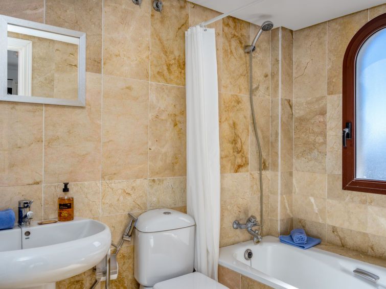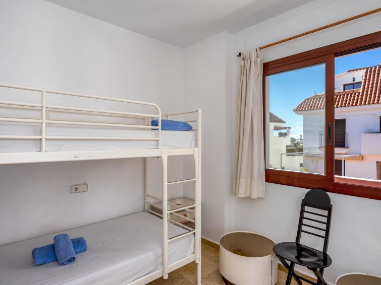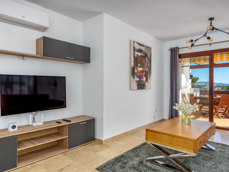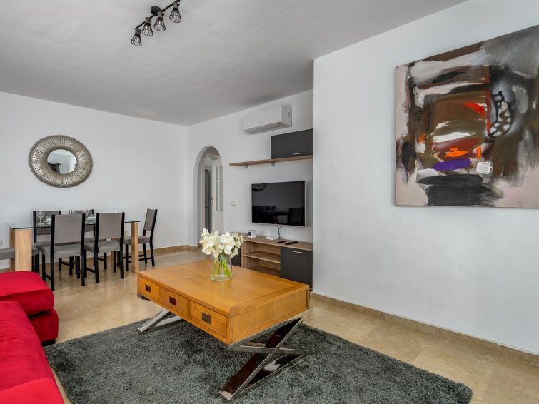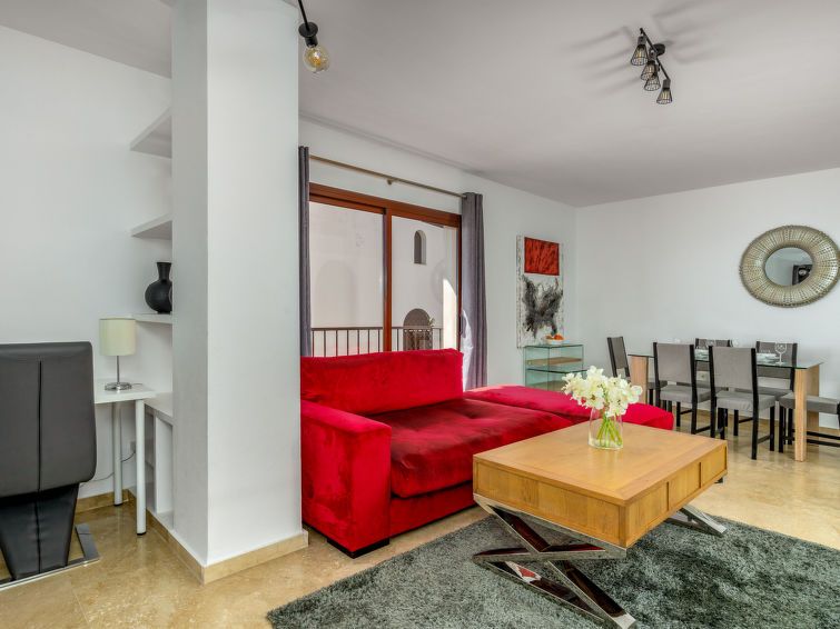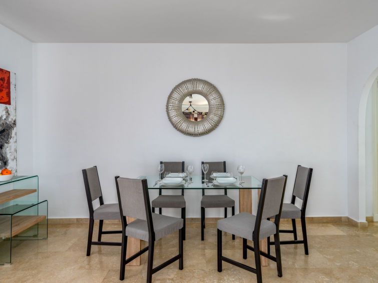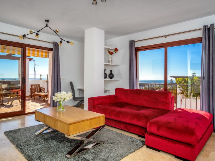 "Coto Real", 4-room penthouse 111 m2 on 2 levels on 4th floor. Tasteful furnishings: living/dining room with digital TV and air conditioning. Exit to the terrace. Kitchen (oven, dishwasher, 4 ceramic glass hob hotplates, toaster, kettle, microwave, freezer, electric coffee machine).