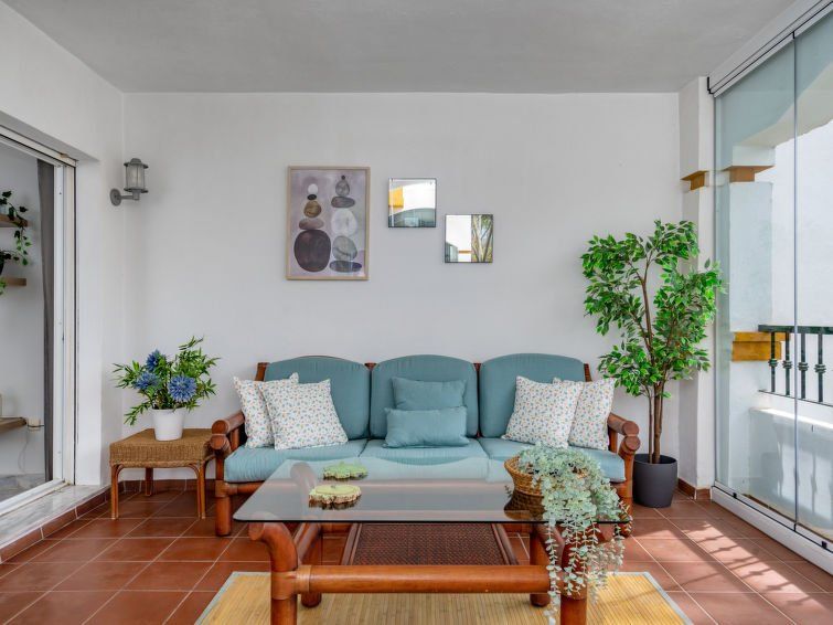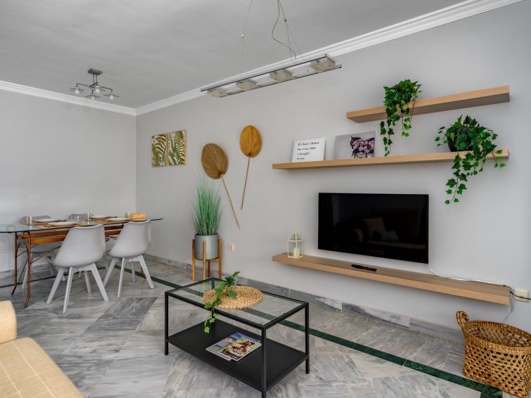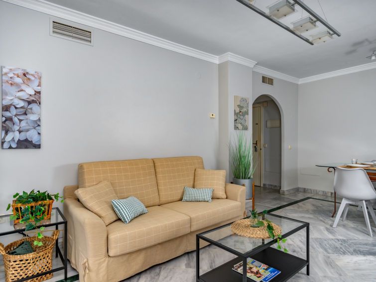 "Dama de noche", 2-room apartment 63 m2 on 2nd floor. Living/dining room with 1 sofabed and digital TV. Exit to the terrace. 1 room with 1 french bed (160 cm, length 200 cm). Kitchen (dishwasher, 4 ceramic glass hob hotplates, toaster, kettle, microwave, freezer, electric coffee machine).
