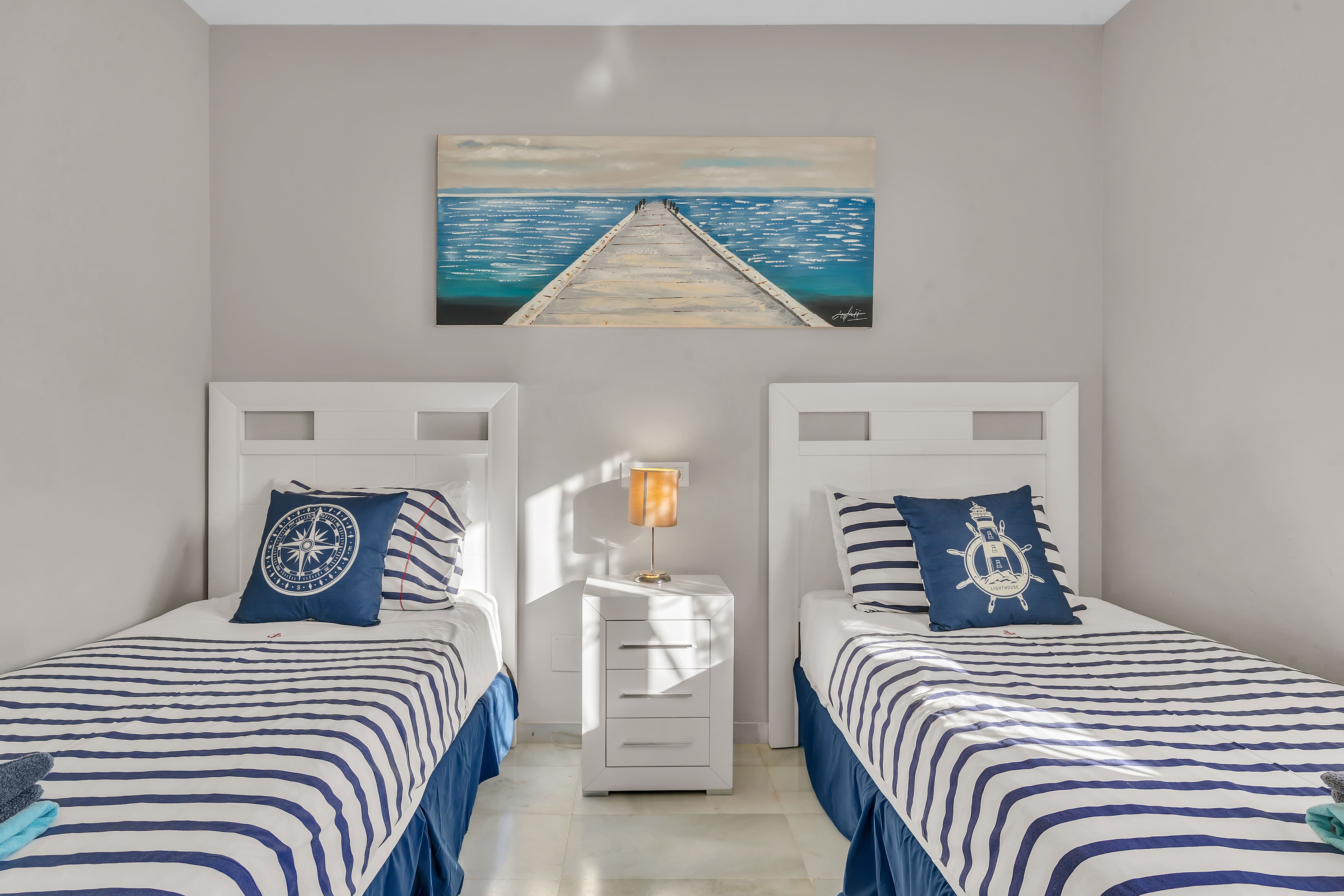 Situated on the luxurious Golden Mile, just footsteps from Casablanca Beach, this elegant townhouse is equal parts stylish and welcoming. Make yourself comfortable in the open–plan living space – we loved the bold artwork, plump taupe sofas and solid oak dining table. When you’re ready for something to eat, try your hand at recreating classic Spanish dishes in the fully-equipped kitchen or call upon your fantastic host to arrange for a private chef to take care of mealtimes.
