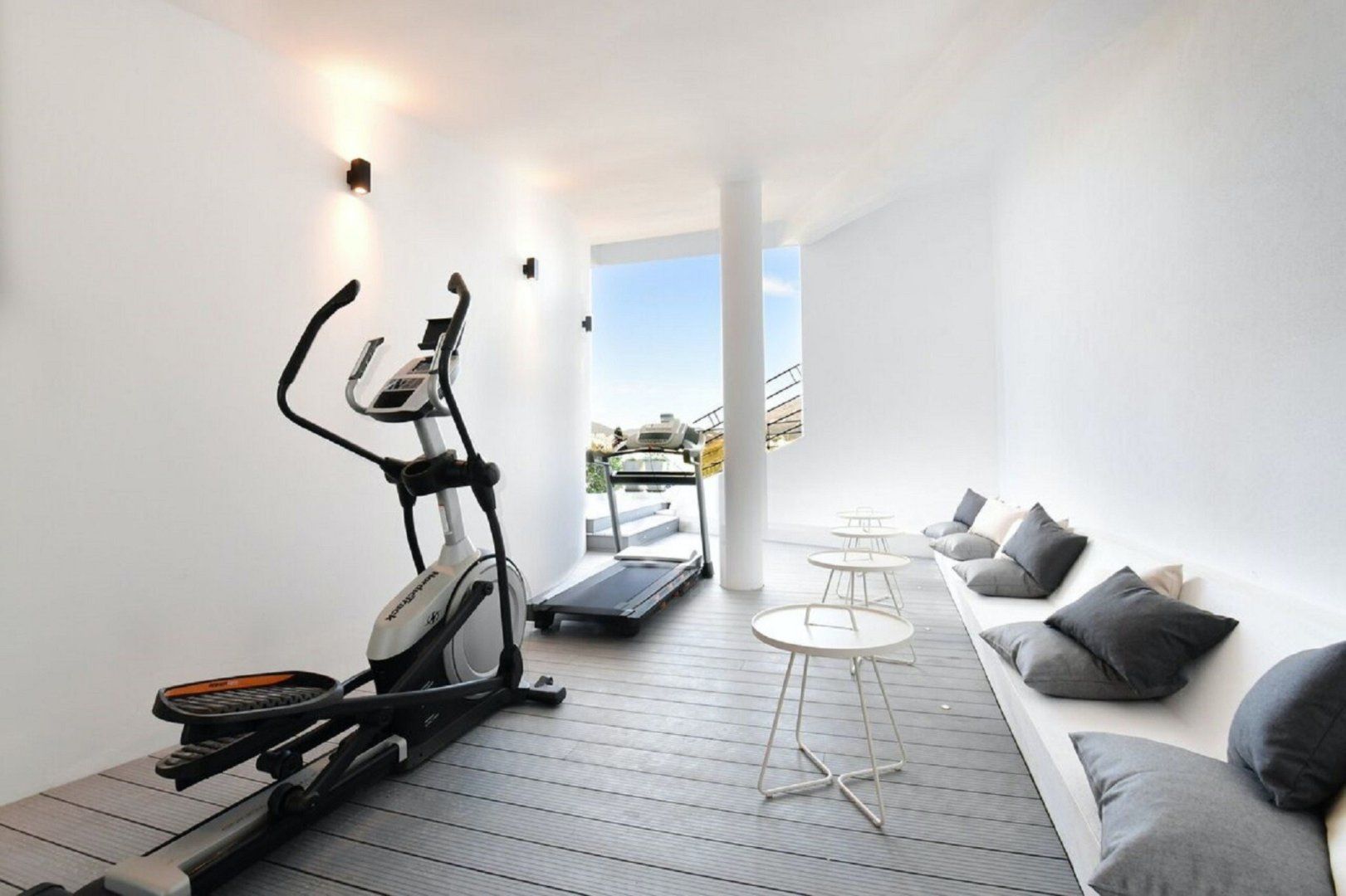 Five of the seven bedrooms have en-suites. The two lavish main bedrooms upstairs lead out onto the vast terrace, which is fitted with exercise equipment, plenty of outdoor sofas, and a gleaming bar. Steps lead up to the top terrace, where there’s an eight person jacuzzi boasting panoramic views of the valley.