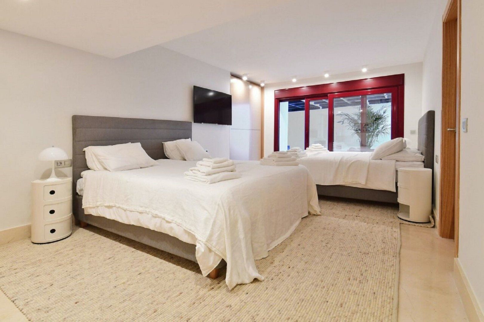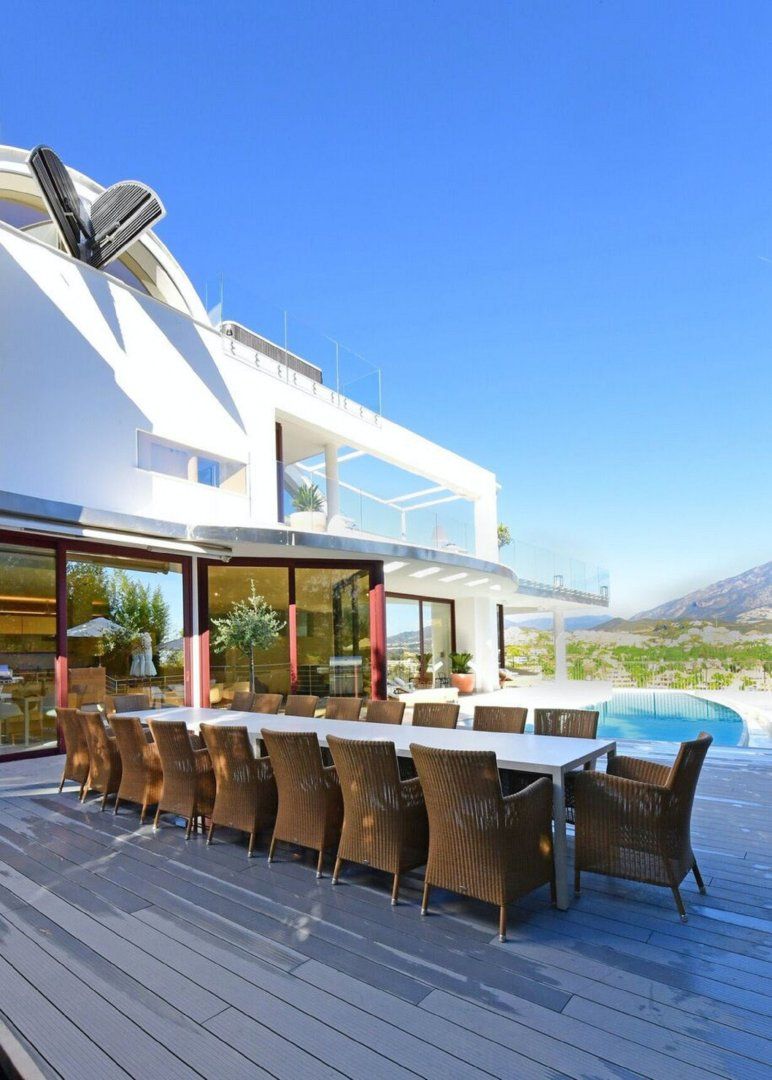 This boldly conceived villa is a modern oasis on the Costa del Sol. Floor to ceiling glass windows zig zag across the living space, bathing it in natural light and framing the view of La Concha mountain. The sleek kitchen is suited to everything from throwing together some tapas, to whipping up lavish dinners. Make use of the pool table in the second living room and get a tournament going, or enjoy a film on the projector on cosy evenings.