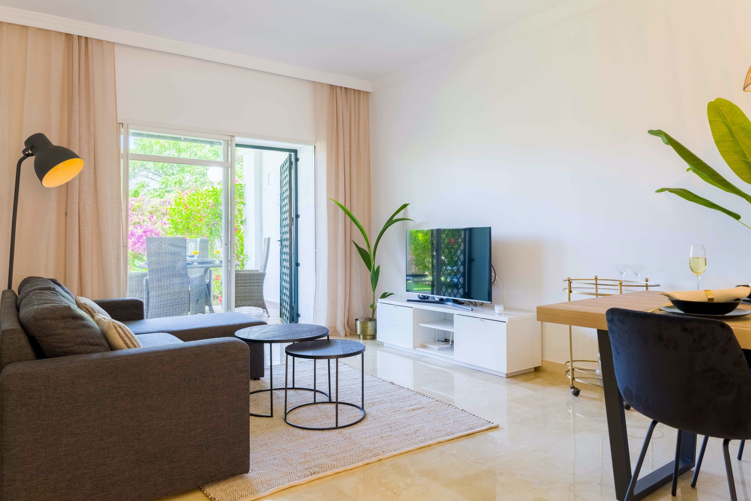 This charming holiday rental is nestled amid dreamy gardens in a pretty gated complex. There are three outdoor pools to choose from – shared with the other residents – including one that’s covered and heated in winter. When you want more privacy, you’ll have your own garden to relax in. Cook on the barbecue and soak up the sun. In terms of location, you’re just a four-minute drive from Puerto Banus. The beach is a short drive away, and there are lots of golf courses nearby.