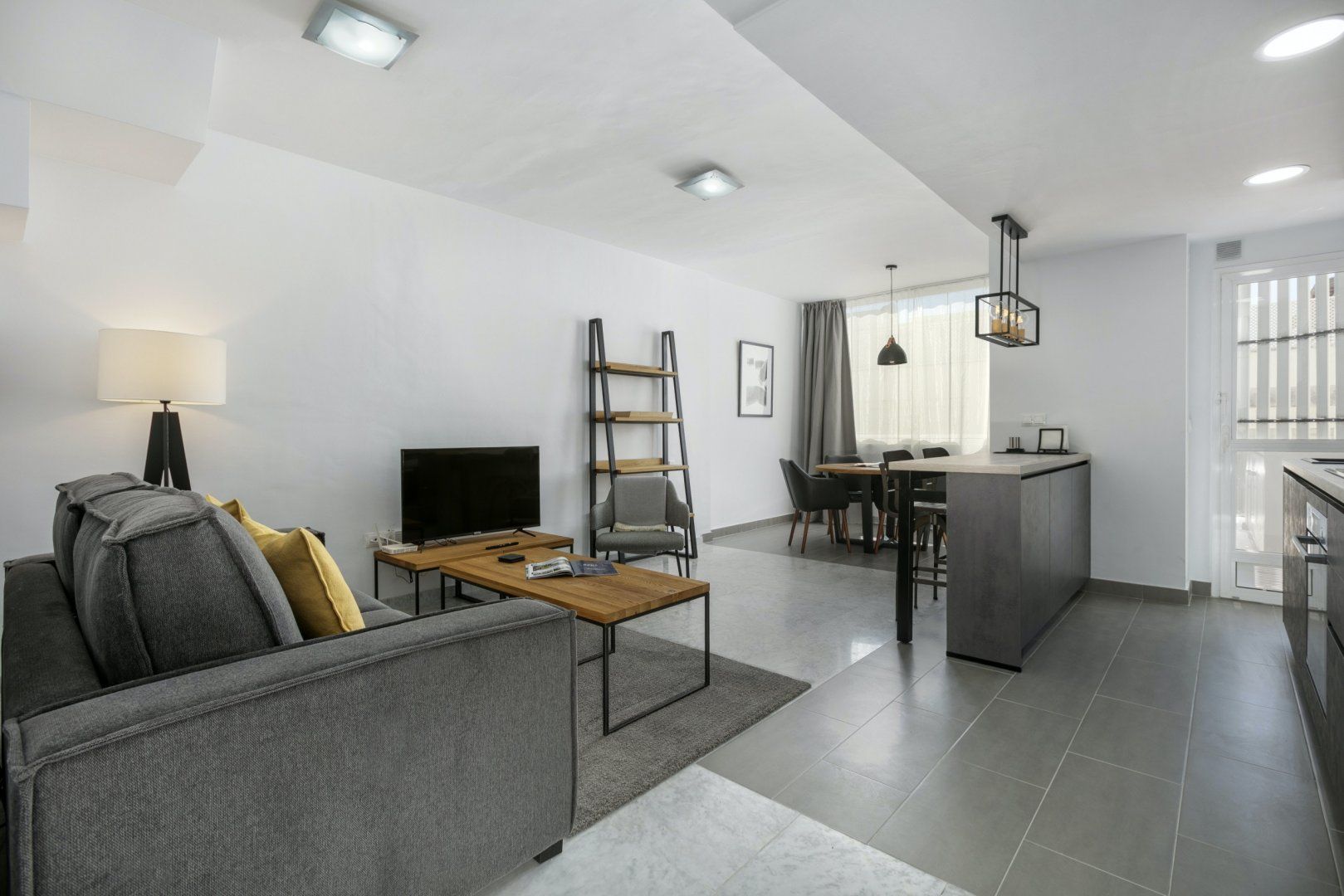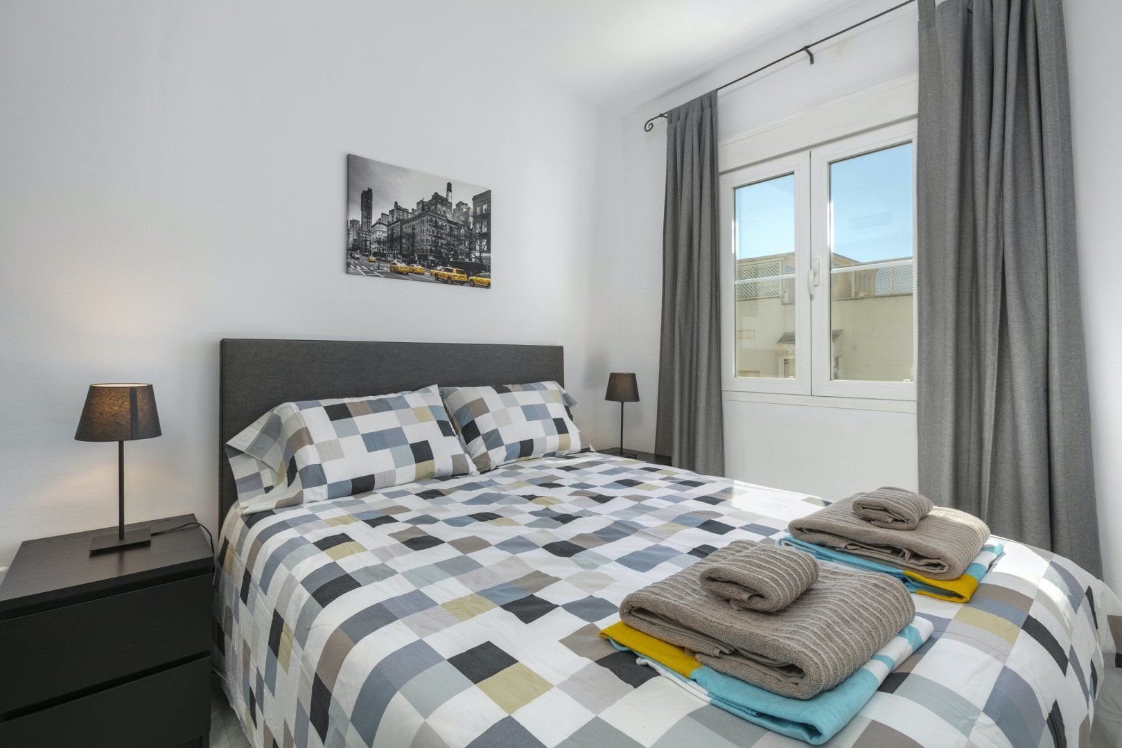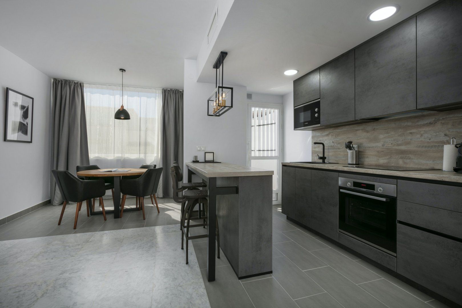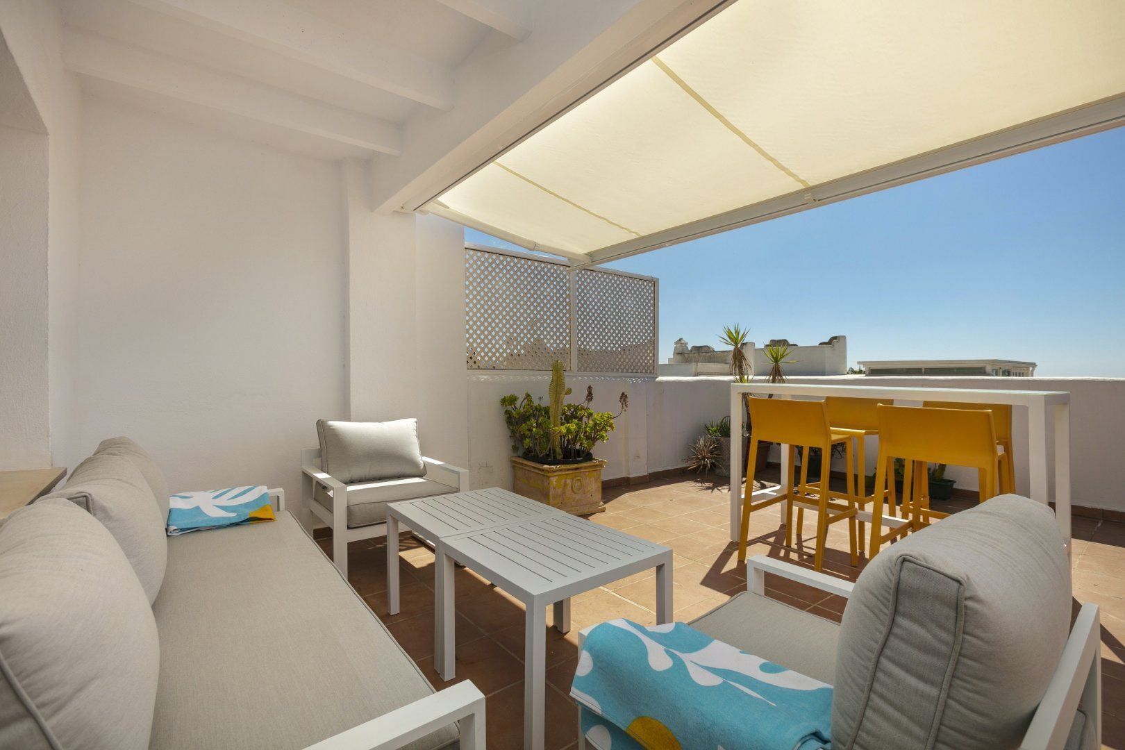 Escape to Marbella's ultra-exclusive Golden Mile and stay in this cool, contemporary apartment in a gorgeous resort-style coastal community. Inside, you'll be greeted by a monochrome masterpiece, with industrial-inspired steel framed furniture and statement lighting warmed by natural wooden accents throughout the stunning open-plan living area.