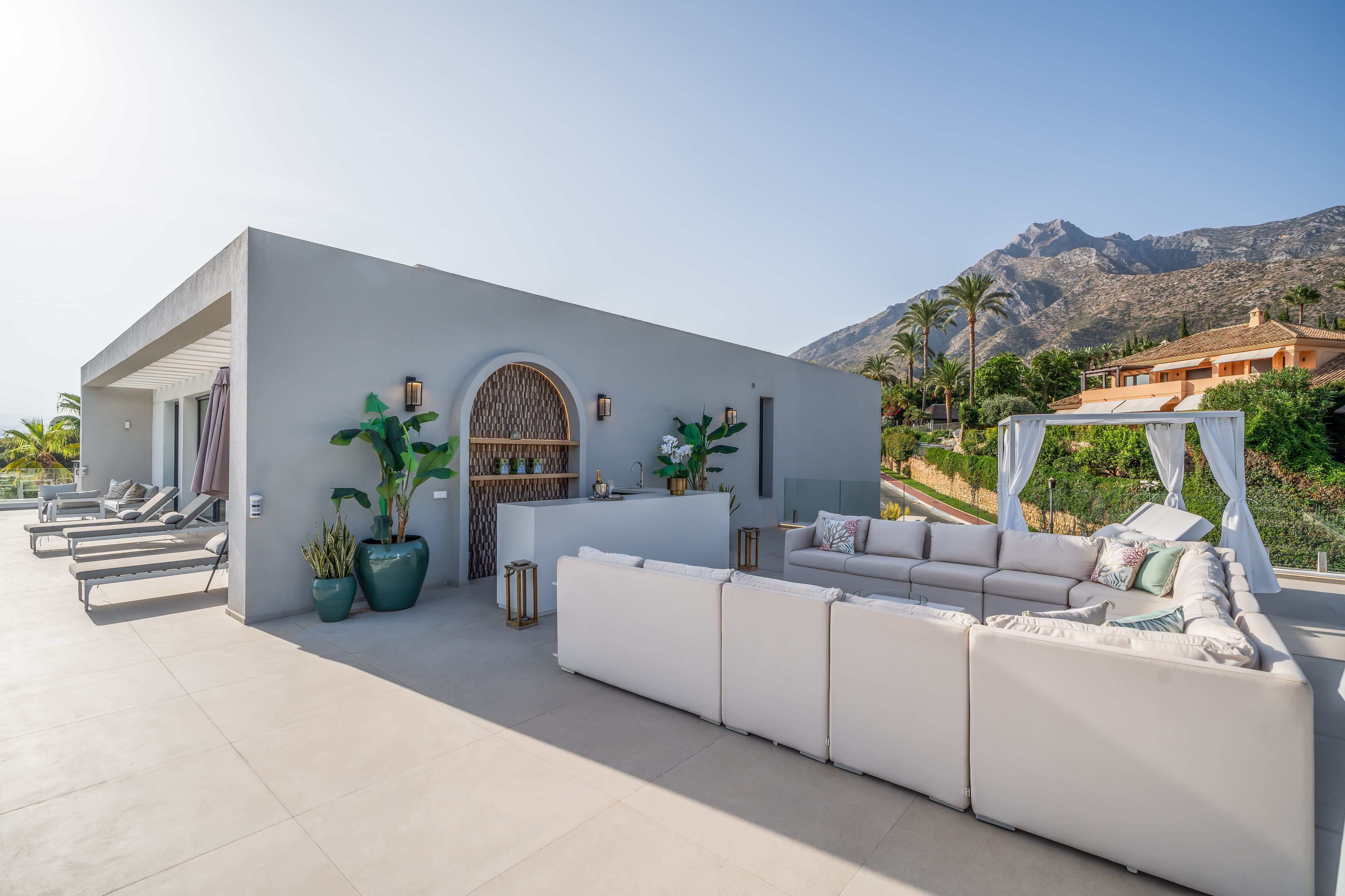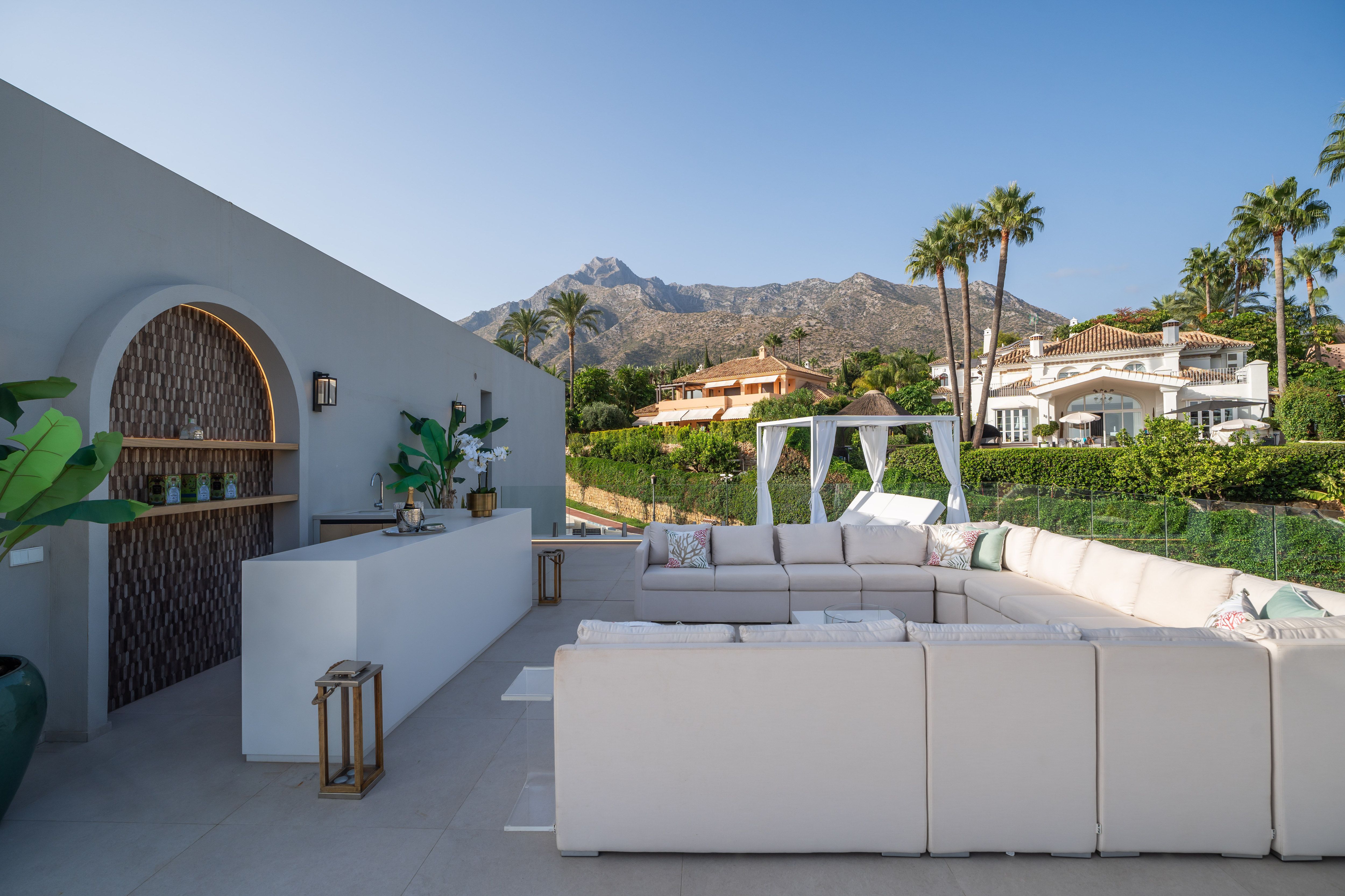 Designed as the ultimate coastal escape, this home opens its doors to pure relaxation. Located in the neighbourhood of Sierra Blanca, you’ll find the grounds include a heated pool, a peaceful terrace and a barbecue. Inside, the sauna and gym set the tone for optimum wellness, while the bedrooms and lounging areas are the perfect embodiment of luxurious living. You’ll also find welcome gifts, complimentary organic toiletries and a range of extra services – including massage treatments and private chefs. And for explorations further afield, it’s just a short drive to Marbella and Puerto Banus.