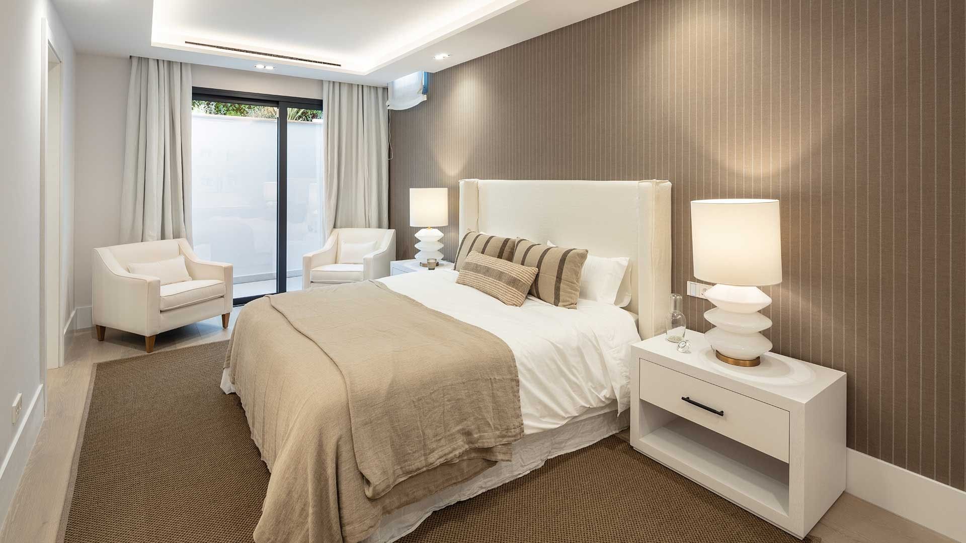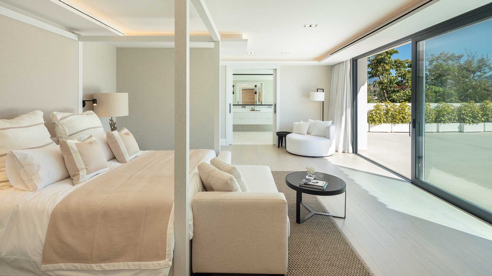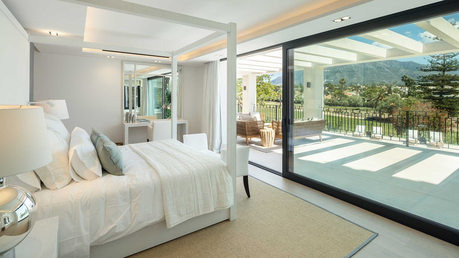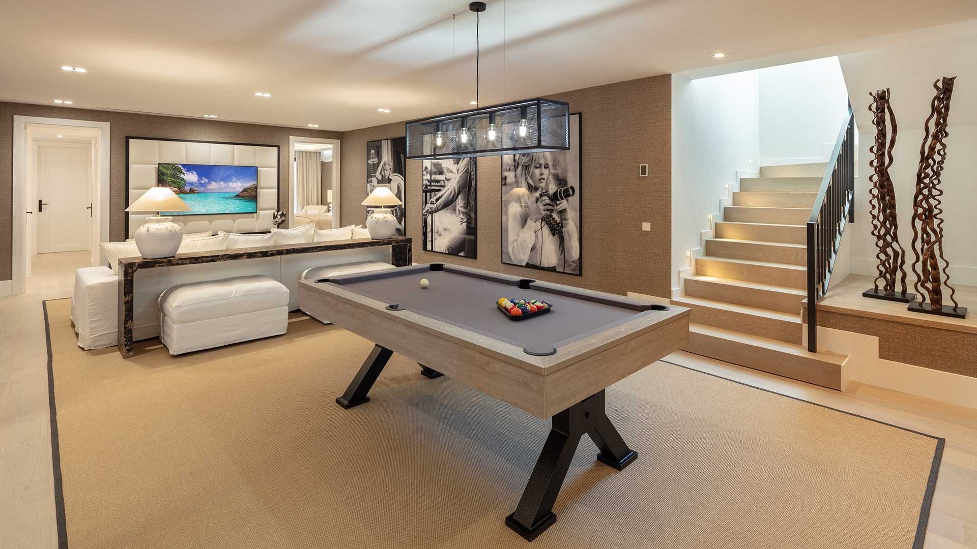 A gorgeous open-plan interior contains plenty of luxurious touches to tempt you inside and is a delightful space to relax, hidden away from the southern Spanish sun. However, the lower-ground level is a veritable playground, with its indoor pool, well-equipped gym, snooker table and bar, wine cellar, hammam and sauna. Elsewhere, luxurious bedrooms offer soothing spaces to call your own, some with the added benefit of en-suite bathrooms and access to private balconies with an elevated view over the golf course and nearby mountains.