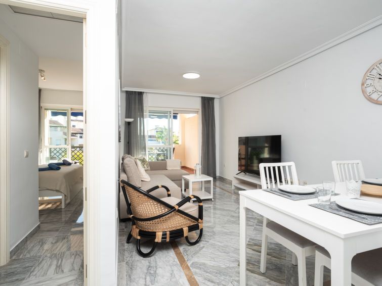 This is a very bright and pleasant apartment. Easily accessible from the A7 motorway and just a few minutes' drive from Puerto Banús. The quiet neighborhood has a large communal area, a parking space in front of the elevator, and a renovated basement. The terrace is wonderful, and the entire apartment is well-equipped. Perfect for a couple or for a business trip.