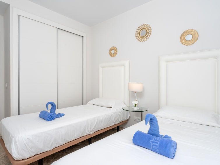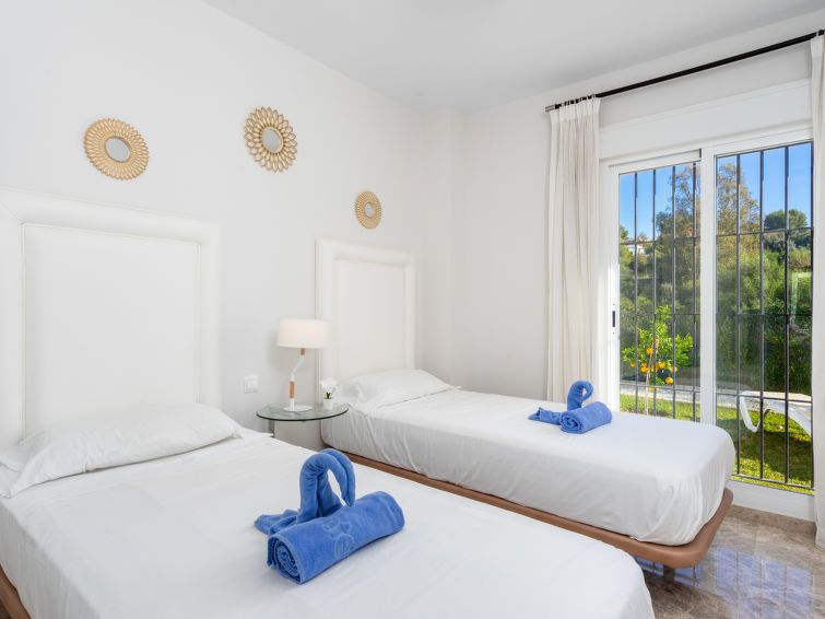 we arrived at the apartment at 9 p.m. in the evening. There was a short handover of the keys by an employee of the key holder. At that time, she had little desire to show us the apartment and was quickly gone. We were not told that the apartment has heating or air conditioning. We urgently needed it because the apartment was very damp, cold and clammy inside. The water ran from the windows inside. The beds were wet and damp, the blankets without a cover (was not available) as well. The next morning, when it was bright, we noticed that the apartment was full of spiders and insects, in the kitchen in the cutlery racks there were long black hairs by the knives, there were also moldy remains of food. Through the terrace doors, which were closed with heavy iron bars, we saw that both terraces were knee-high overgrown with weeds, there was NOT a lawn, as can be seen in the photos on the Internet. The seating furniture and the terrace itself was dirty and unusable due to the high weeds. We felt very uncomfortable and moved out of this hole 2 days later. In the photos hui inside ugh ... We were able to sleep a maximum of 2 hours.