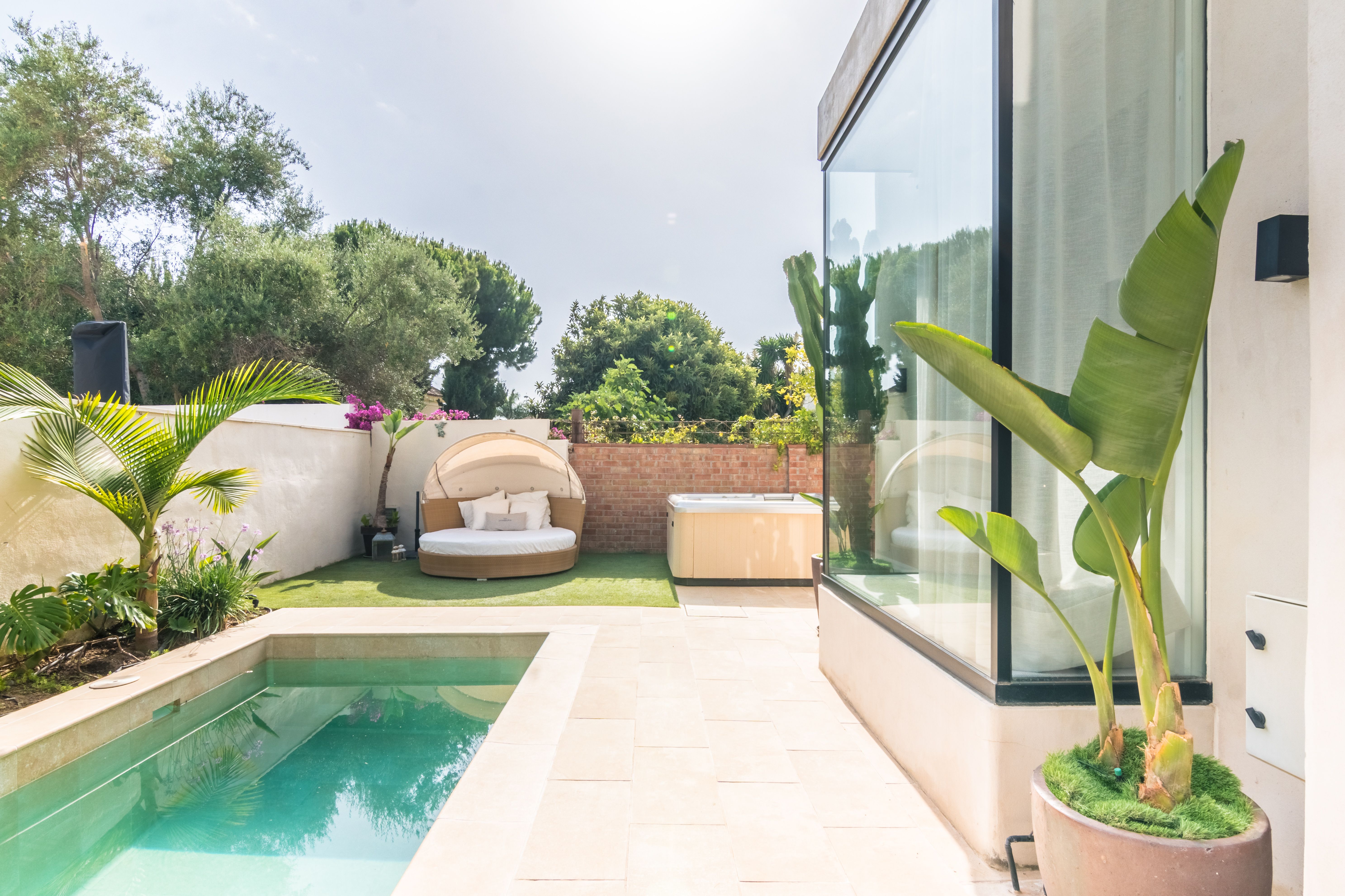 This elegant and chic villa has a gem of a location – it’s situated just two houses back from the sea, 100 metres from Casablanca Beach at the heart of Marbella’s Golden Mile. There are plenty of renowned eateries on your doorstep, while Marbella centre is just a fifteen-minute walk away.