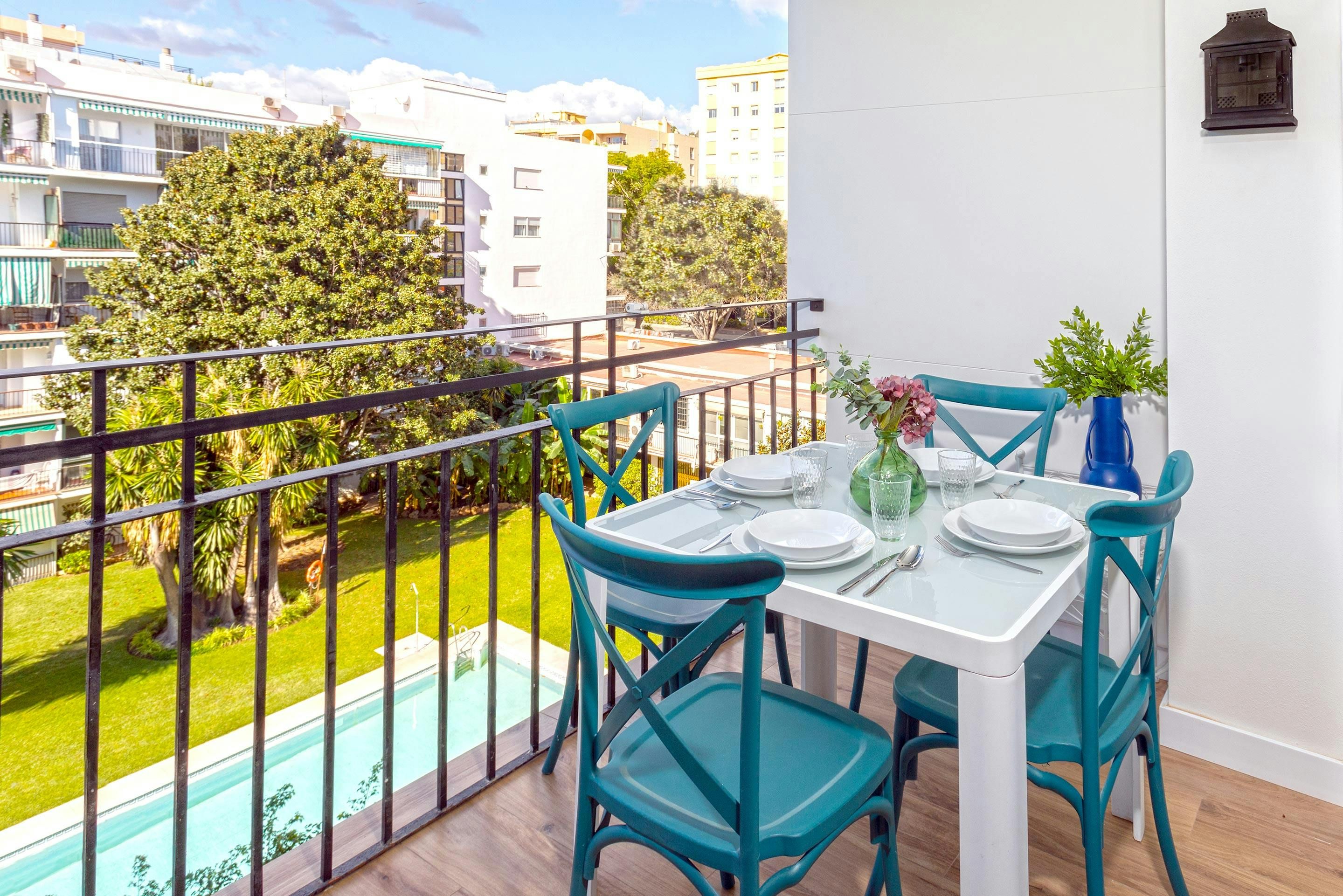 Searching for a sunny base in the heart of Marbella? We think this one ticks every box. It’s just steps from the seafront promenade and sandy beaches – with the Old Town and it’s many shops, restaurants and tapas bars an easy stroll away. Inside, the space has an open-plan kitchen-living area with everything you’ll need for a comfy stay. Our favourite spot, though, is the bright balcony – ideal for long lunches or evening drinks as the sun dips. Did we mention? There’s also access to a communal swimming pool and lawned sunbathing area, making it easy to switch between city exploring and laid-back poolside afternoons.
