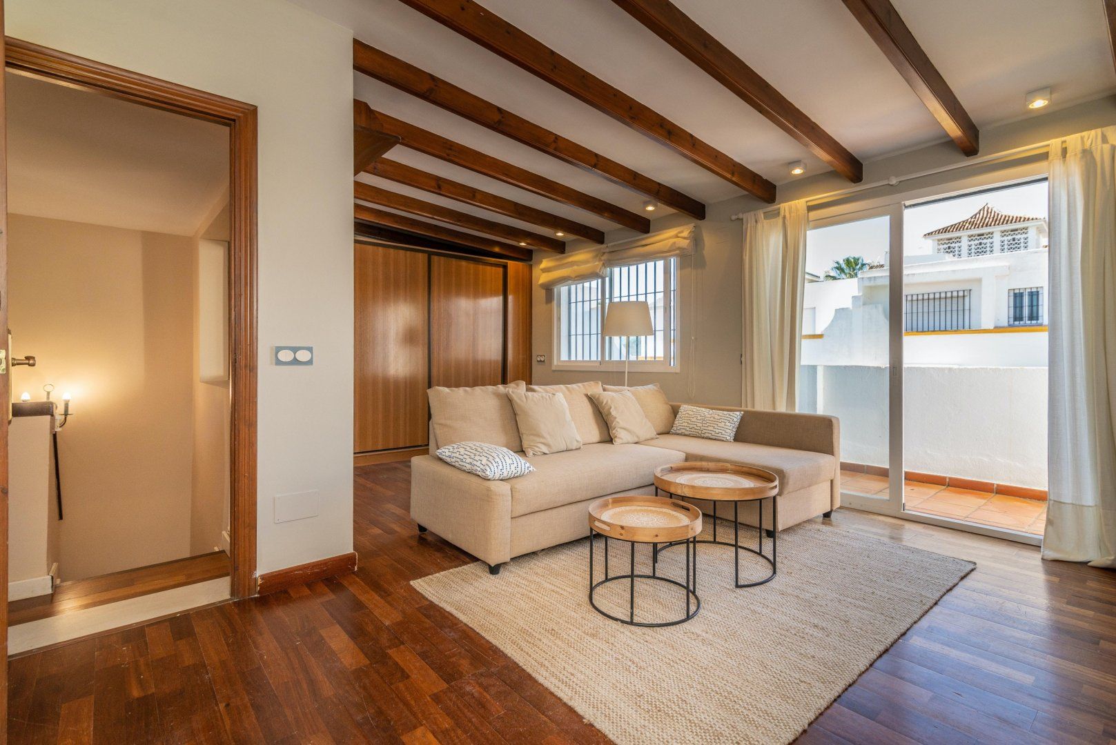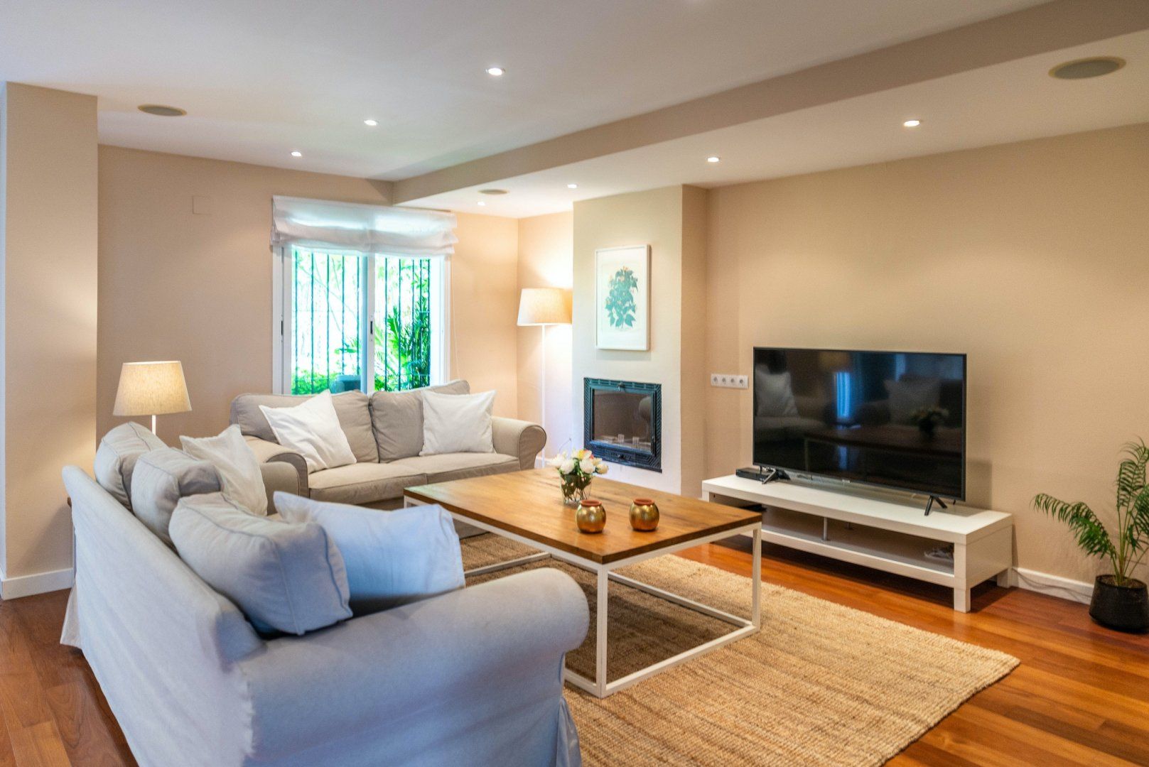 Situated within a private community of townhouses along Marbella's famed Golden Mile, this home can boast of one of the most coveted locations in Spain, if not Europe – thankfully, the living quarters more than live up to this illustrious spot on the map.