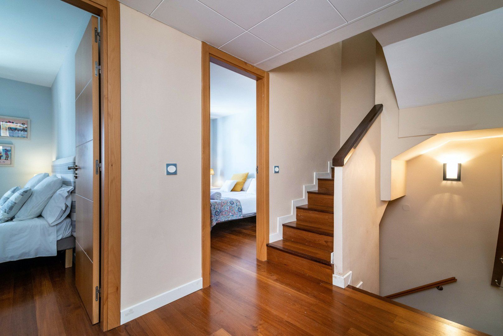 This being a part of the world that enjoys a fair share of sunshine, you're probably wondering what there is on offer in terms of outdoor amenities. Down at ground level, there's a plant-covered courtyard with lots of seating and an alfresco table, while there's also a balcony on the top floor that looks out over the glistening Med. And as if that wasn't enough, you also get access to a communal swimming pool, plus courts for tennis and padel, all shared with other residents on the estate.