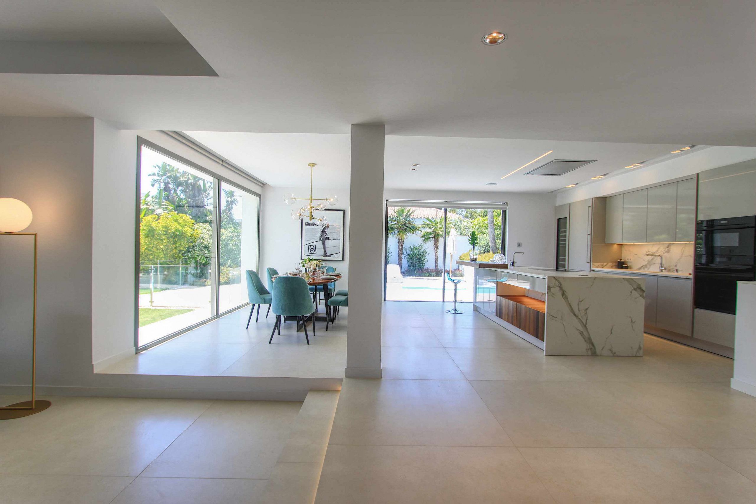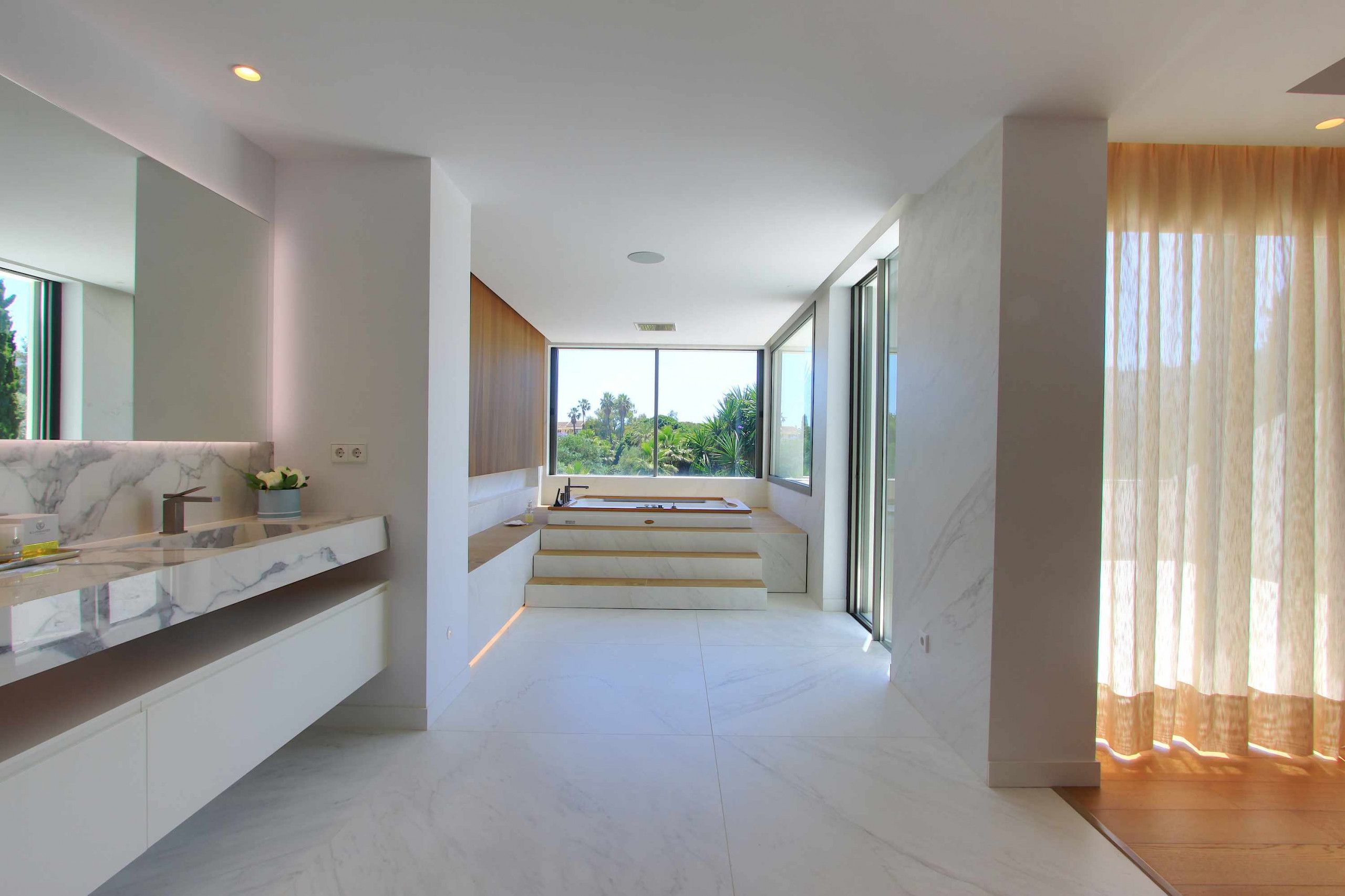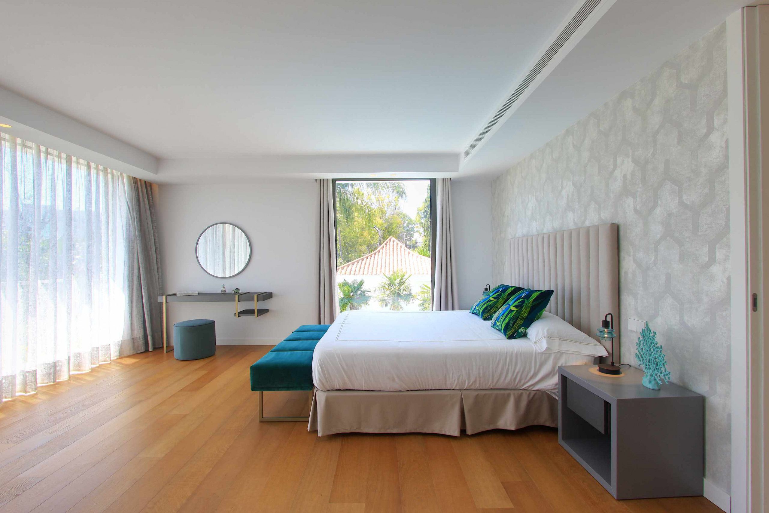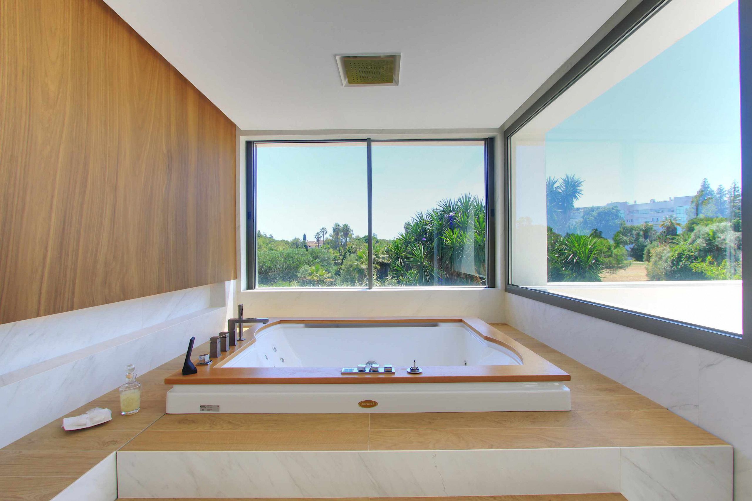 This home is the lap of luxury indeed, in the yacht-filled town of Puerto Banus where a sweep of sandy beach awaits, just a two-minute walk away. It’s the details that set this villa apart from the rest – the wine cooler for those bottles of bubbly, the jetted Jacuzzi tub surrounded by glass in the main bedroom’s ensuite, and a private sauna to really unwind. The swimming pool is heated, so you can enjoy a swim year-round and there’s a big Weber grill for barbecues by the poolside.
