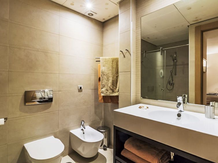 "Samara Resort", 2-room apartment 68 m2 on 2nd floor, south facing position. Object suitable for 2 adults + 1 child. Practical and tasteful furnishings: living/dining room with 1 sofabed, digital TV, electric heating and air conditioning. Exit to the terrace. 1 room with 1 french bed with shower/bidet/WC.