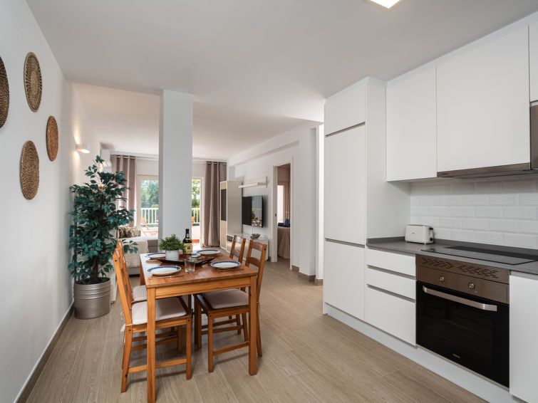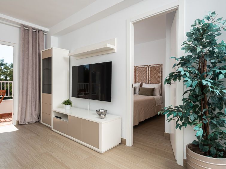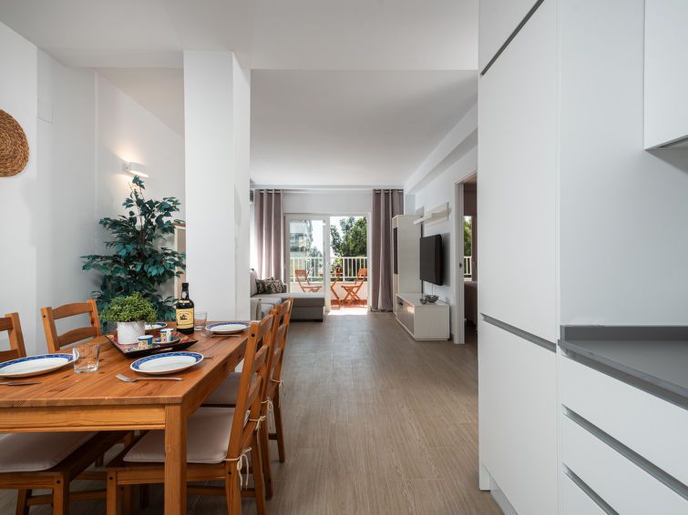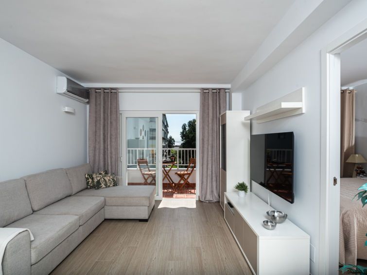 "Sol de Marbella", 3-room apartment 55 m2 on 3rd floor. Comfortable and cosy furnishings: living/dining room with digital TV. Exit to the terrace. 1 room with 1 french bed (160 cm, length 200 cm). 1 room with 1 french bed (140 cm, length 200 cm). Open kitchen (oven, dishwasher, 4 ceramic glass hob hotplates, toaster, kettle, microwave, freezer, electric coffee machine).