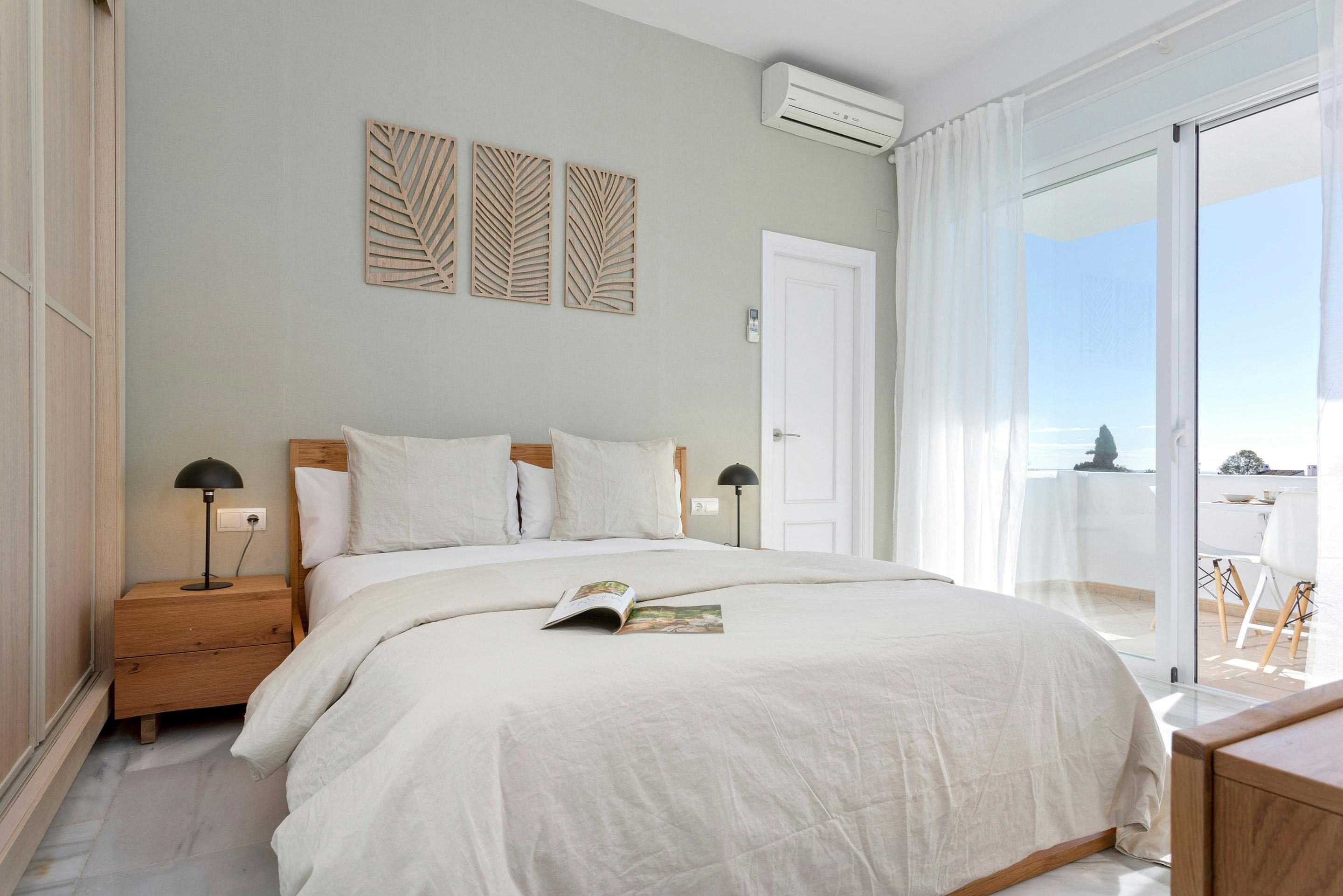 Experience the best of Nueva Andalucia from this beautiful apartment. Staying here, you’ll be a few minutes’ drive from the best beaches of the Costa del Sol, and the luxury boutiques, restaurants, and marina of glamorous Puerto Banus. You’ll have everything you might need close to hand, including a communal swimming pool and a private terrace where you can admire views of the mountains, sea, and pool. This is an elegant apartment, and even with one guest on a sofa bed in the living space, there’s plenty of room.