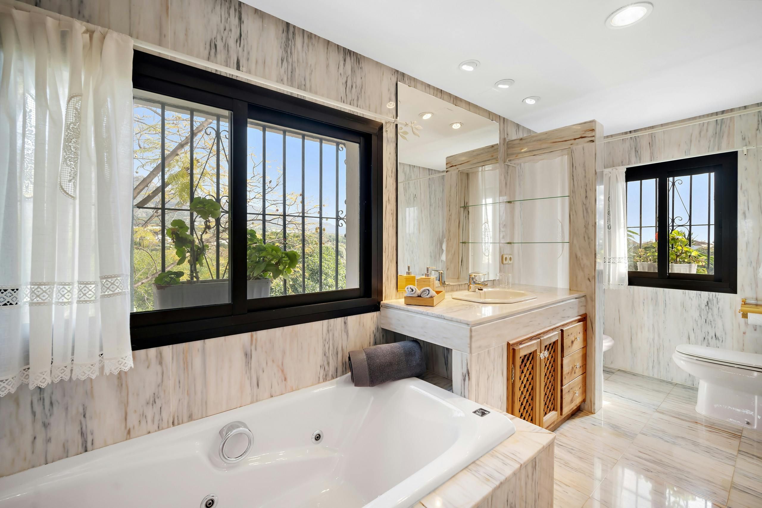 Experience luxury living in the hills of Marbella's Golden Mile with this villa as your base in Andalusia. Boasting stunning views of the Mediterranean sea, plus its own private gardens with an outdoor heated pool, lounge terrace and an alfresco dining area, what more could you need? Yet with a billiards room, home office room, open kitchen, and living area – the villa offers so much more than its outdoor setting. One of the bedrooms stands as an independent apartment and has its own kitchenette, bathroom and living area, containing a double sofa bed (where at full capacity, two guests will sleep). The crown jewel? The main bedroom suite leads to a private terrace with panoramic views down to the sea.