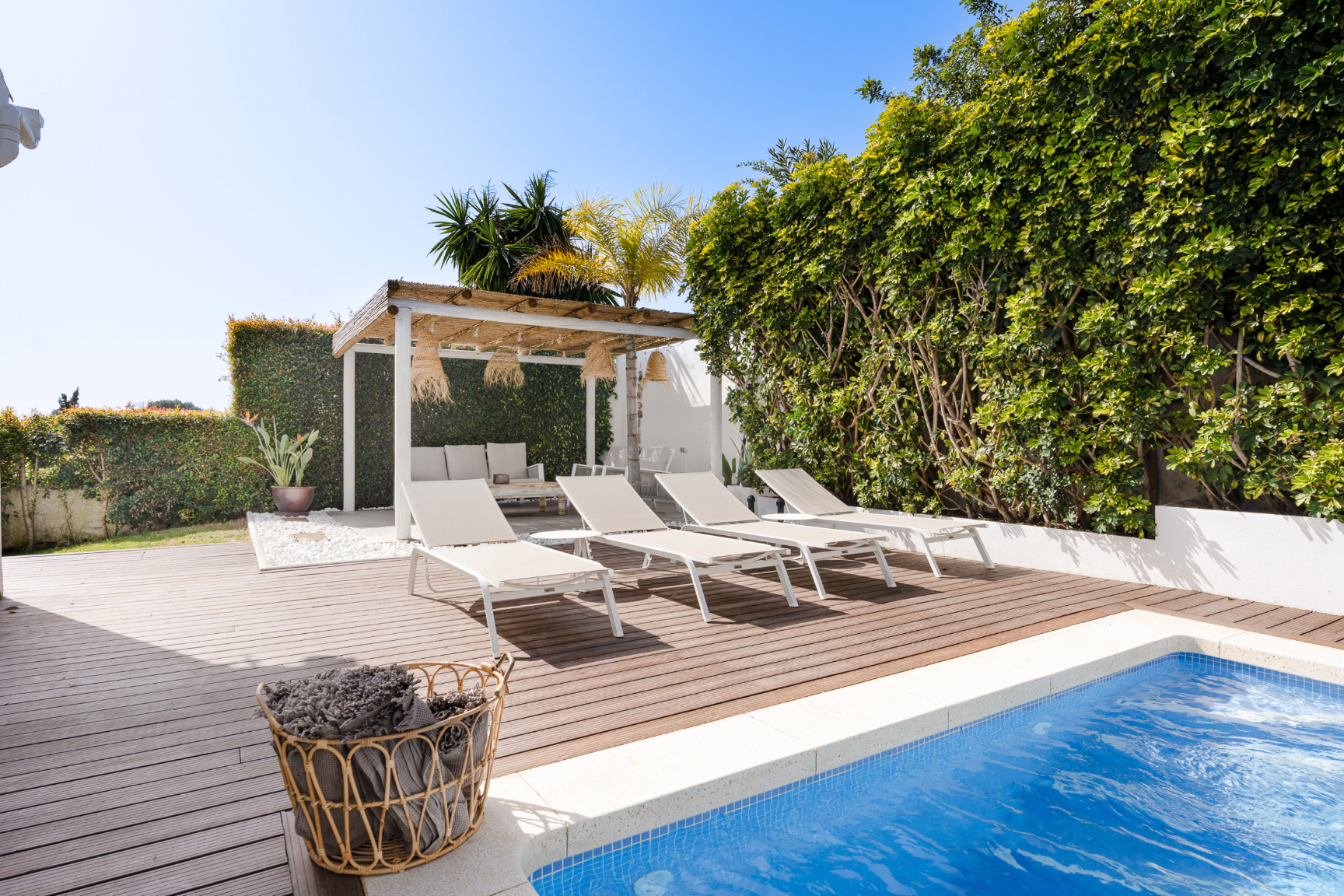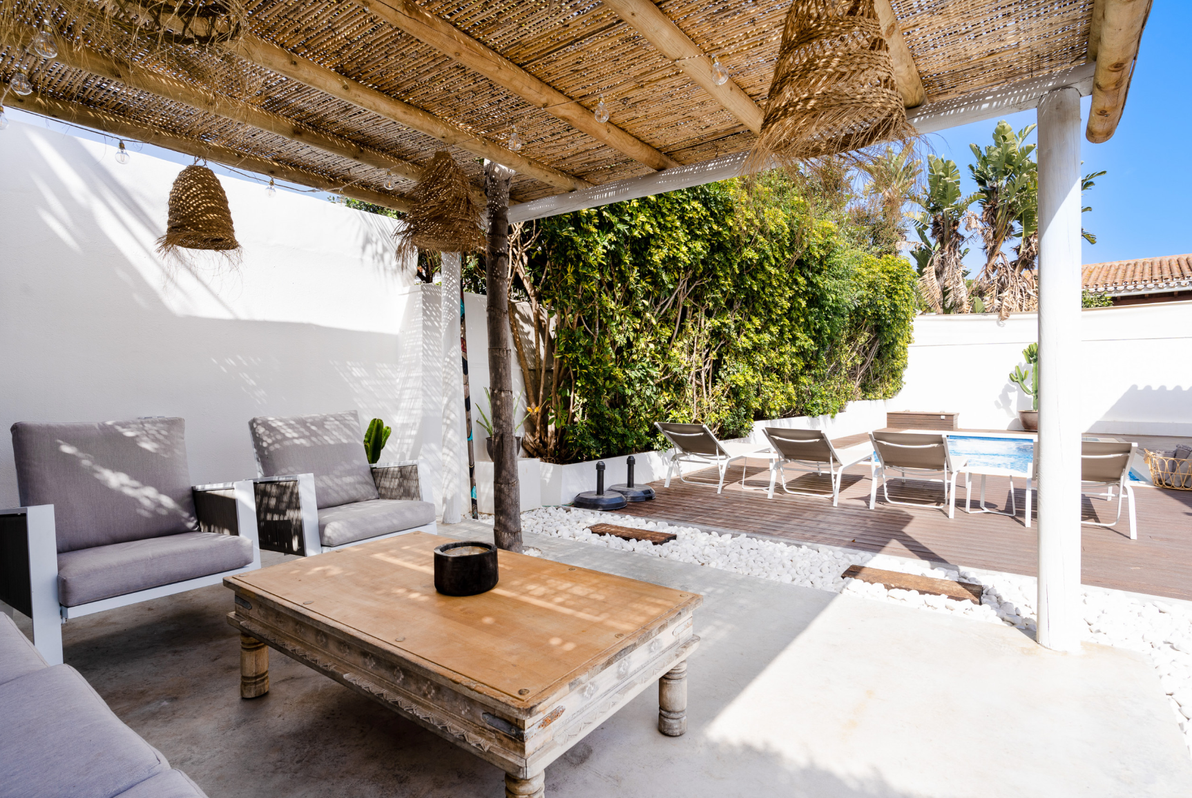 Slide open the doors from the living area and you’ll find an idyllic garden and pool – this is the perfect spot to begin your day with a refreshing morning swim. Follow the external stairs and you’ll discover the hidden magic of this home from the rooftop terrace. With expansive views across the horizon, this is a dreamy place to watch the sky transform with drinks and al fresco dining.