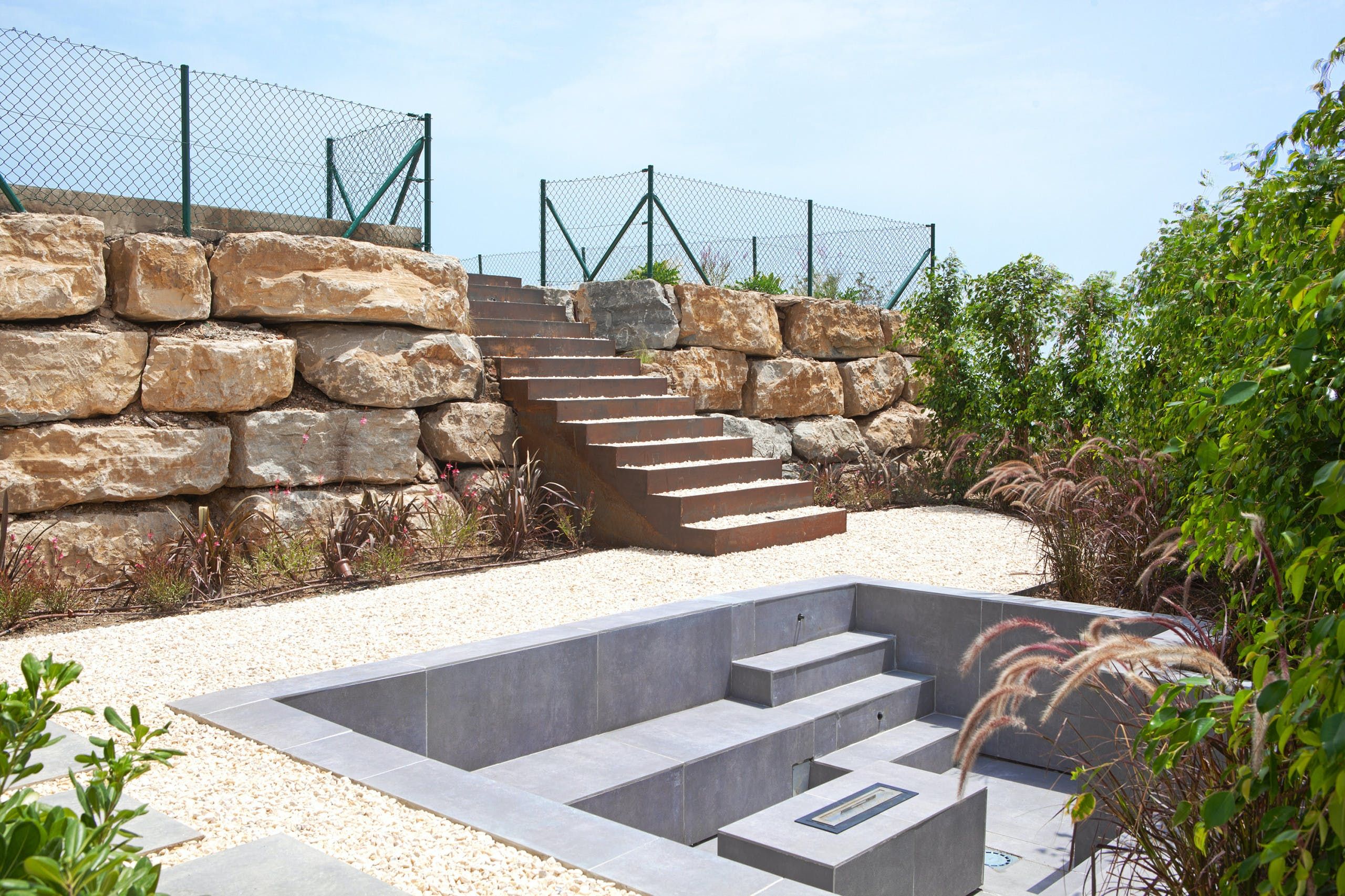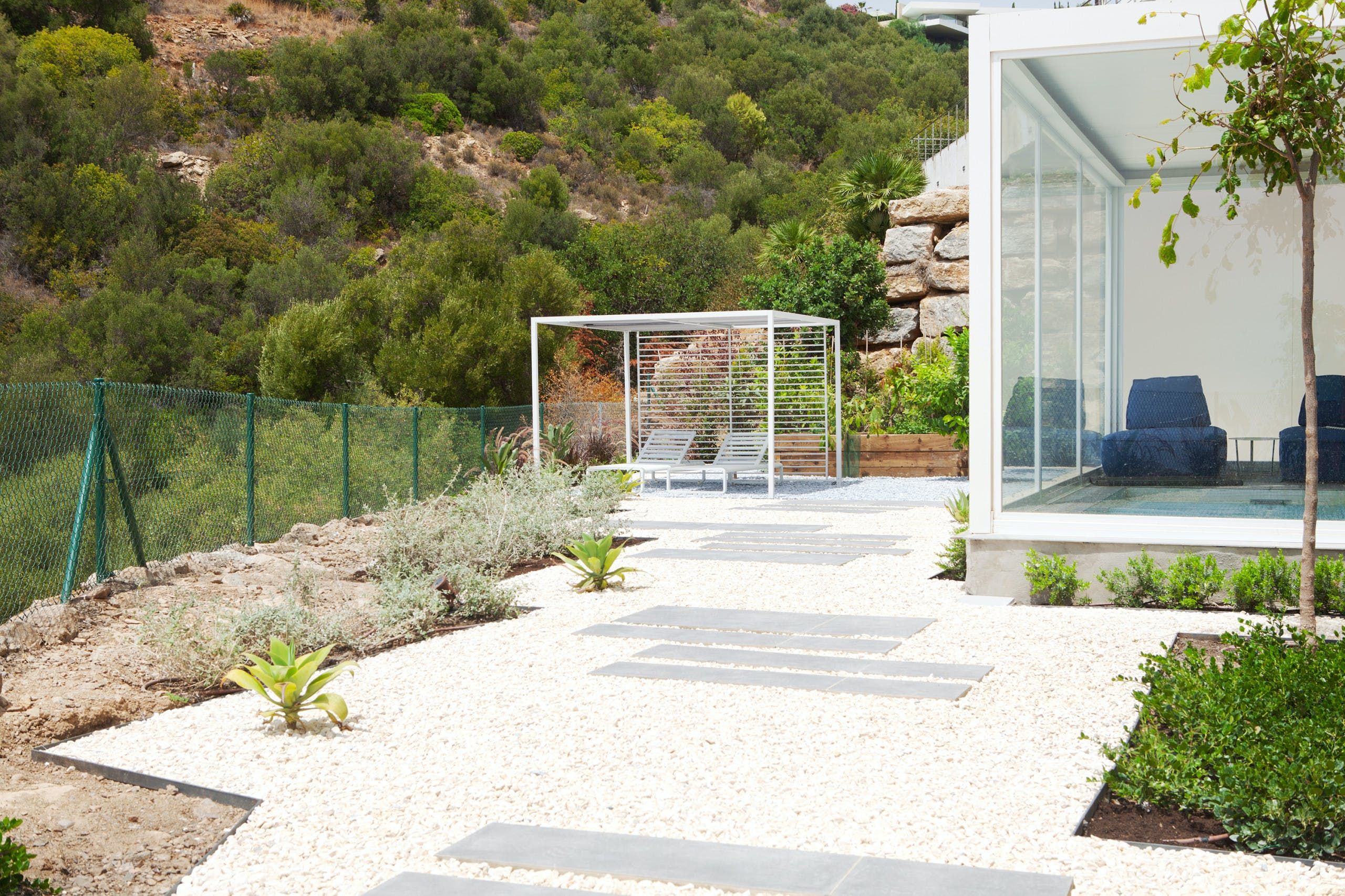 Fitness fiends will love the gym with its pool and hill view from walls of glass and a spa area for a post-workout wind-down. Then there’s the living room, continuing the theme of glass and views and pairing it with a hint of 1960s entertainer’s charm. A Moroccan-style feature light is a nod to your sultry southern surroundings. Bedrooms boast far-reaching views and offer a lavish sleeping spot.