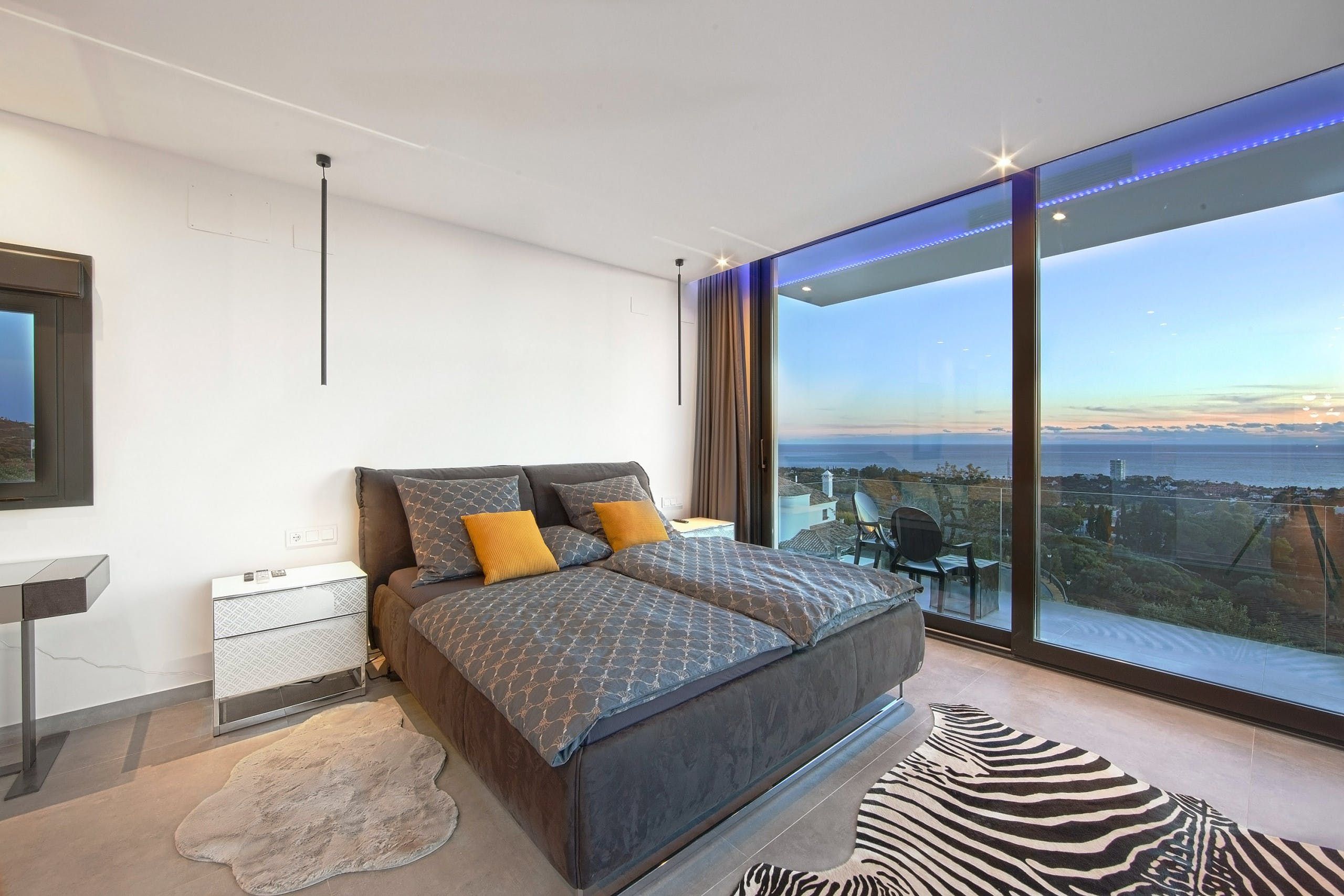 A trip to glitzy Marbella should be met with an equally glam villa, and this home delivers just that. Up in the hills around Marbella, it’s got sea views for miles from the stacked terraces and balconies. Let’s talk about that infinity pool, hanging off the edge of the terrace and overlooking the ocean in the distance. Then there’s the rooftop terrace, with a panoramic view best enjoyed while the barbecue is on the go. You can even see Morocco on a clear day.