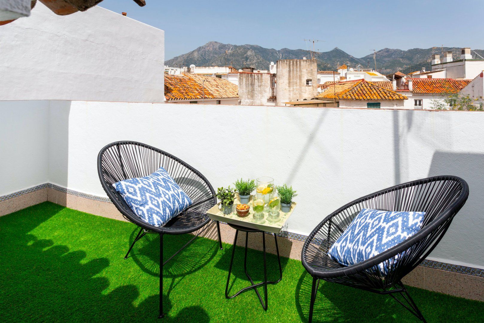 Vibrant and modern with traditional touches – we especially love the beautiful tiles around the decorative fireplace – this home is ideal for anyone looking to explore all that Marbella has to offer. Nip downstairs for breakfast at the local cafe before heading out to the Plaza de los Naranjos, passing the remarkable Church of Nuestra Señora de la Encarnación along the way. There is plenty to see on foot here and we can almost guarantee that you’ll find another photo opportunity hidden around every new corner. The beach is minutes away, so long lazy days can be spent building sandcastles, sunbathing, and eating ice cream before it melts.