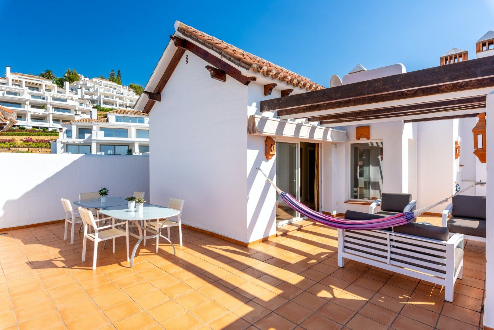 To call this split-level penthouse bright and modern is an understatement. The design is sleek, sure – and yes, natural light is all but guaranteed to spill through the floor-to-ceiling windows. But what turns an otherwise ordinary apartment into a tropical getaway are the two sun-kissed terraces. Between the bubbling Jacuzzi, cosy outdoor sofas and alfresco dining areas, you'll have plenty of spots to sit back with a cocktail and admire the views. The communal pool is a bonus – a pretty big one, to be fair – and the location is close to Marbella and Puerto Banus, so beach days and adventures further afield are both easily achieved.