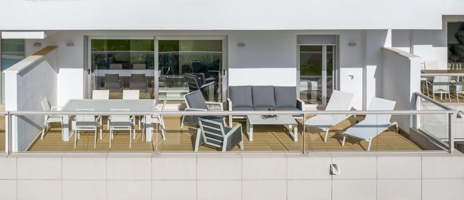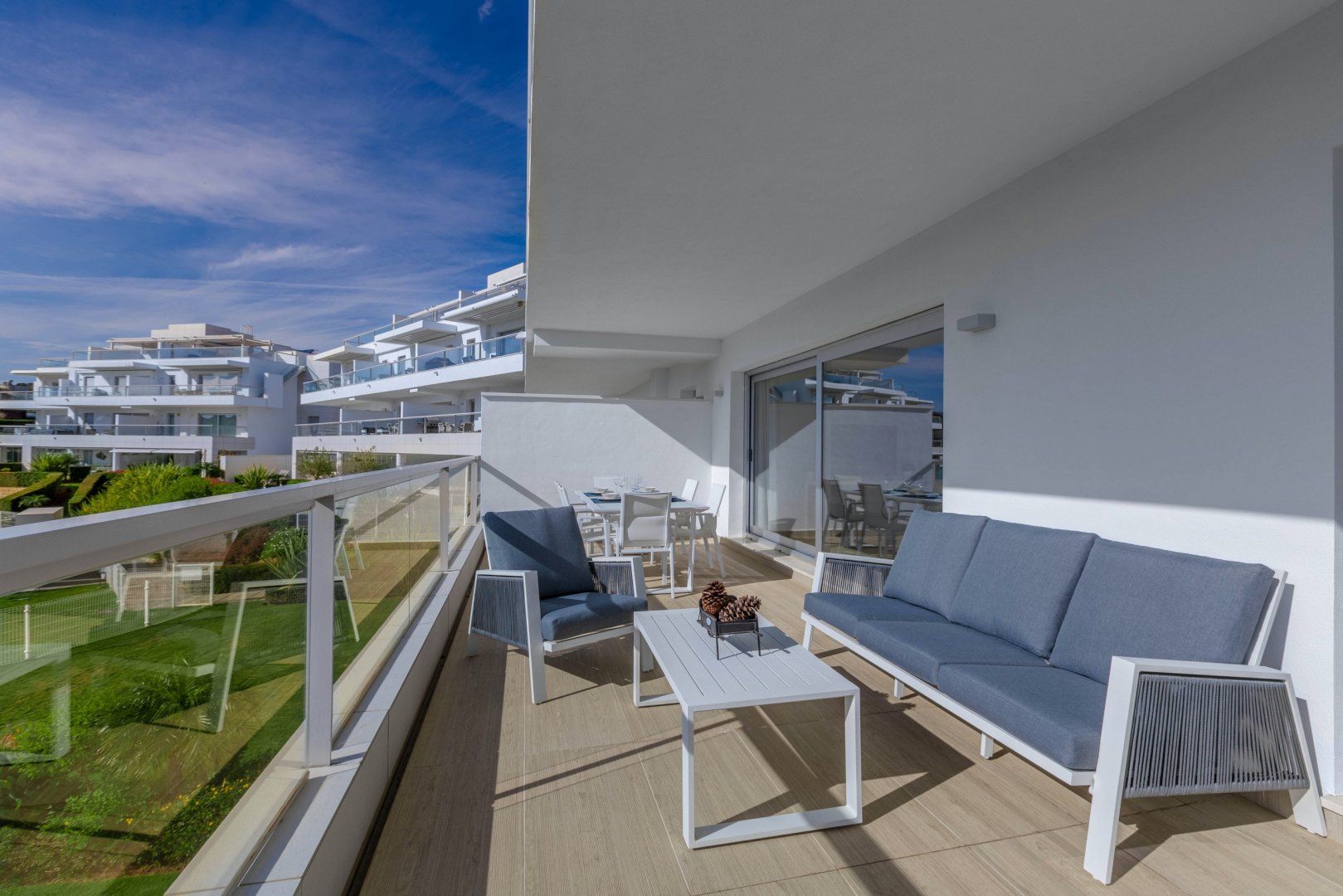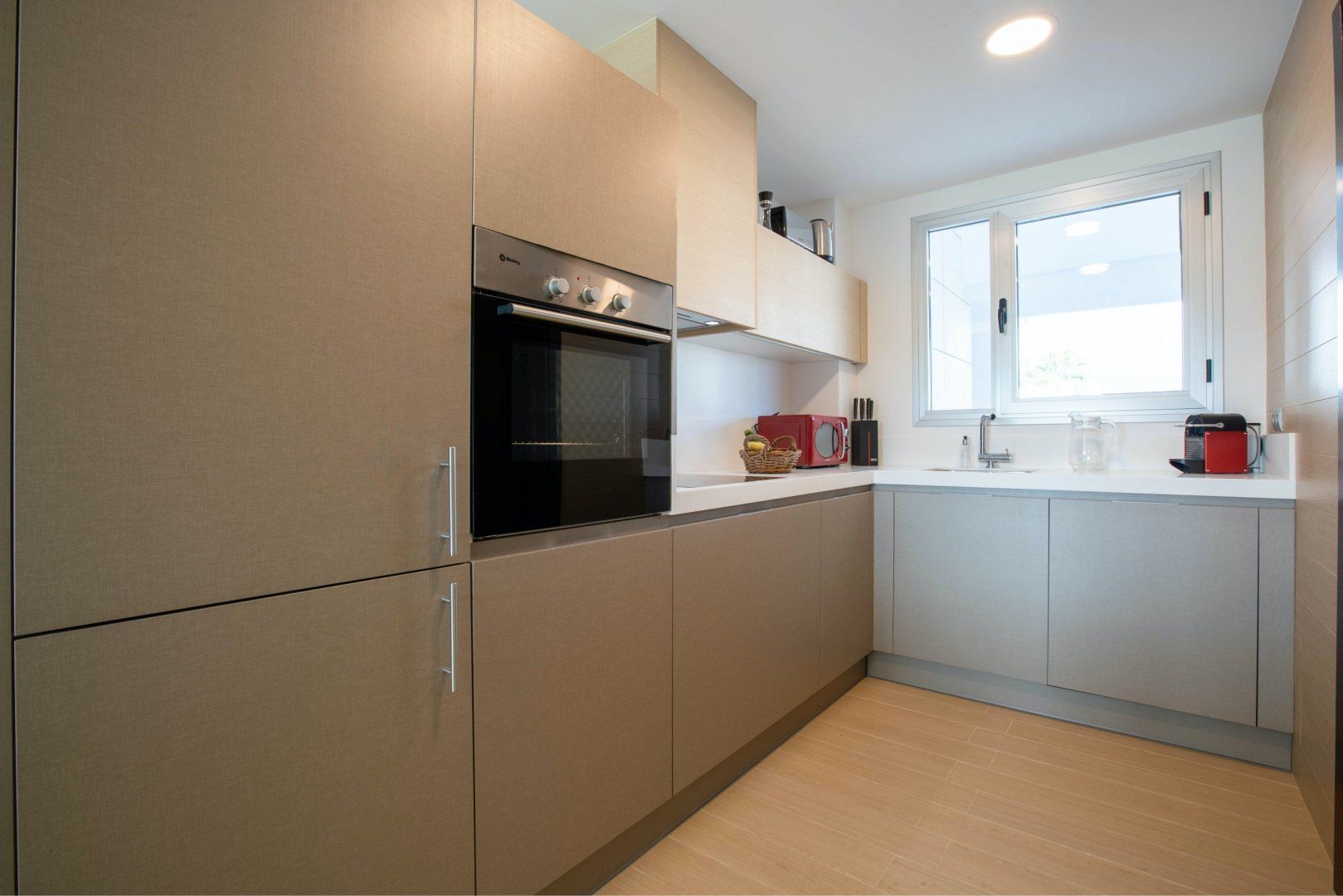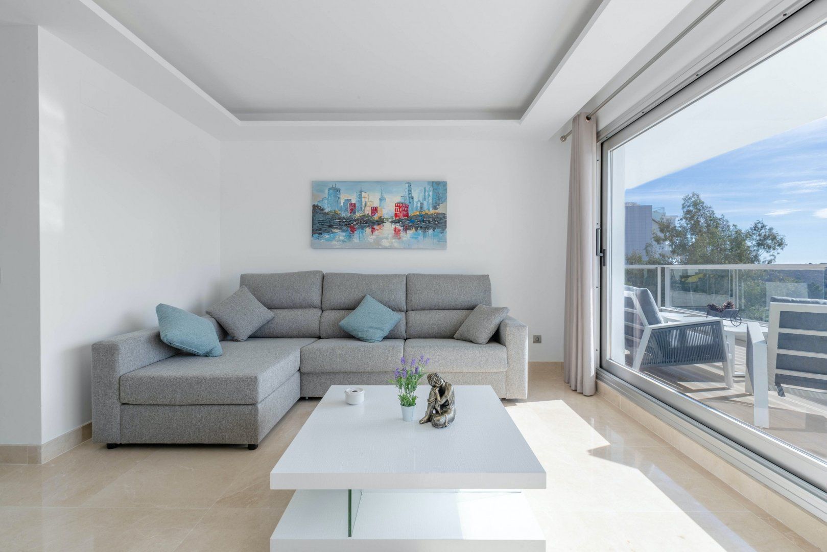 Or simply have a thrilling round of golf – there are three superb championship courses, each presenting its own unique challenges – there’s a golf academy here too and superb sports. With all these wonderful amenities, will you spend much time in the apartment itself? When you do, unwind on the sofa in the living space with its fresh, white, turquoise and grey colour scheme.