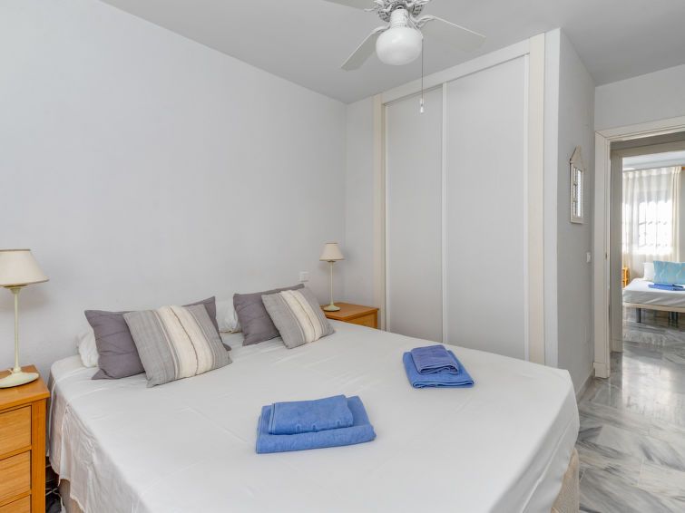 "Angel Blanco", 3-room apartment 52 m2, east facing position. Object suitable for 4 adults. Spacious and bright, comfortable and beautiful furnishings: living/dining room with digital TV. Exit to the terrace. 1 room with 1 french bed (180 cm, length 200 cm), bath/WC. 1 room with 2 beds (90 cm, length 200 cm).
