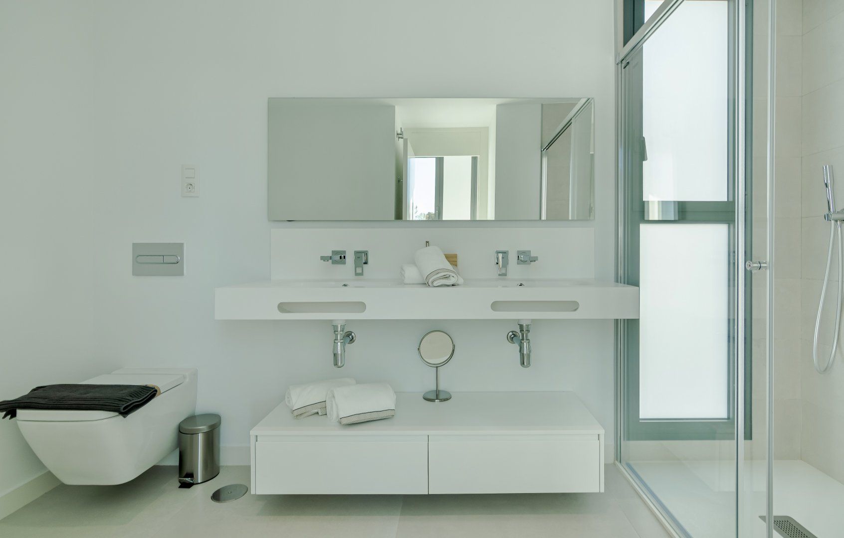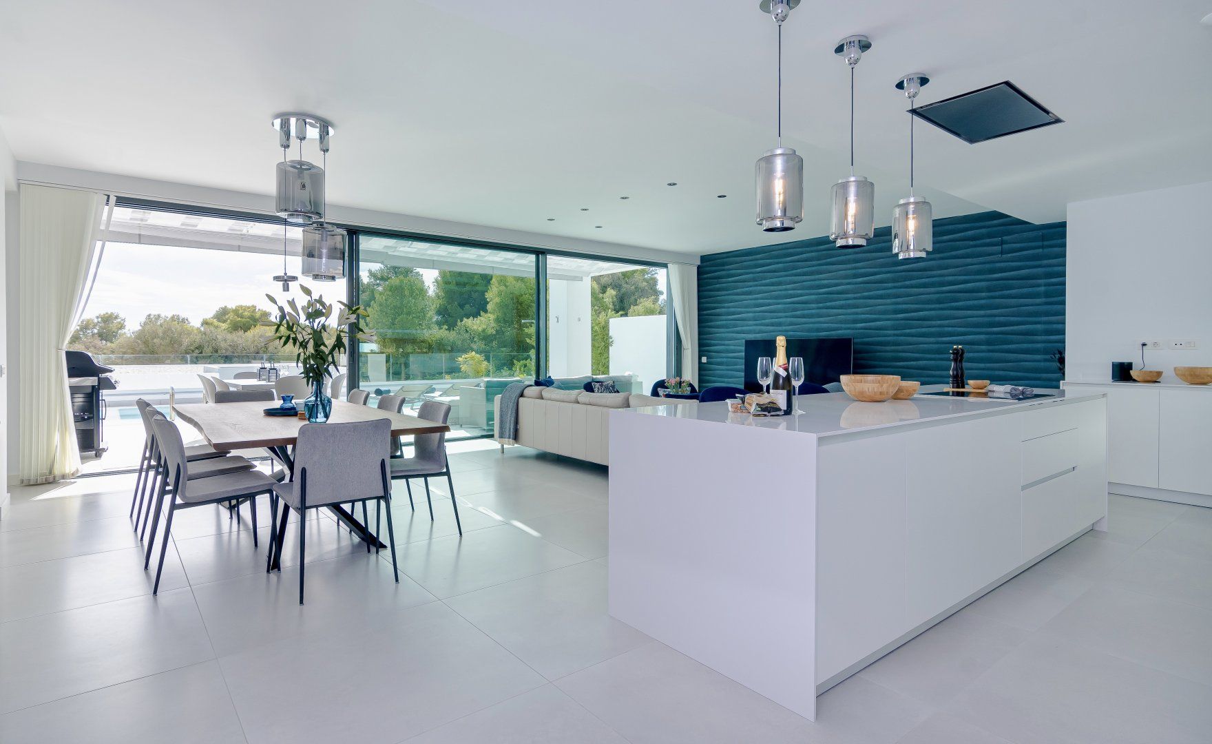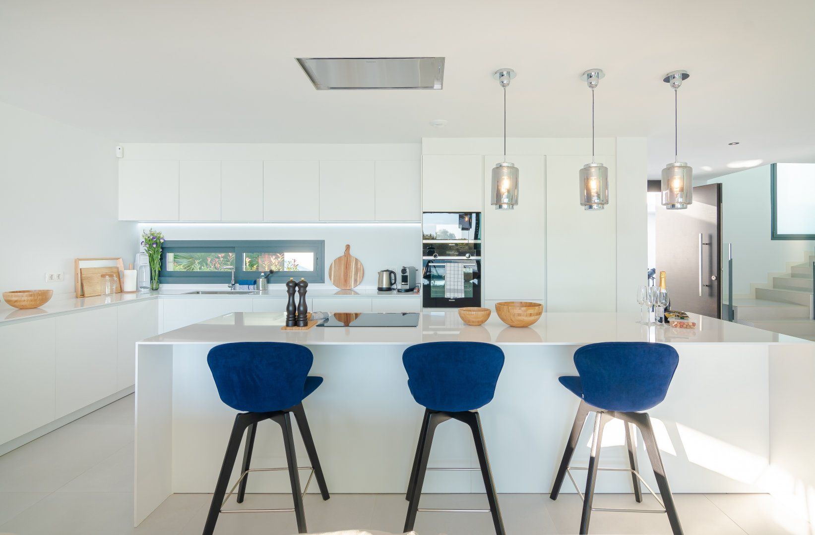 We love the clean lines and blue and white colour scheme seen throughout the villa, which offers a soothing space to relax in style. Underfloor heating carried across the main rooms during the slightly chillier months will keep your toes warm. Meanwhile, premium quality entertainment features, including Sonos speakers, Apple TV, and the decked-out kitchen, will keep you occupied even if the sun isn't shining outside.