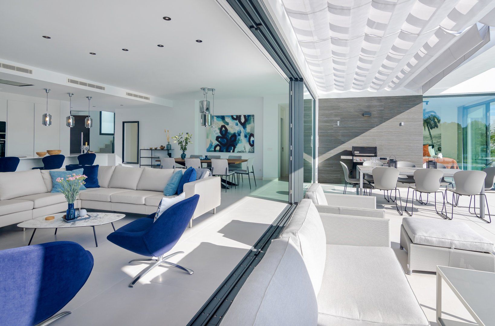 Boasting spectacular south-facing views of the Mediterranean sea, enjoy the serene scapes come night or daytime. Balancing indoor and outdoor living couldn't be easier here as bi-fold doors bring the outside in and extend the living area out onto the patio. So relax by the pool on the day beds or perch with a book in the shade on one of the plush sofas.