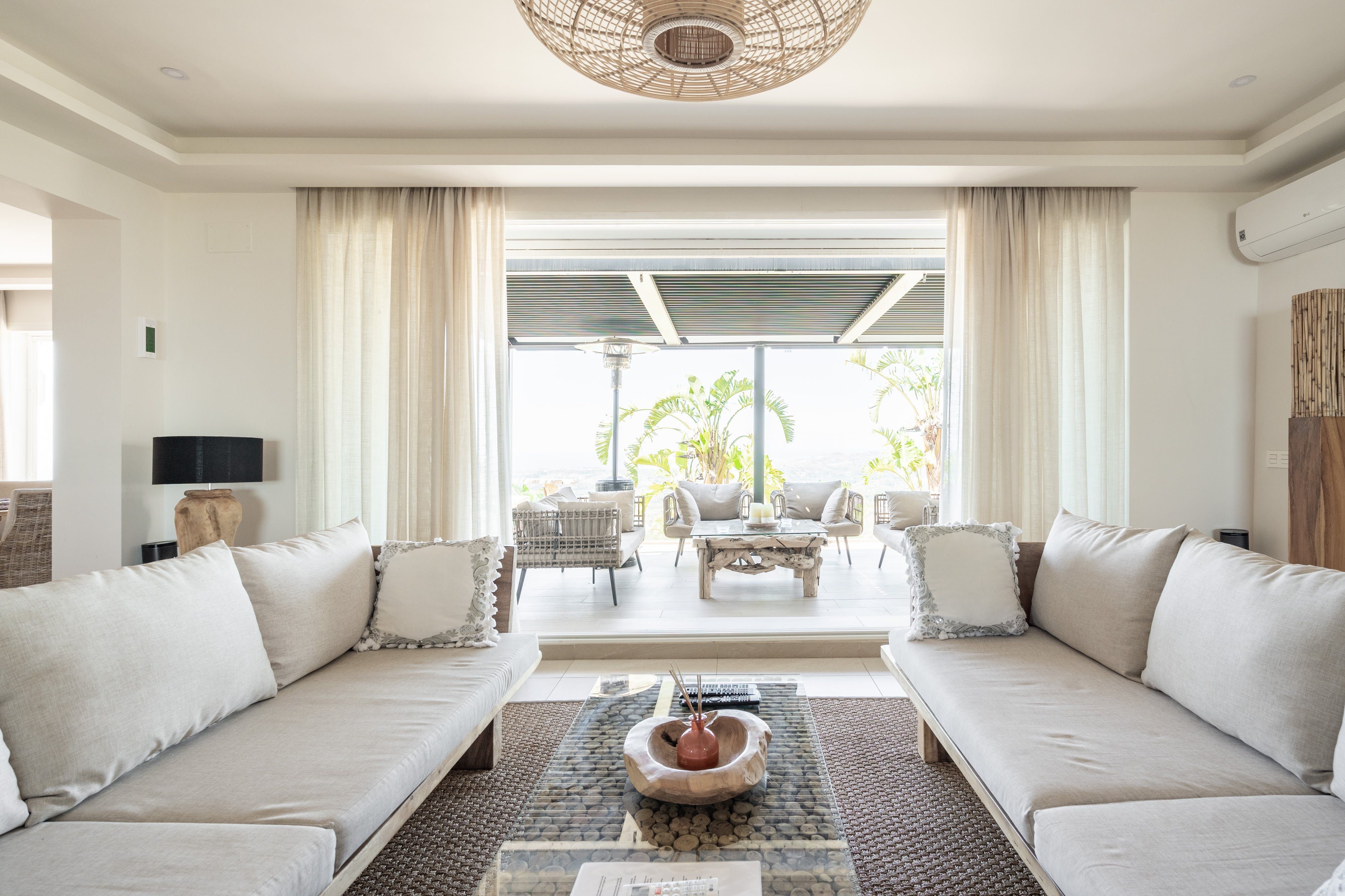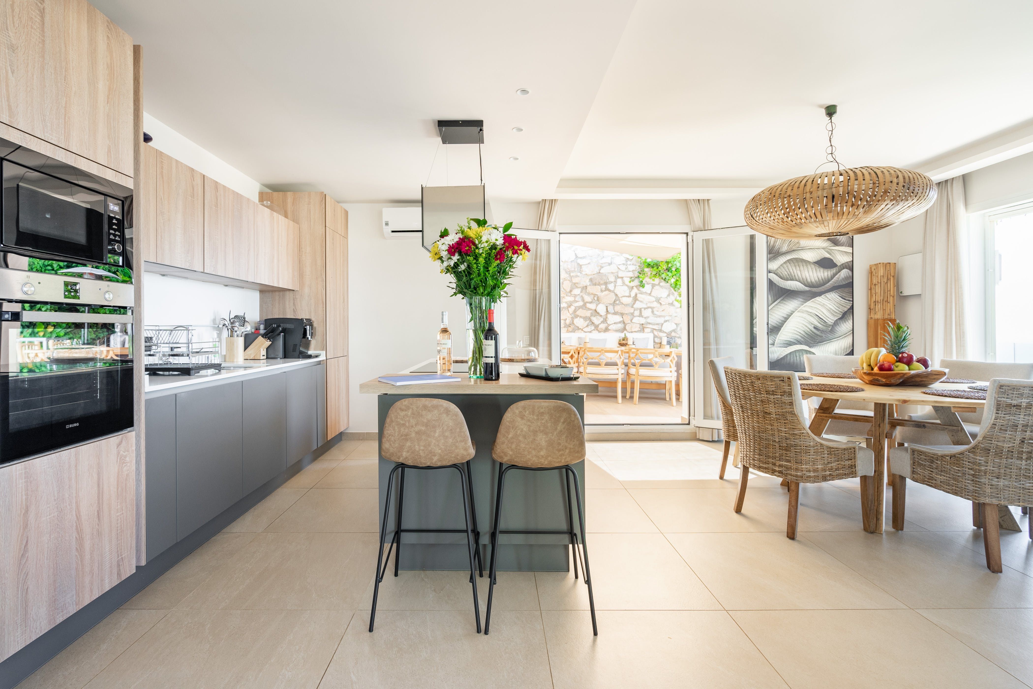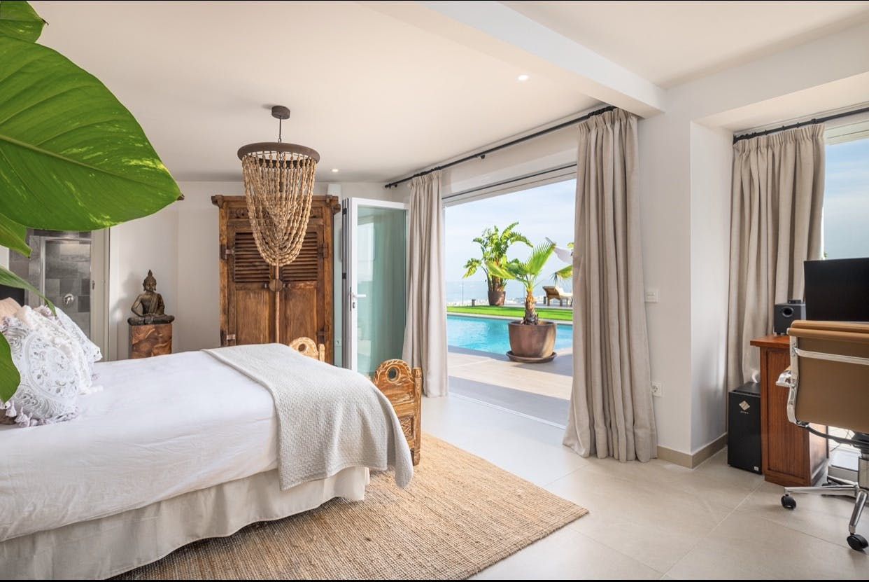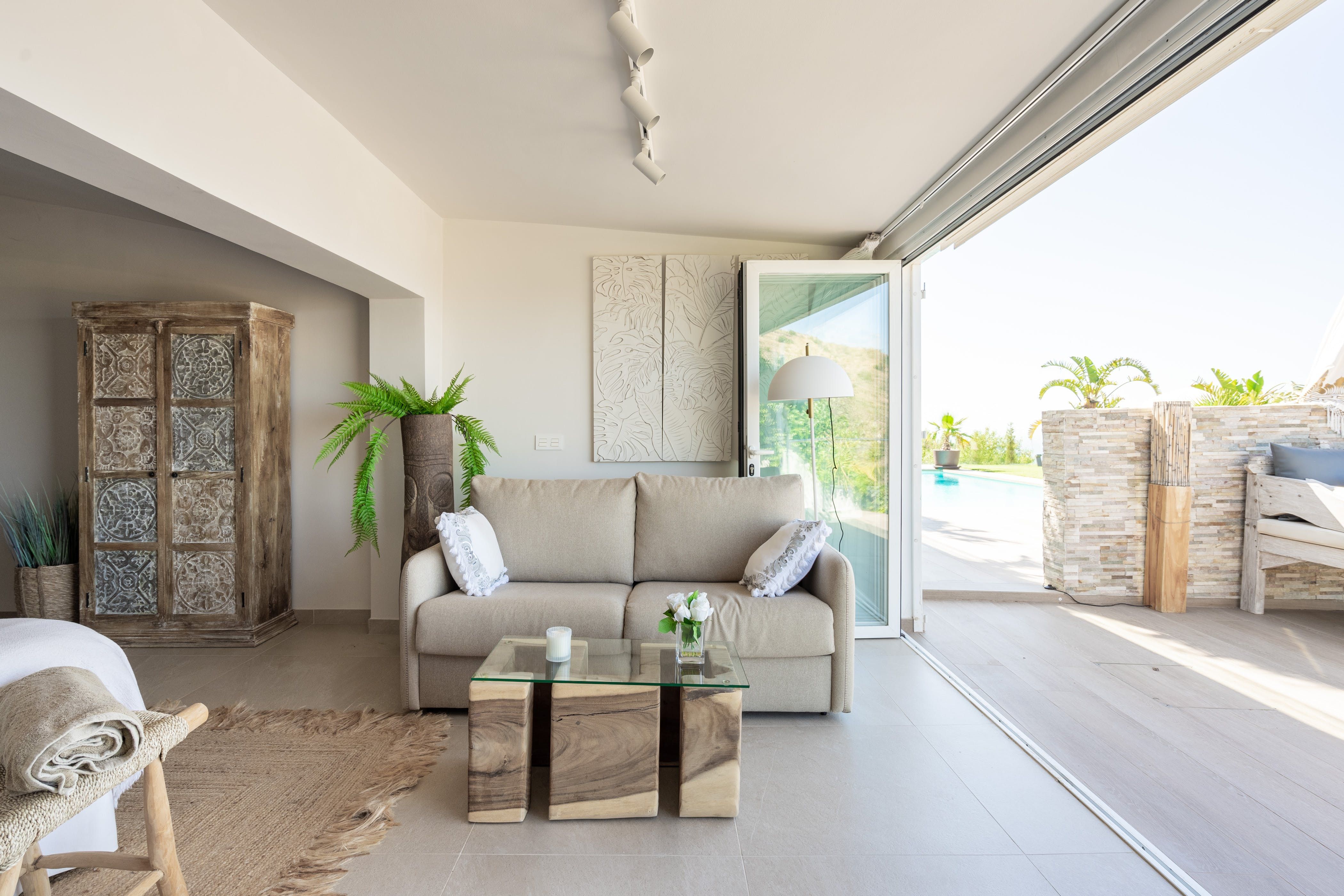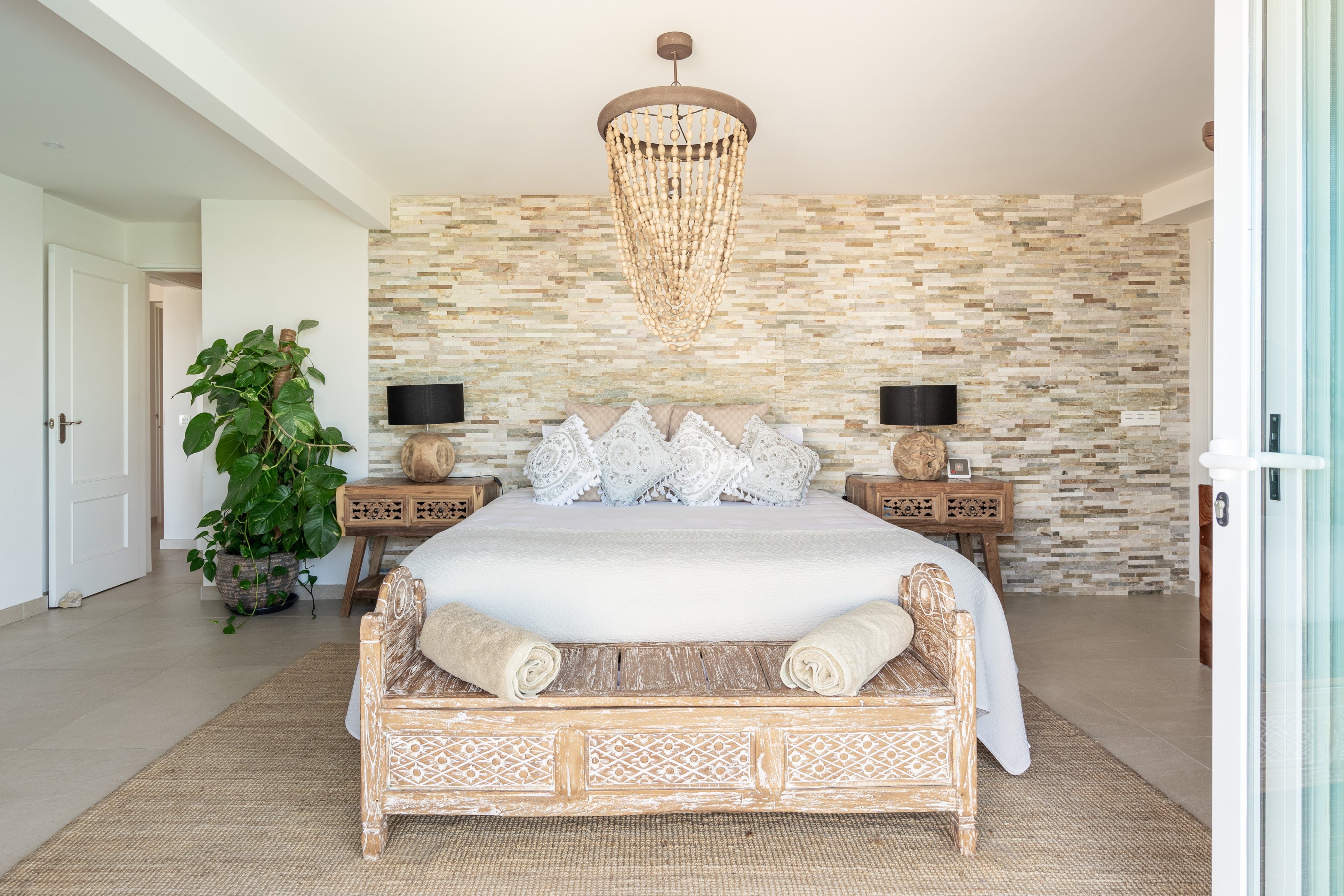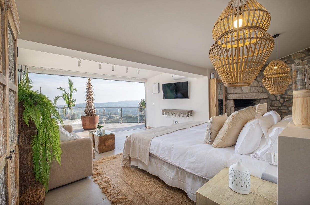 Flaunting a curation of natural textures and touches, the interior here is light, bright and fabulous. Sheer curtains canopy the windows and doors, letting the sunlight cascade its way from room to room, while the sleek floor tiles feel effortlessly cooling underfoot. Begin each morning by whipping up a creamy latte from the coffee machine and retreating back to the snug of your sumptuous slumber setting to admire the sensational views beyond. Suitably fuelled, venture outside to soak up the rays on whichever sunspot takes your fancy.