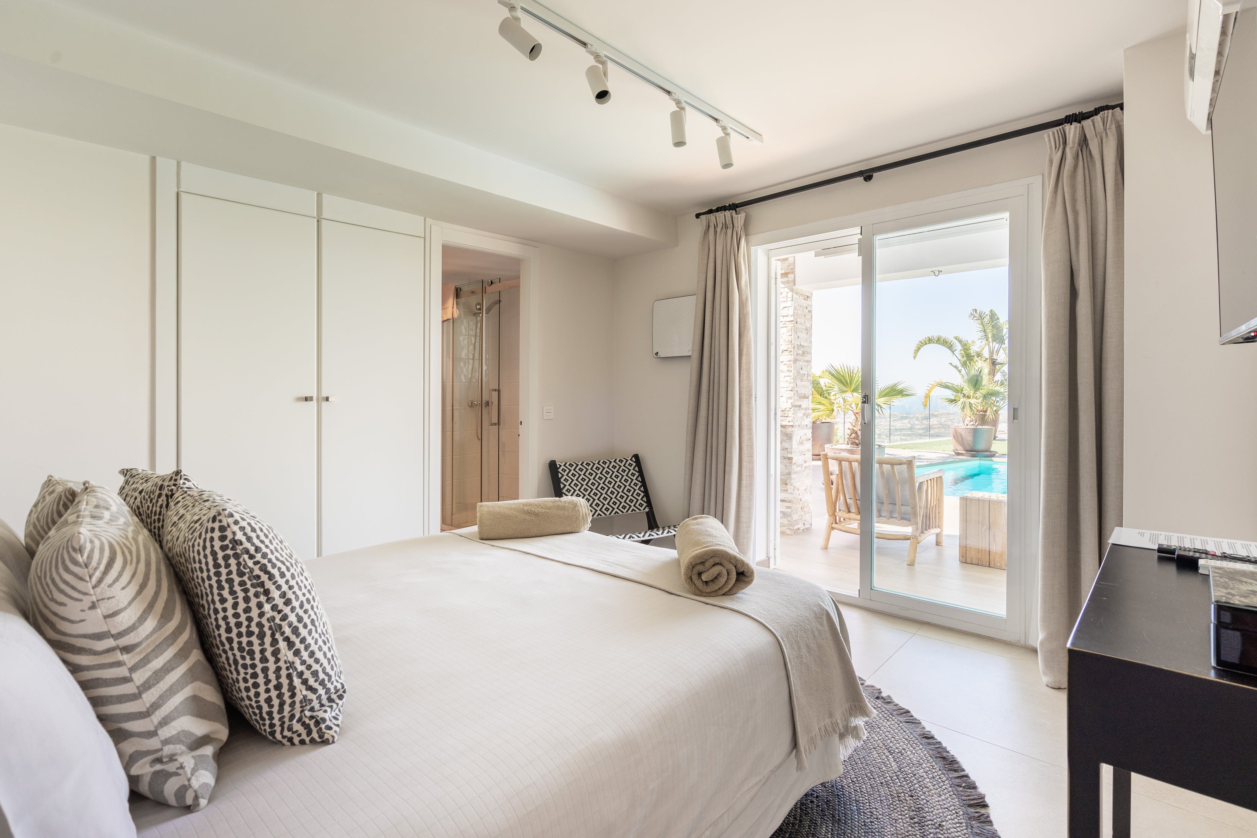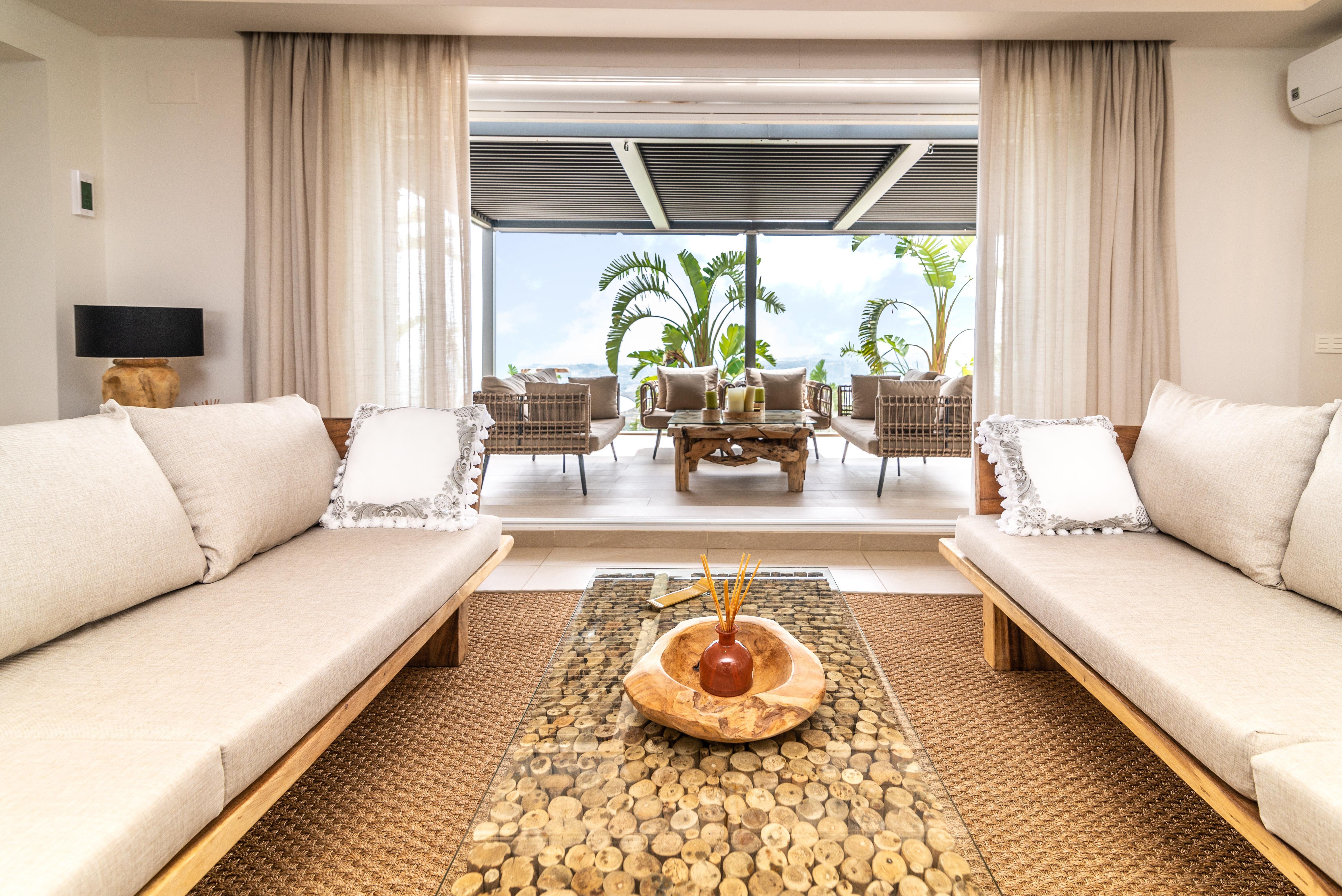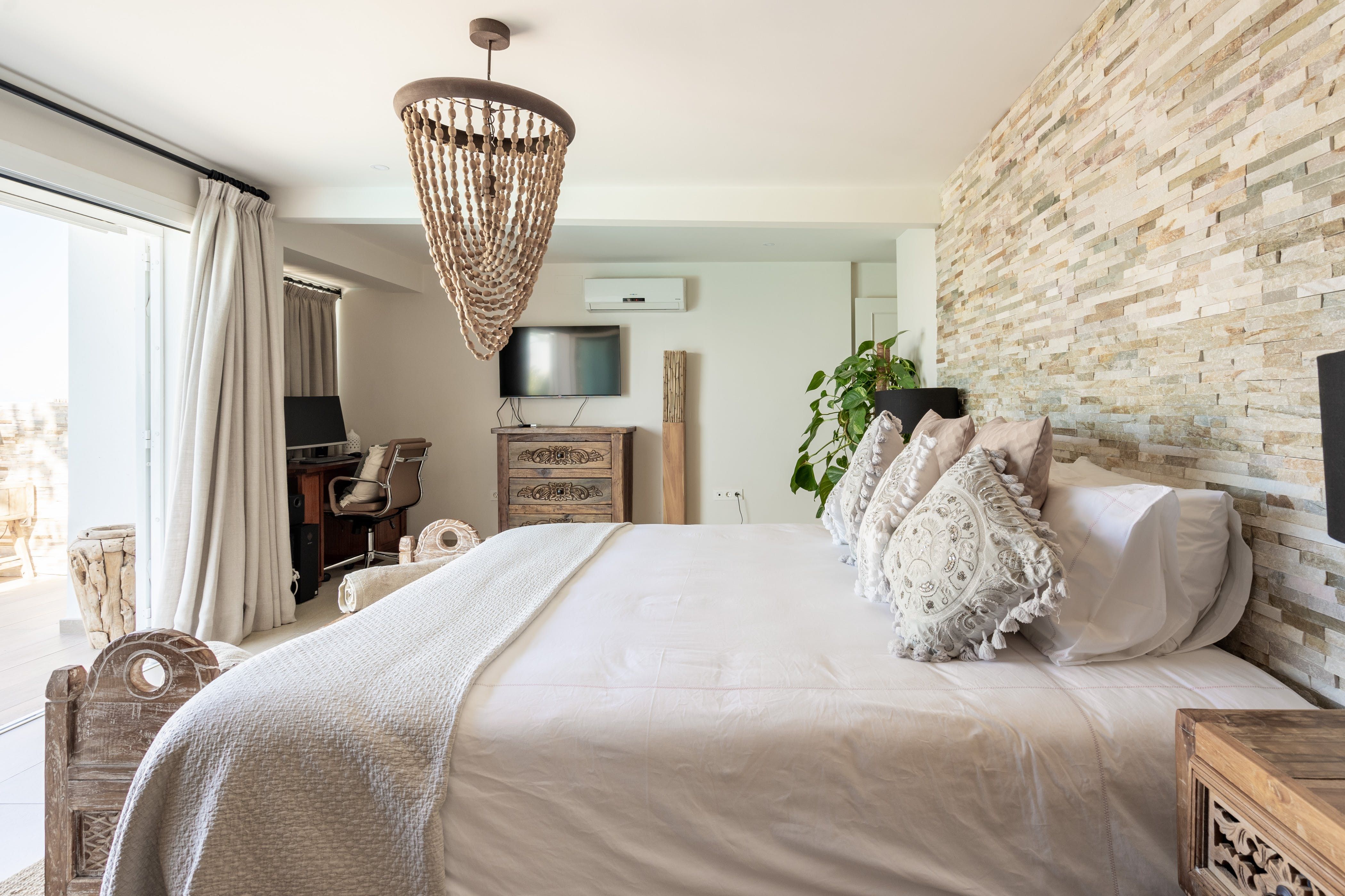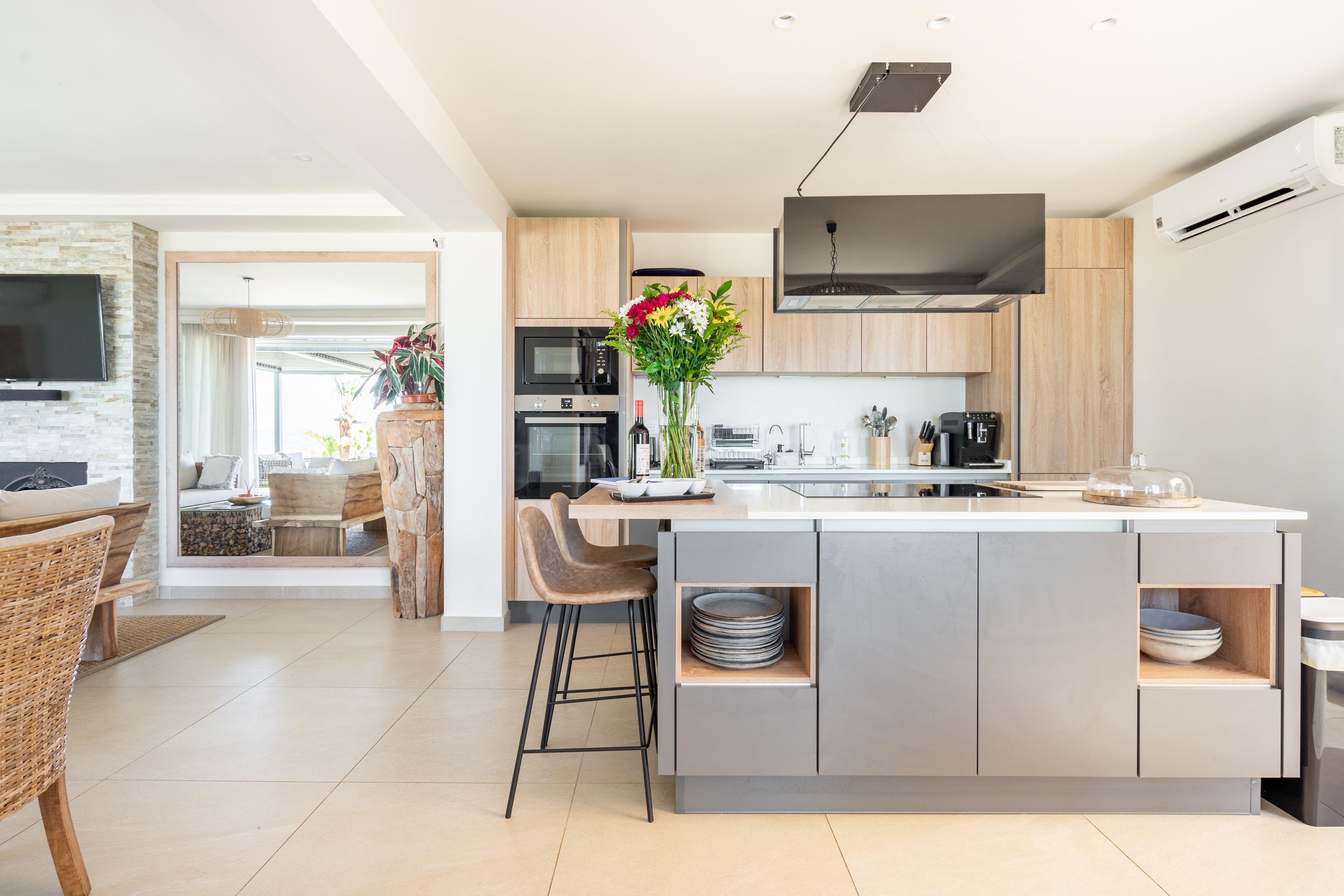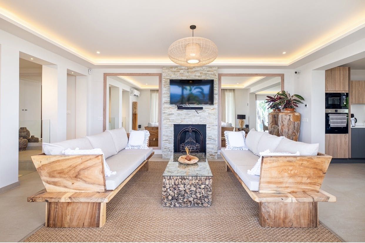 Flaunting a curation of natural textures and touches, the interior here is light, bright and fabulous. Sheer curtains canopy the windows and doors, letting the sunlight cascade its way from room to room, while the sleek floor tiles feel effortlessly cooling underfoot. Begin each morning by whipping up a creamy latte from the coffee machine and retreating back to the snug of your sumptuous slumber setting to admire the sensational views beyond. Suitably fuelled, venture outside to soak up the rays on whichever sunspot takes your fancy.