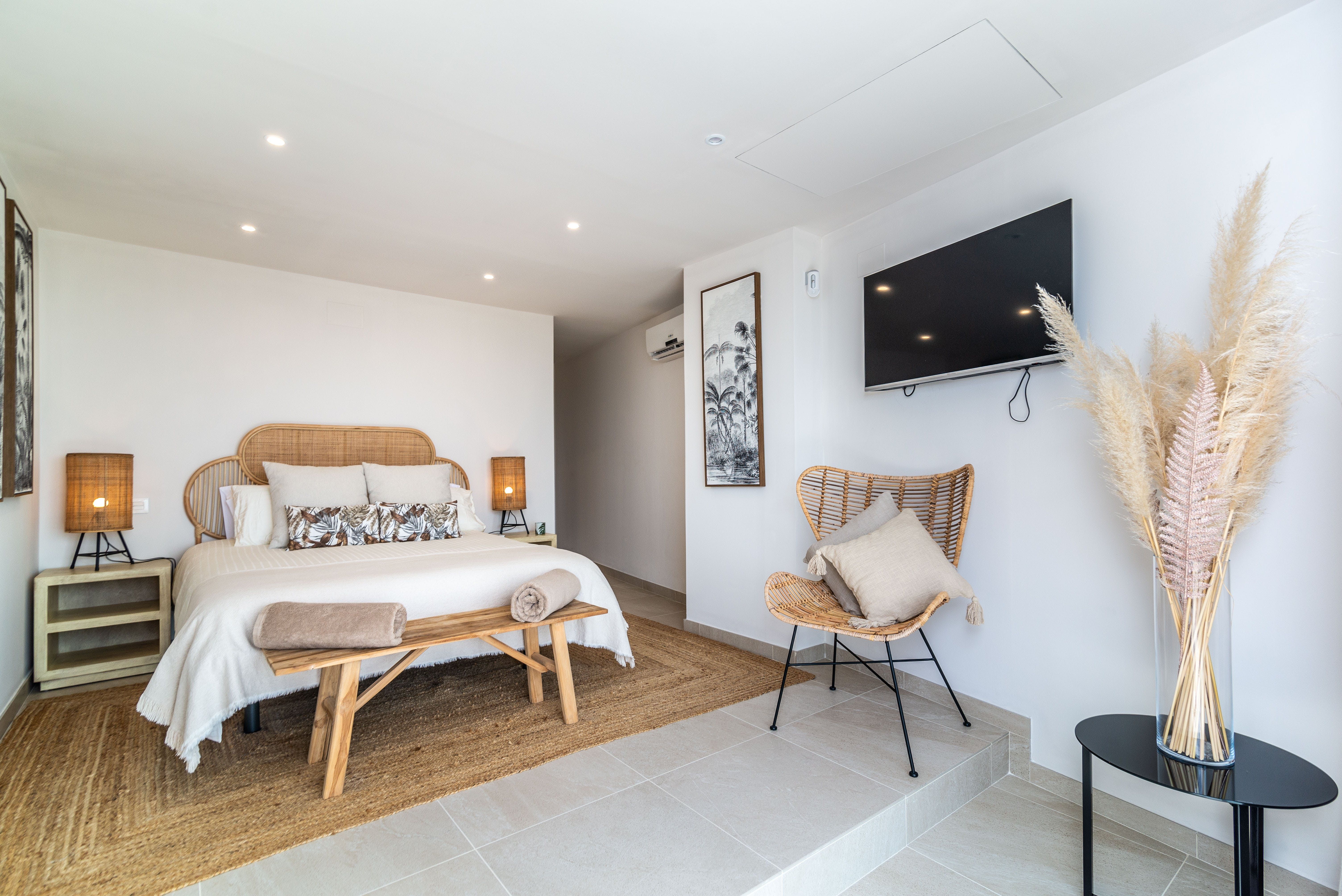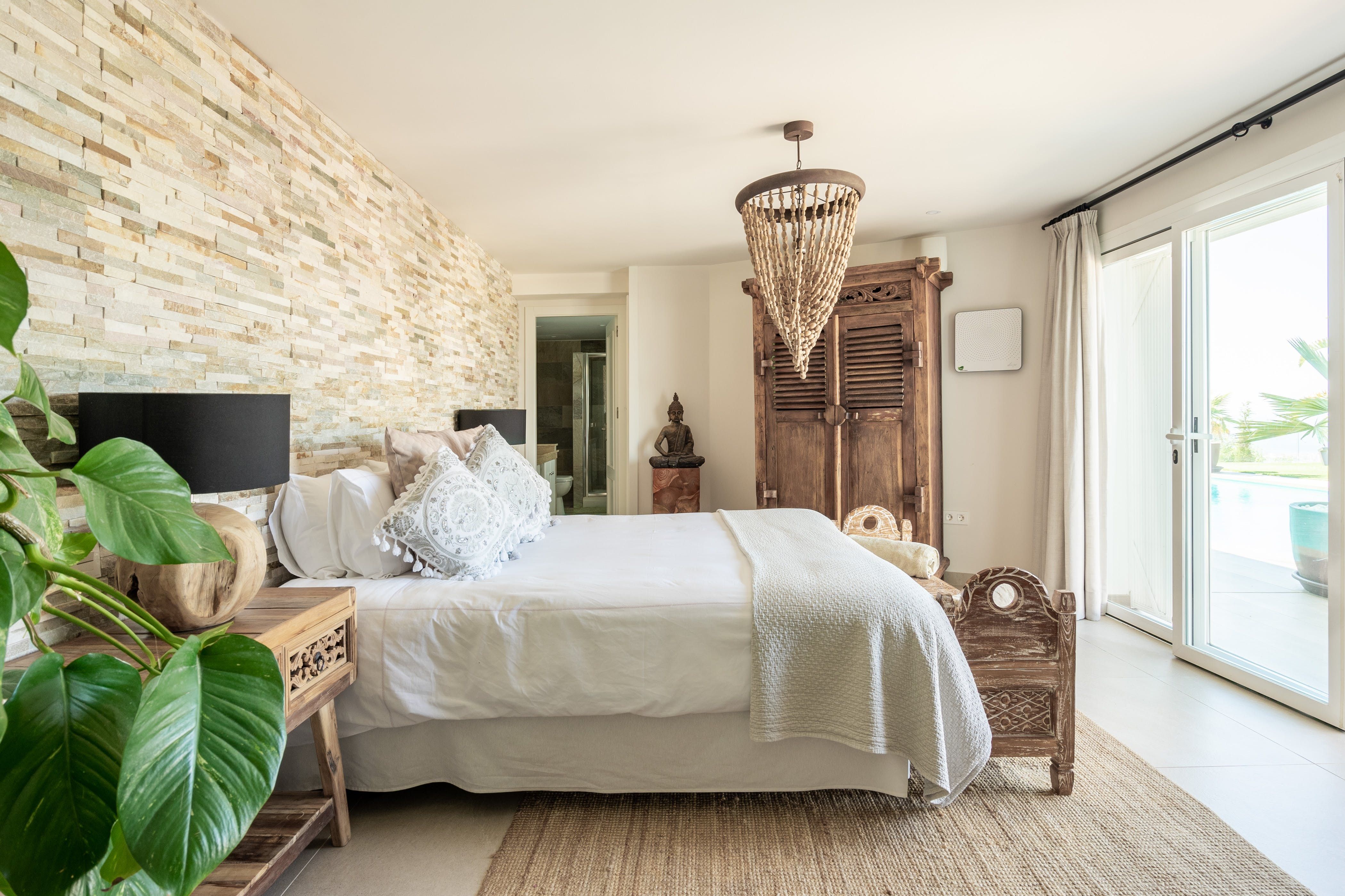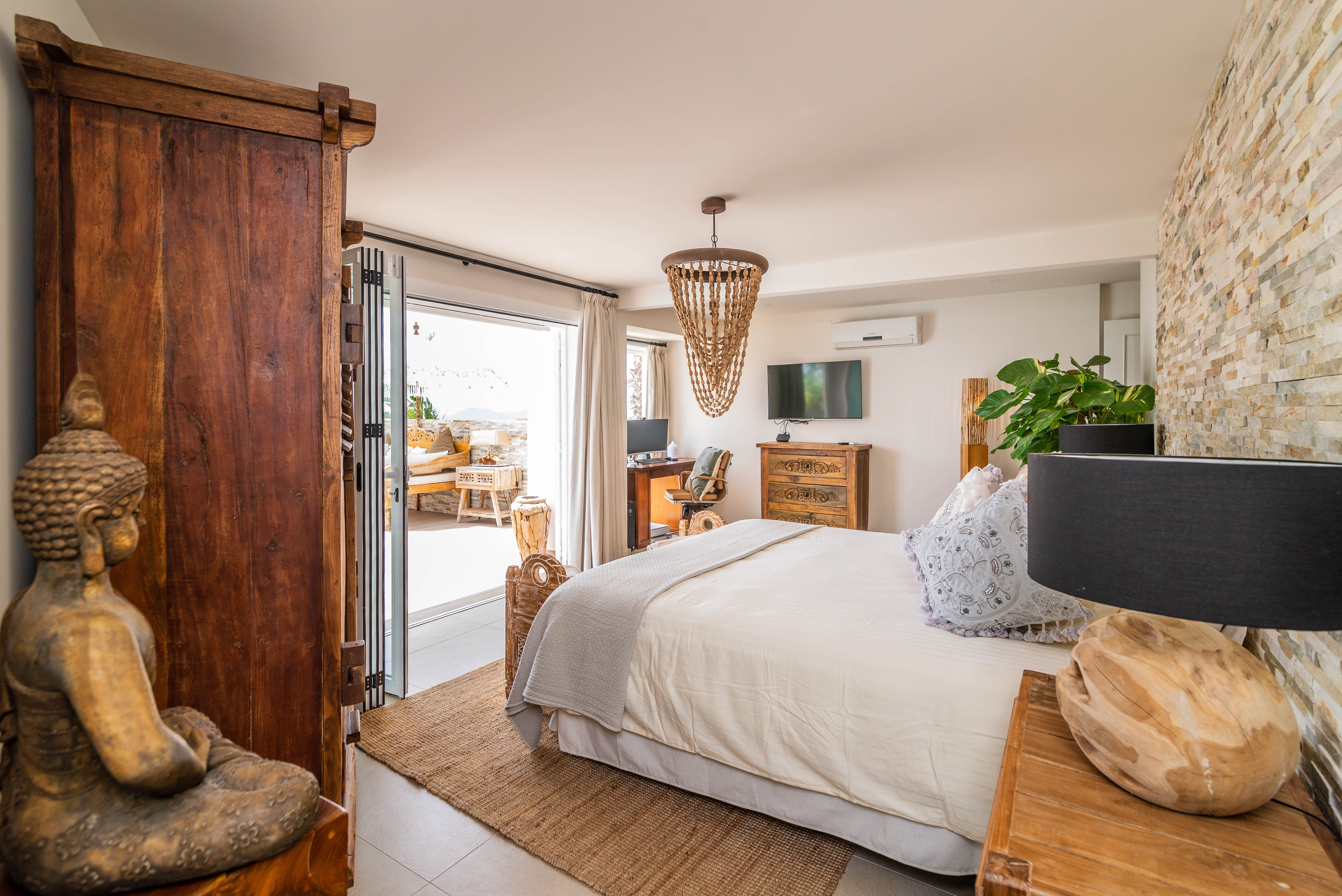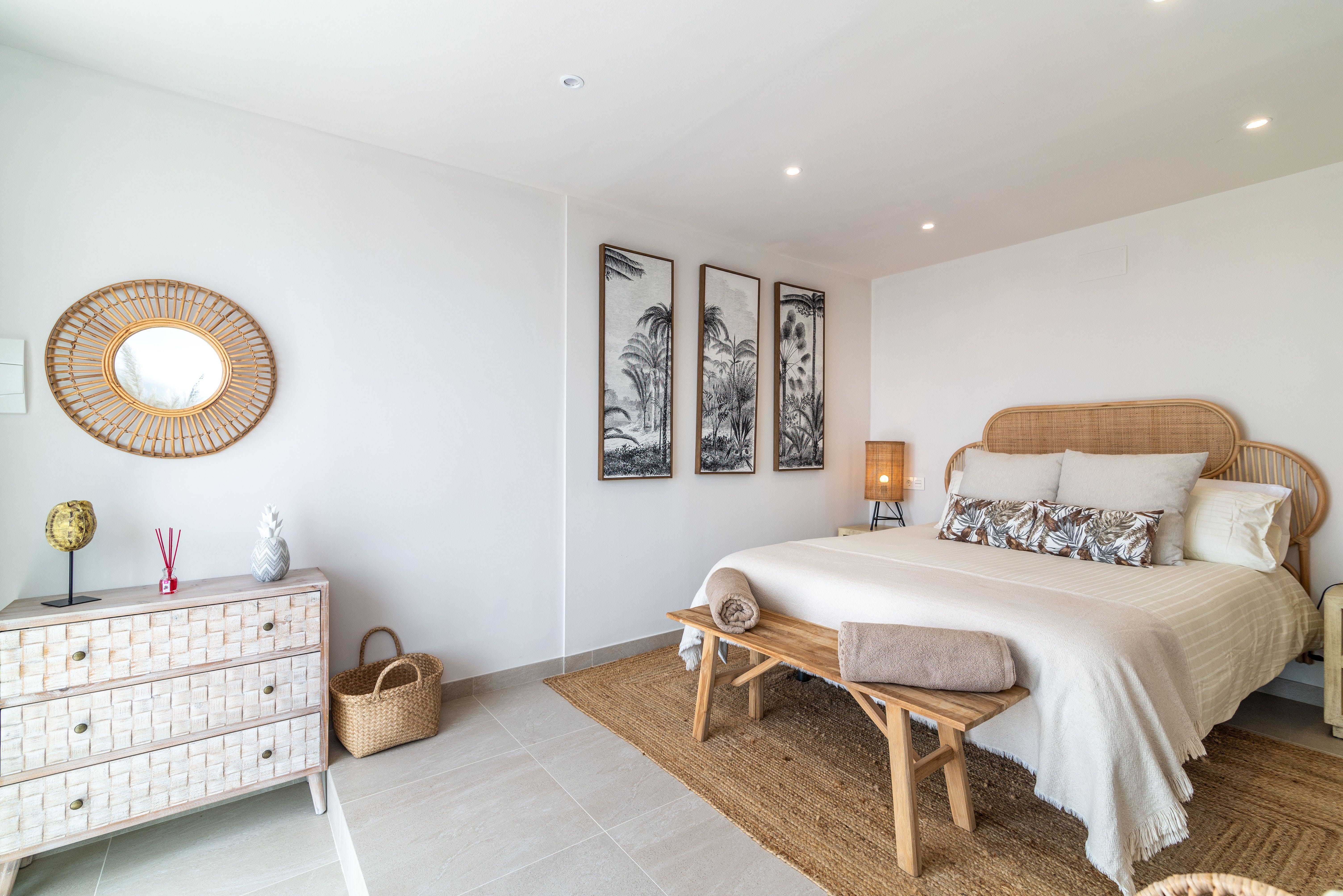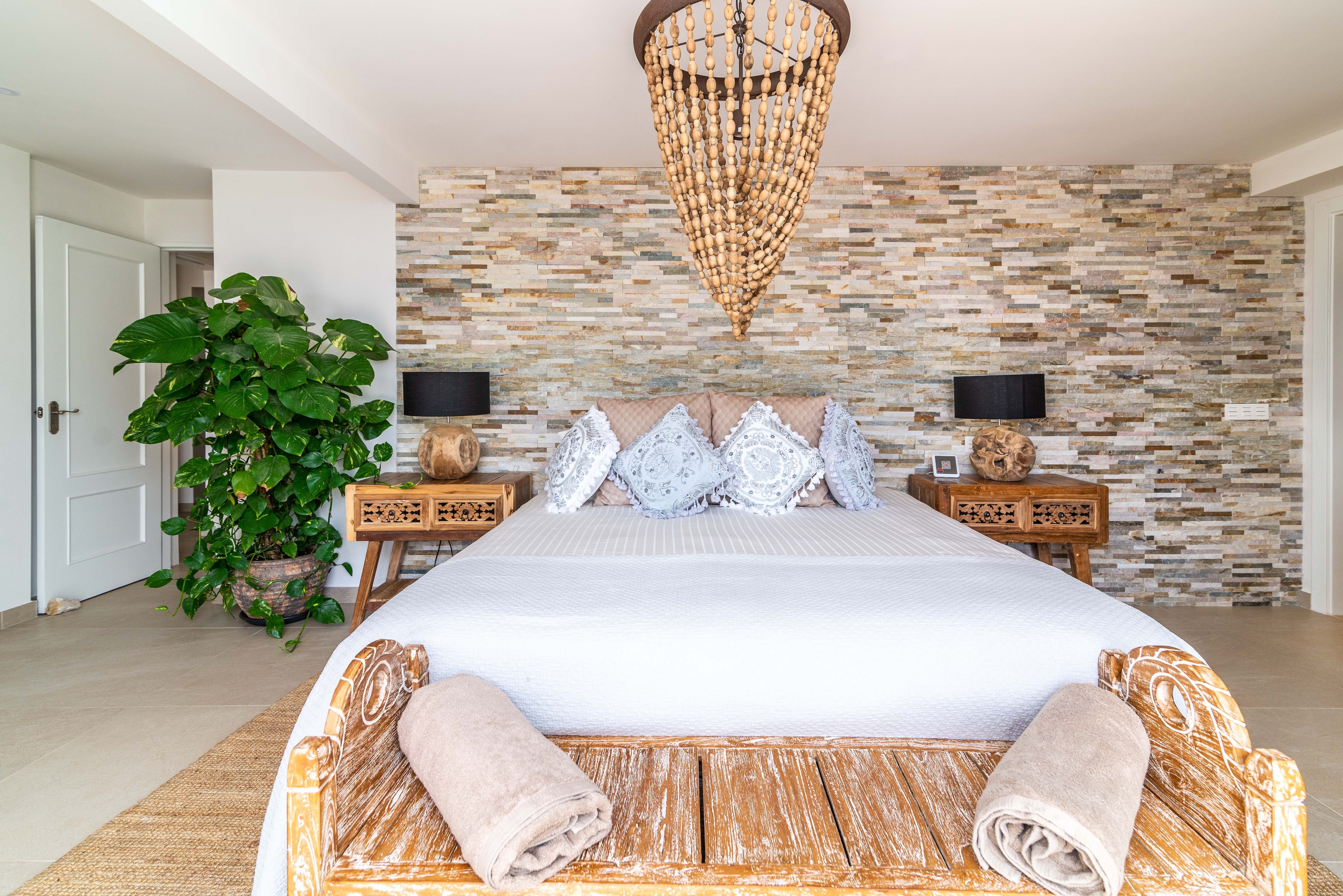 Flaunting a curation of natural textures and touches, the interior here is light, bright and fabulous. Sheer curtains canopy the windows and doors, letting the sunlight cascade its way from room to room, while the sleek floor tiles feel effortlessly cooling underfoot. Begin each morning by whipping up a creamy latte from the coffee machine and retreating back to the snug of your sumptuous slumber setting to admire the sensational views beyond. Suitably fuelled, venture outside to soak up the rays on whichever sunspot takes your fancy.