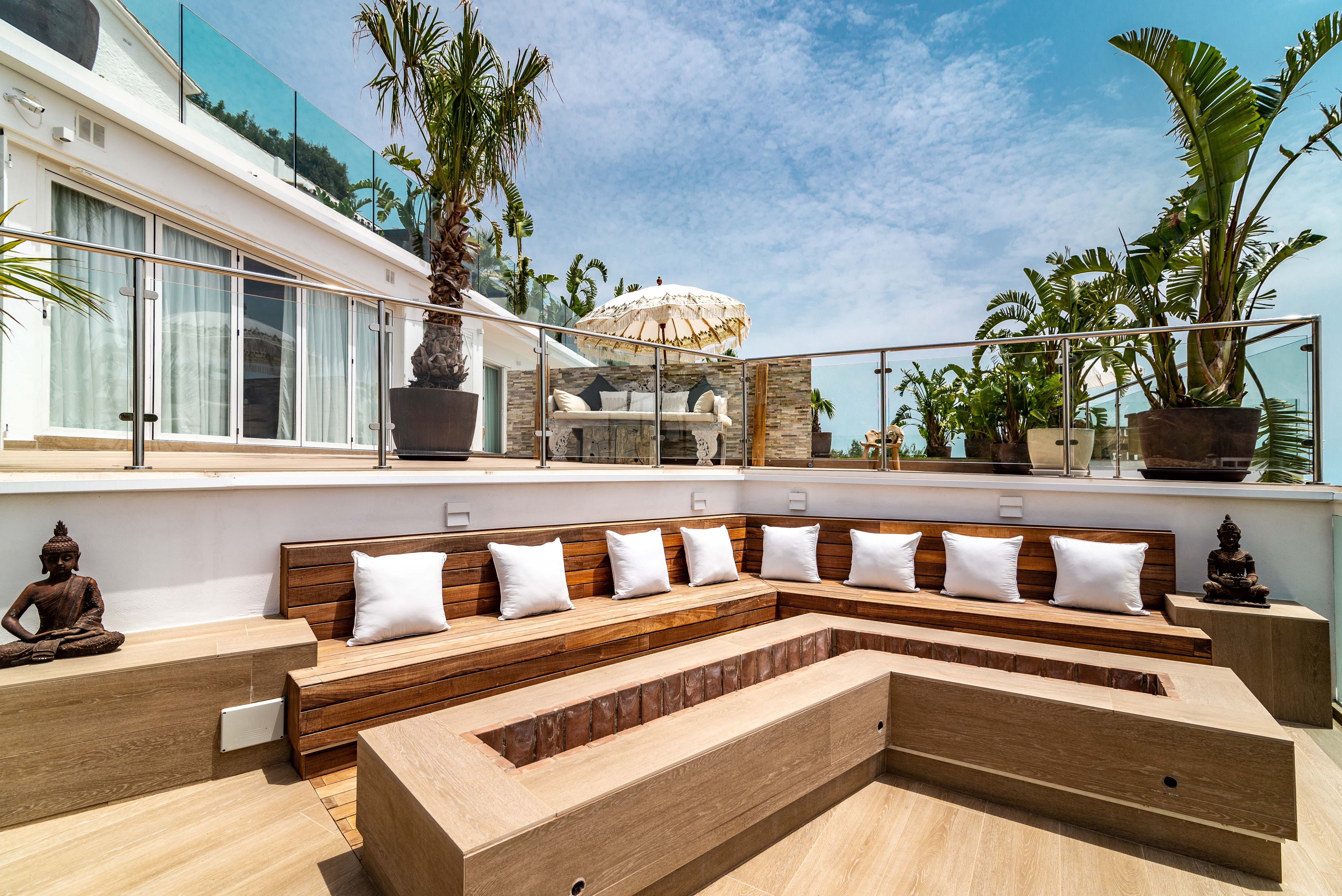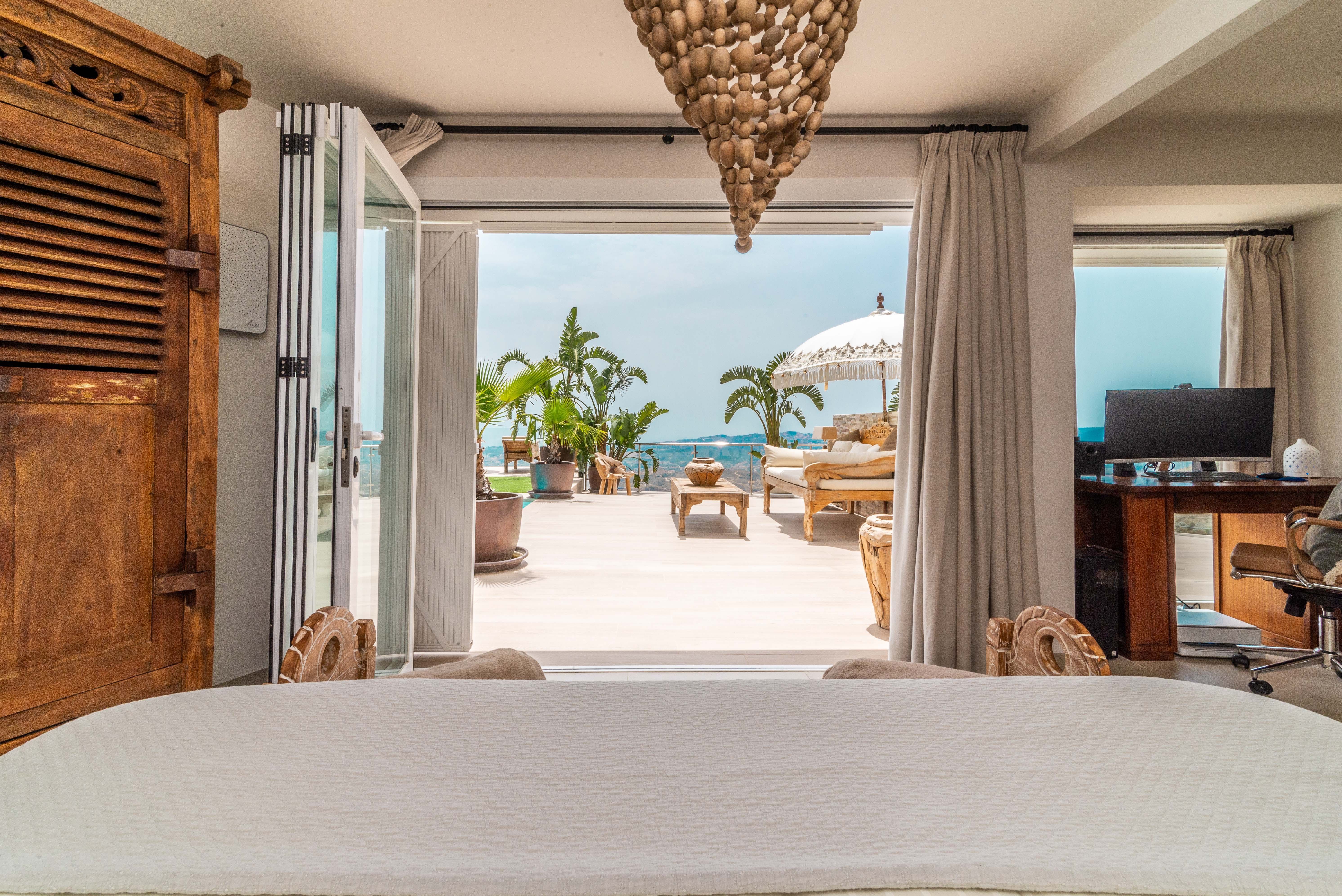 Surrounded by sleek bamboo furnishings and exotic vegetation, the glass walls of the balcony sketch the most sensational backdrop for a swim, meanwhile the cushioned sun loungers serve up the ideal spot to recline after an invigorating dip. Set over multiple tiers with a selection of separate balconies, the entire exterior of this home is nothing short of magnificent. We’re talking panoramic vistas of the luscious mountainscape, a luxury fire pit, a large shaded pergola with enough space for everyone to relax – you name it, this villa has got it. And as we saunter inside, we only become more doe–eyed.