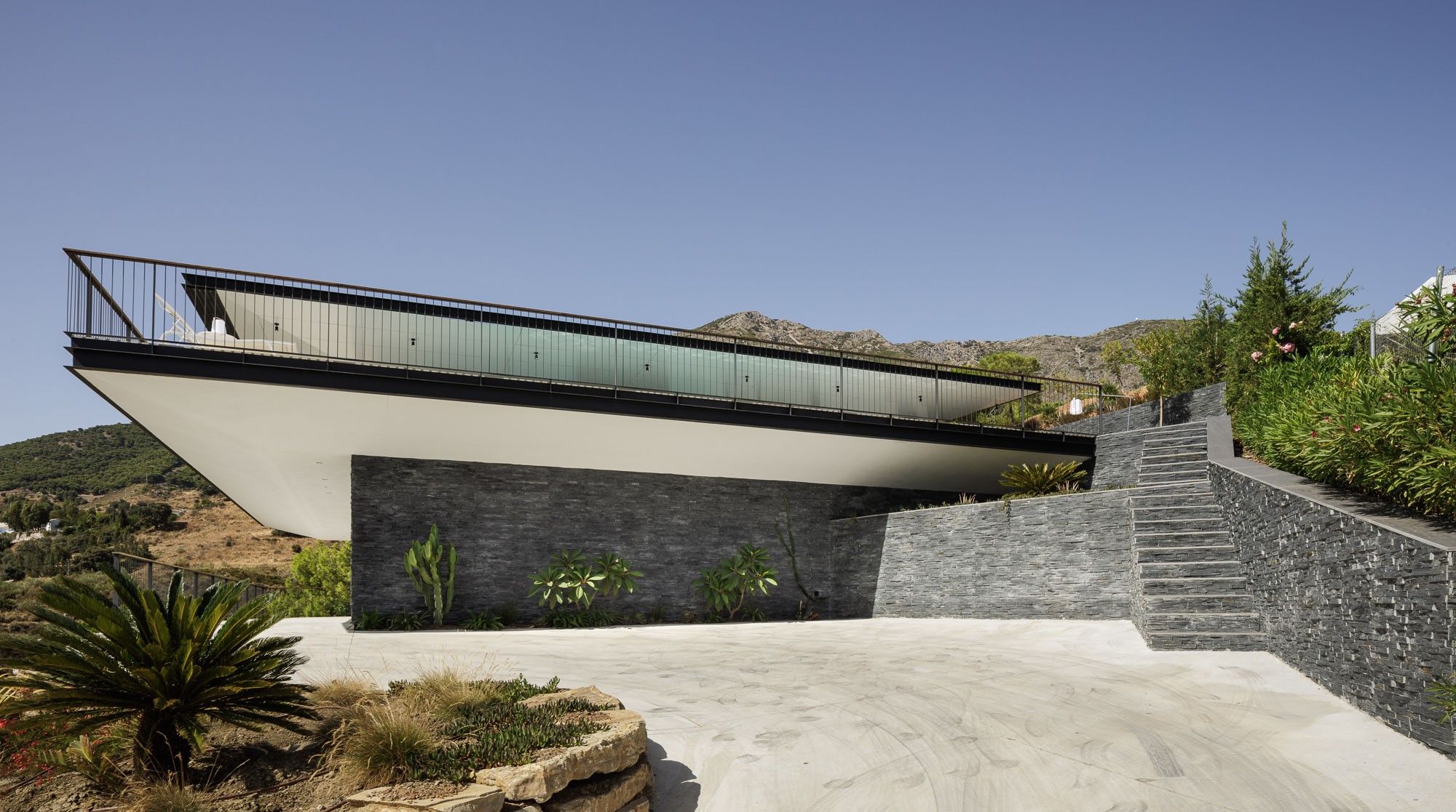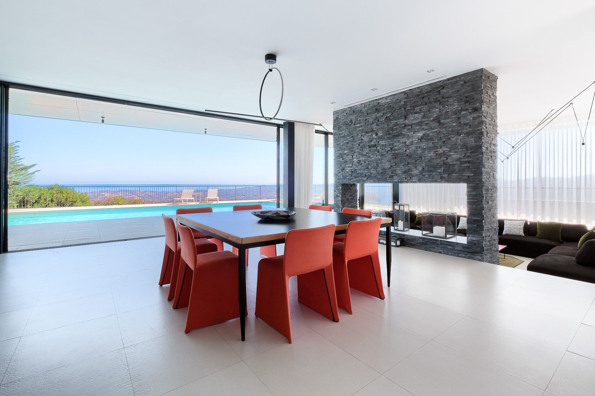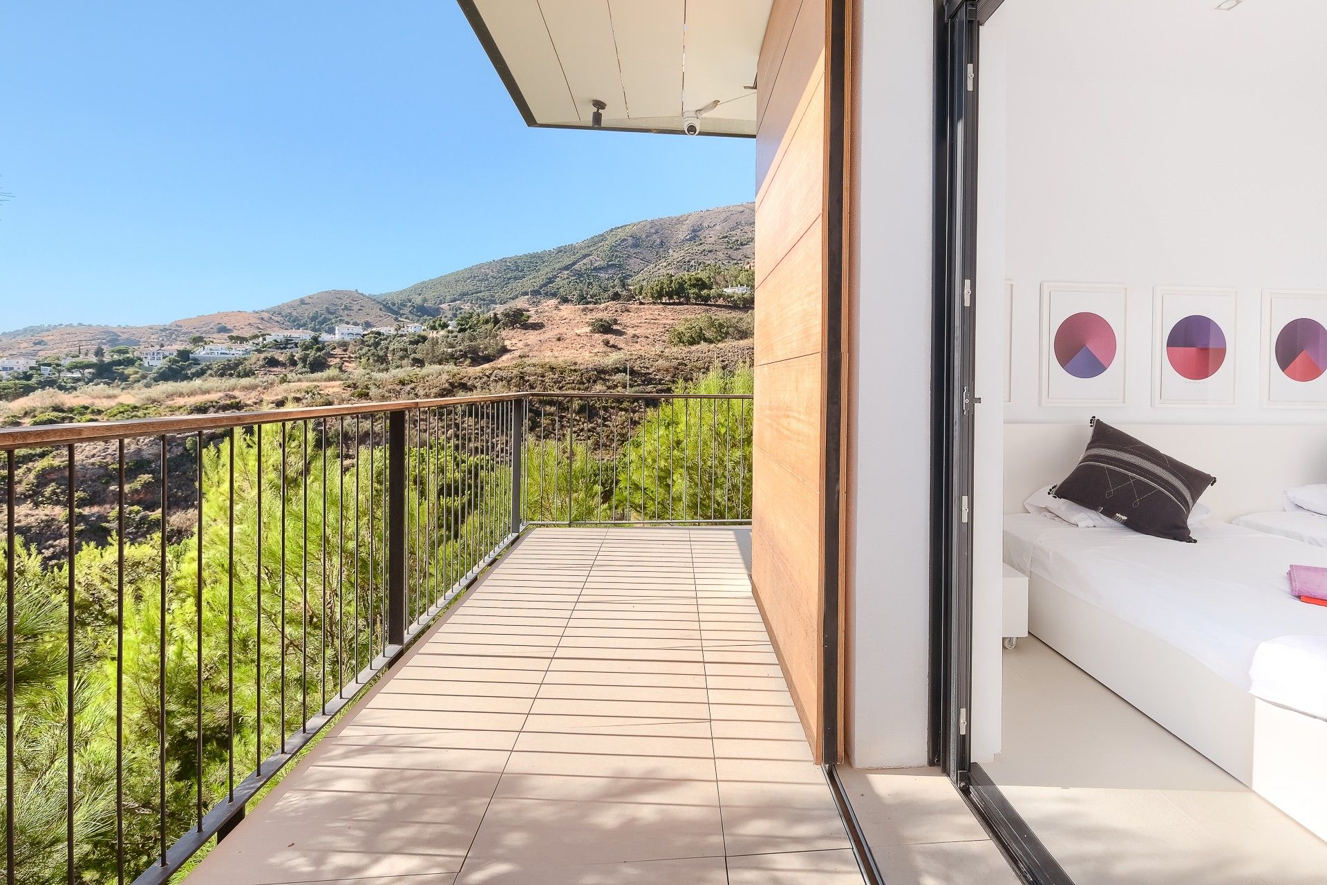 Bathed in sunlight and boasting panoramic views, this villa is a dream come true. The vistas are at the forefront, no matter what you're up to – be it swimming in the pool, playing ping-pong on the games terrace, or waking up in the breezy bedrooms. The design is ultra-modern and simplistic, but we think it complements the surrounding scenery well. Movie fans will love the at-home cinema room on the lower level, while fitness buffs will make a beeline for the private gym. As for location, the charming white-washed town of Mijas is just 2 kilometres away and the sandy beaches in Fuengirola are a fifteen-minute drive.