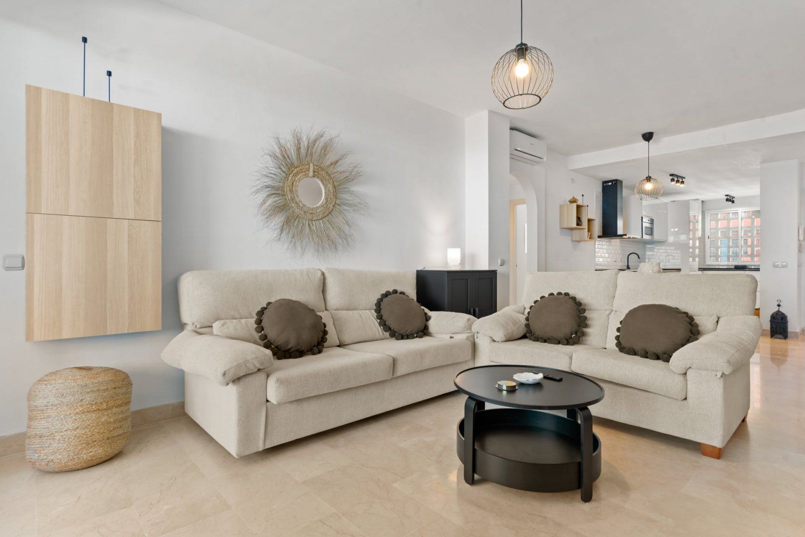 A short drive from Playa de Calahonda, this sea-facing villa provides everything needed for a relaxing stay on the Costa del Sol. Though the poolside sun loungers and shared garden serve as a fantastic tanning spot, we love the private space upstairs. There, you'll find a covered terrace offering comfy seating and impressive sea views, which makes for a lovely outside area to relax with your group. You will need a car to get around, but there is private parking, as well as plenty of shops and restaurants nearby.