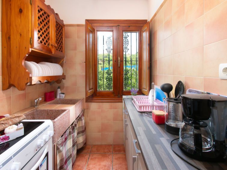 "Villa Chirimoya", 6-room farmhouse 180 m2 on 2 levels. Simple and comfortable furnishings: 1 room with 2 beds (90 cm, length 190 cm). 1 room with 1 french bed (135 cm, length 190 cm). Living/dining room with dining table, TV, satellite TV, air conditioning and forced-air heating.