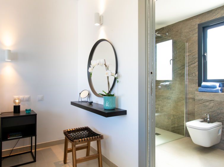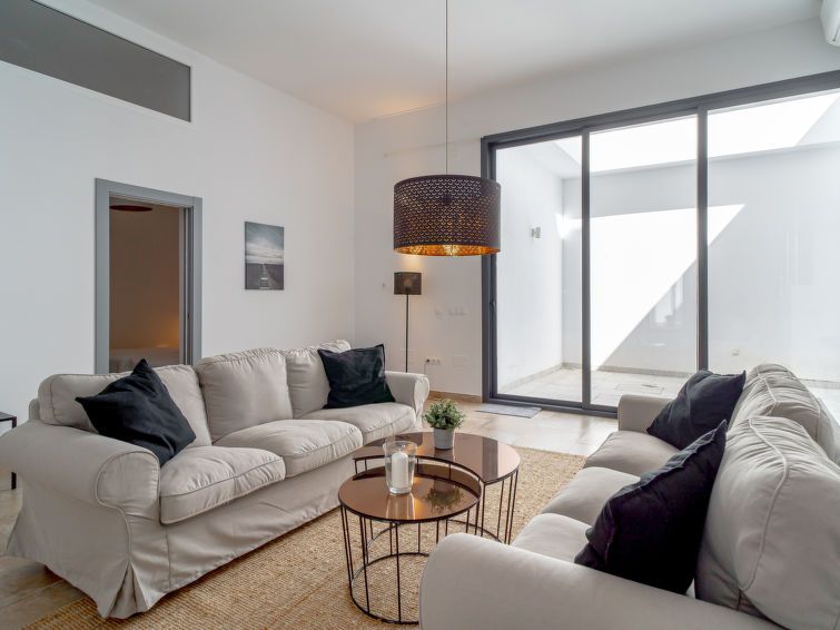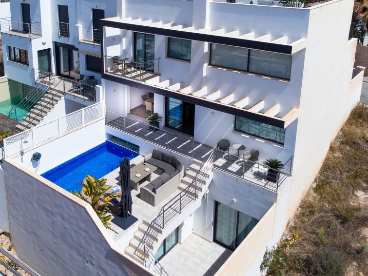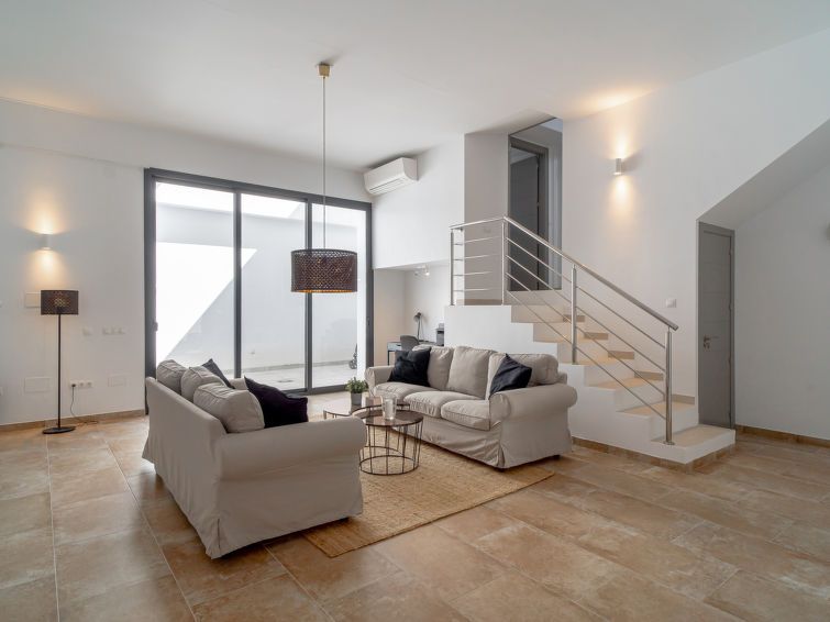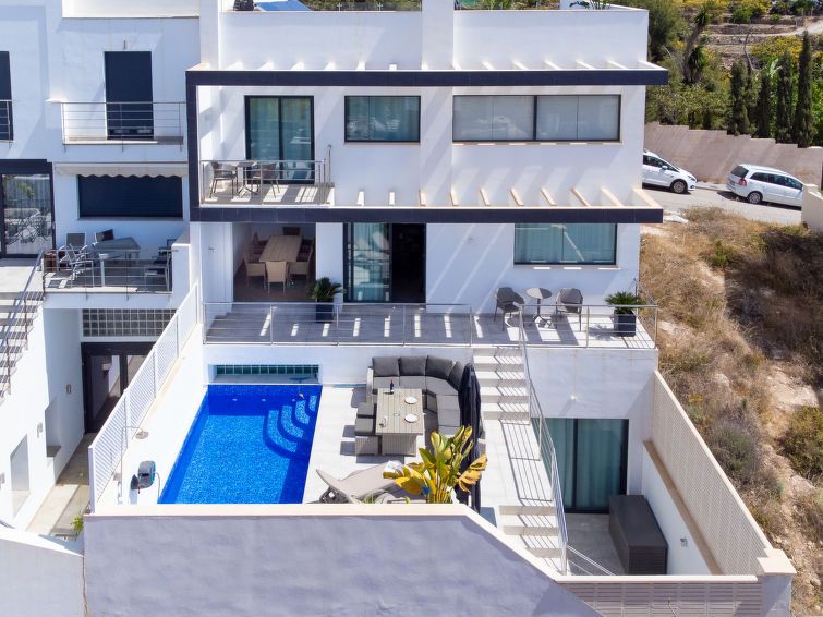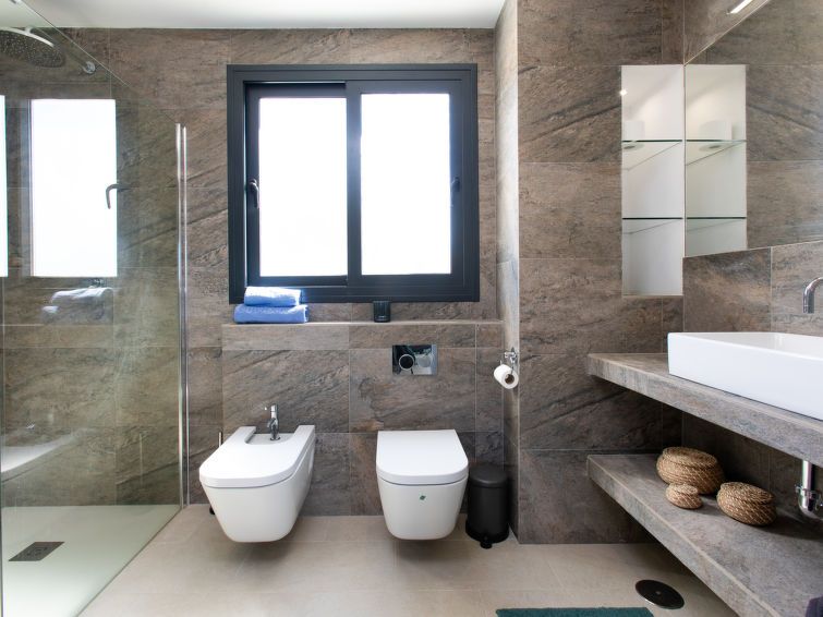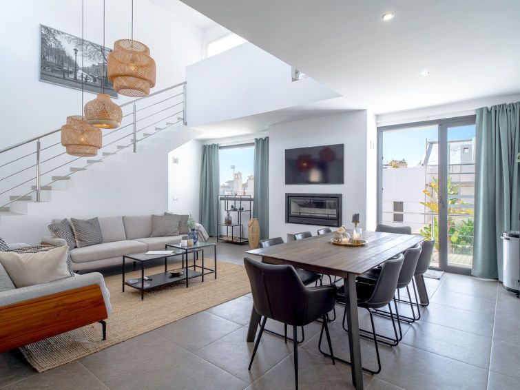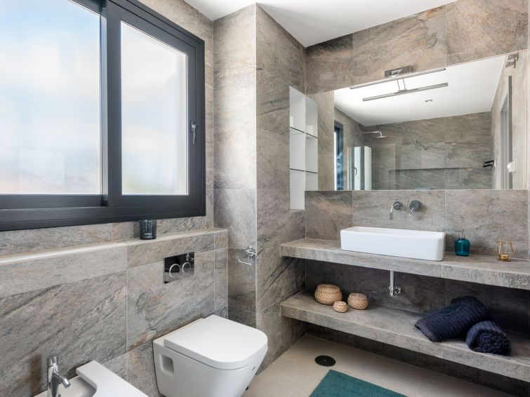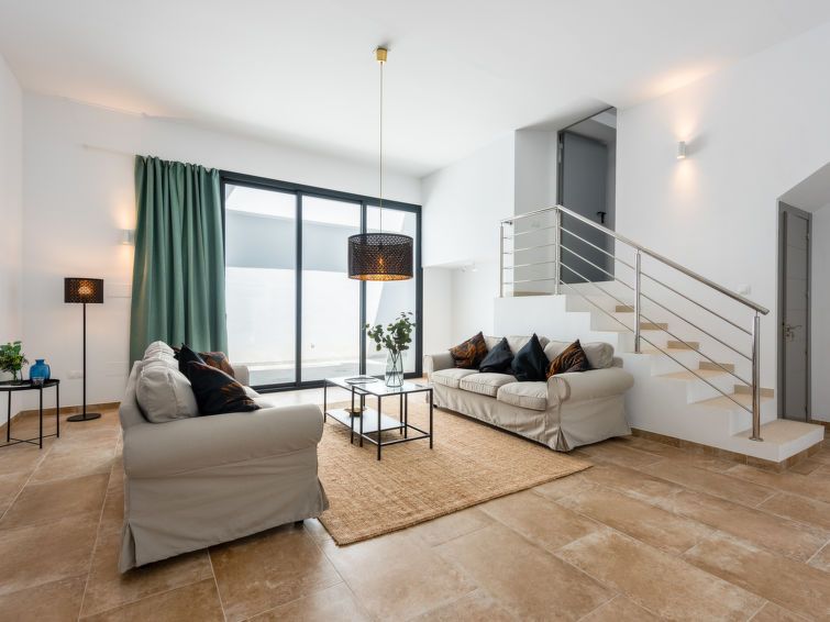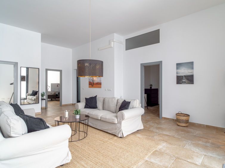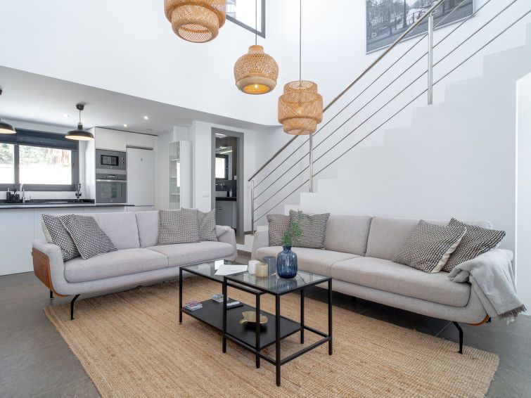"Aldea", 5-room villa 120 m2. Spacious and bright, comfortable furnishings: living/dining room with TV, international TV channels, air conditioning and forced-air heating. Open kitchen (oven, dishwasher, 3 induction hot plates, toaster, kettle, microwave, freezer, electric coffee machine).