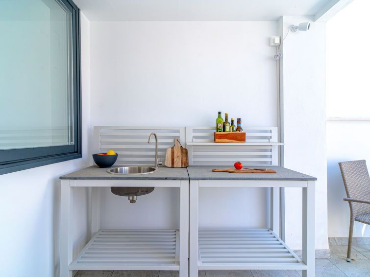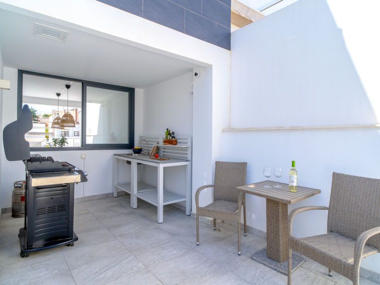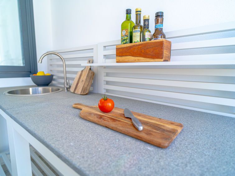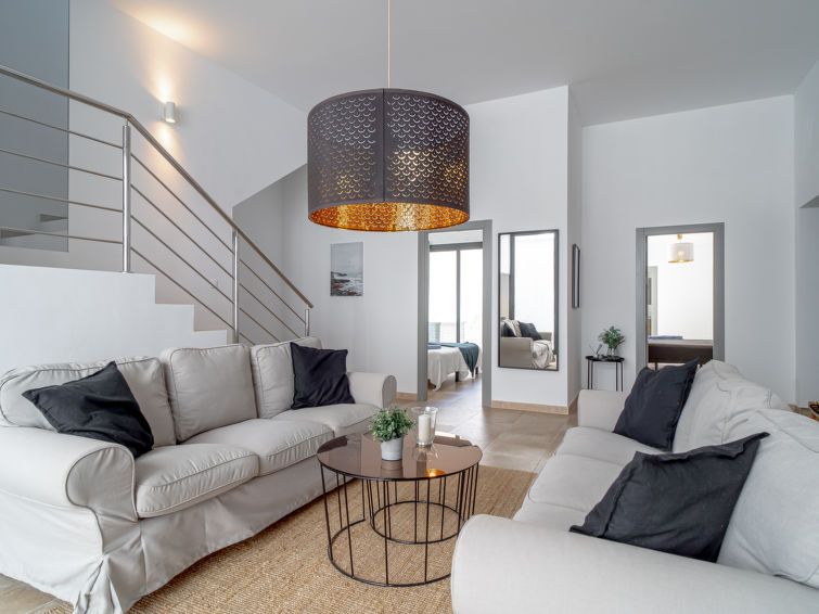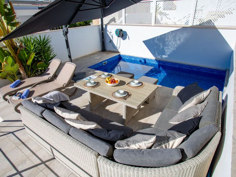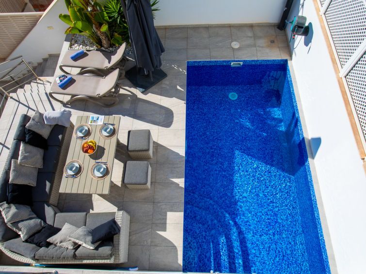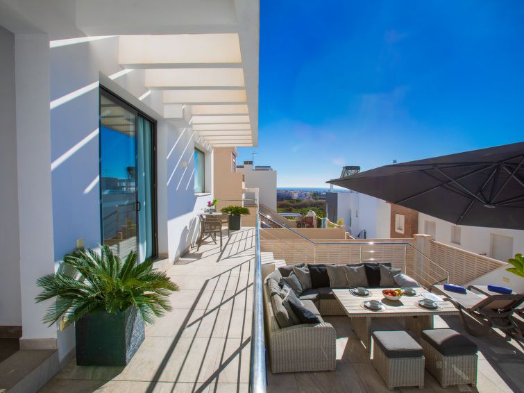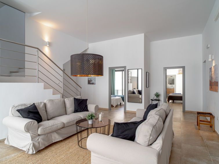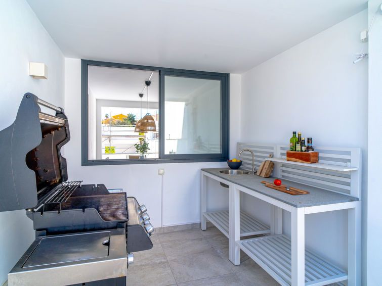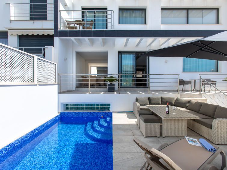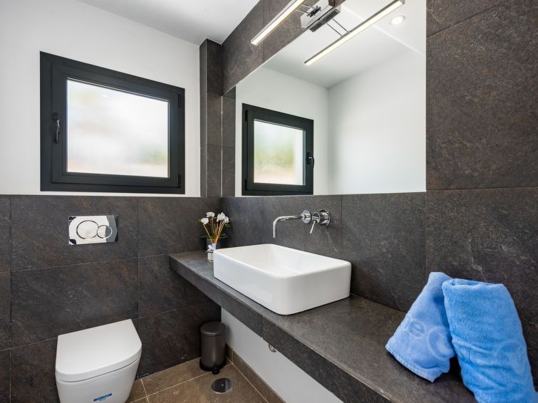 "Aldea", 5-room villa 120 m2. Spacious and bright, comfortable furnishings: living/dining room with TV, international TV channels, air conditioning and forced-air heating. Open kitchen (oven, dishwasher, 3 induction hot plates, toaster, kettle, microwave, freezer, electric coffee machine).