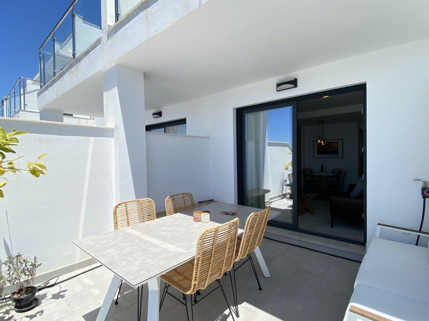 This beautiful coastal apartment boasts spectacular sea views, and with three sun terraces all to yourself, you'll be boasting about it too. Set across three levels, you'll have access to a communal pool as well as your own spaces for alfresco dining, tanning, or just lounging with a cold drink while you gaze out at the distant horizon. You'll be able to roll out of bed and onto your own balcony to greet the sun, or keep the curtains closed a little longer if you're not a morning person. Whip up some good food in the fully-equipped kitchen and eat inside or dine alfresco on the terrace under the sun. Later in the afternoon go for a dip in the communal pool with the stunning ocean backdrop visible while you swim, before letting the sun dry you off on one of the sun loungers. Whether you're looking to be productive and get some last-minute work done over the wi-fi, go exploring and meet new people, or just relax and take in the stunning ombre where the sky meets the ocean, this apartment will have everything you need and everything you didn't know you needed. Just don't forget the sun cream!