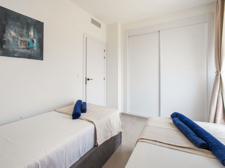 "Heaven Free Spa & Padel", 3-room apartment 80 m2. Practical and comfortable furnishings: living/dining room with digital TV, air conditioning and forced-air heating. Exit to the terrace, to the swimming pool. 1 room with 2 beds (90 cm, length 200 cm), air conditioning and forced-air heating.