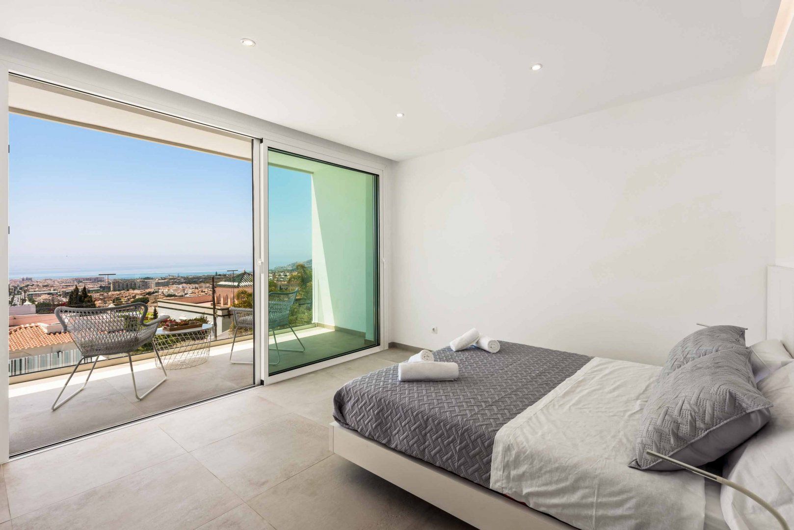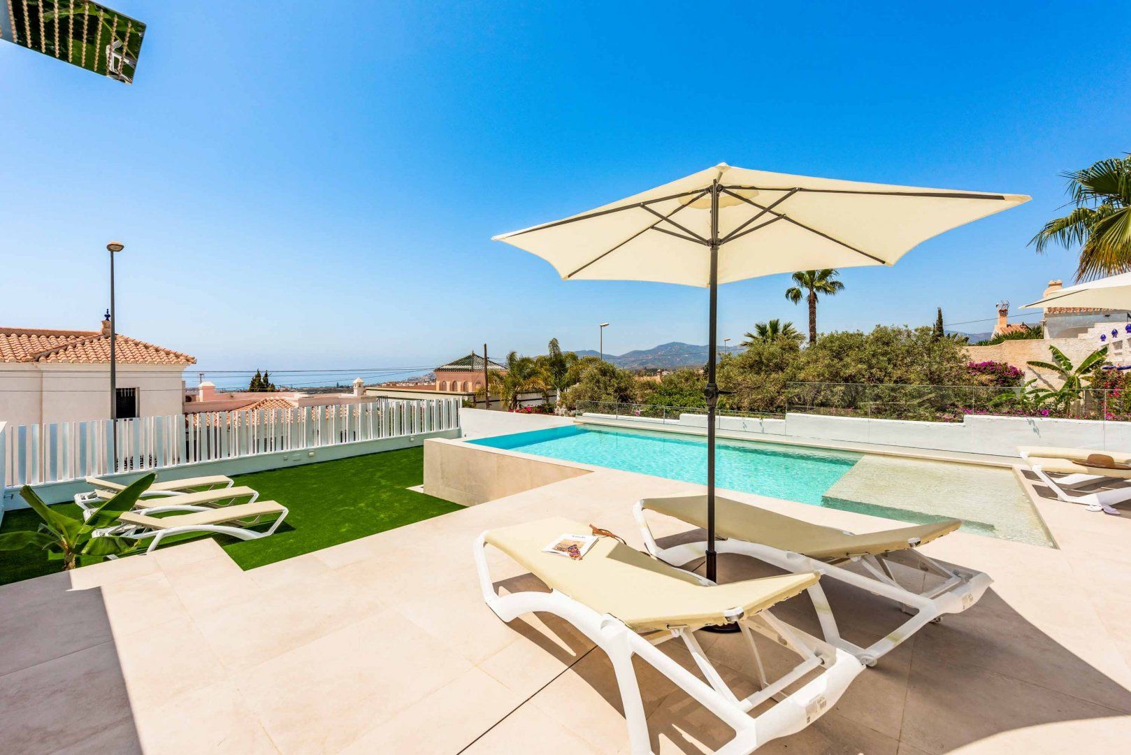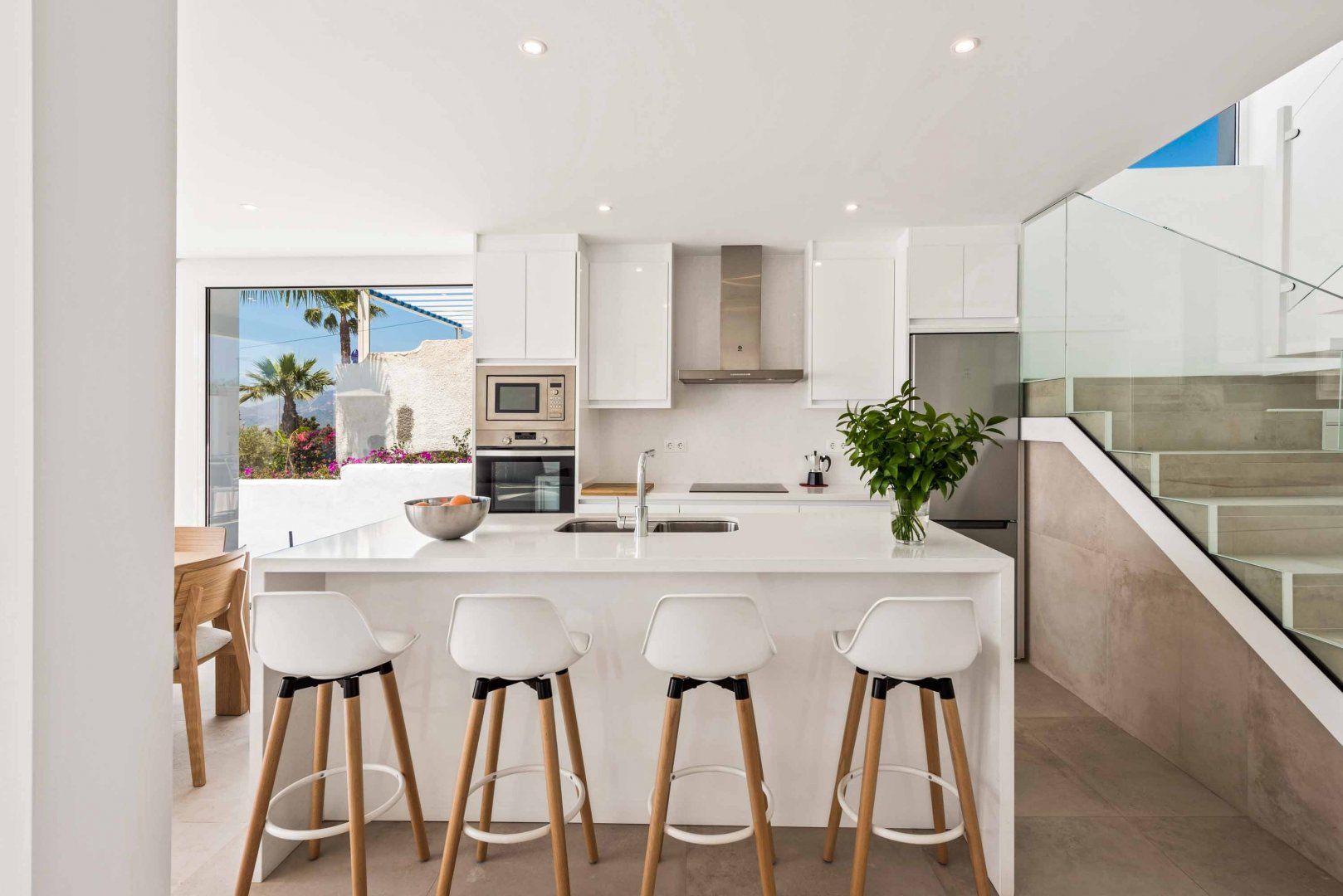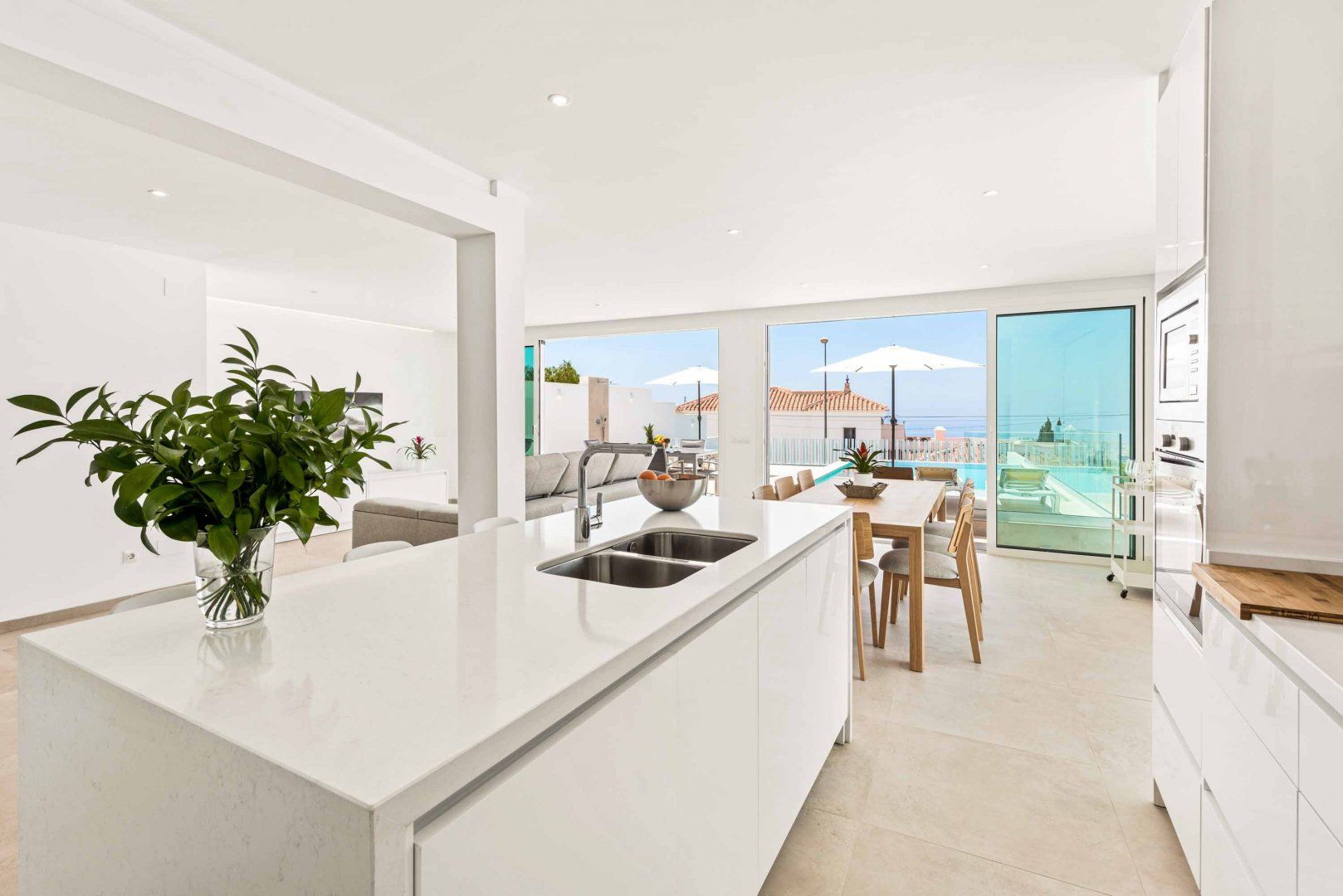 Mountains and in the other, it’s a leisurely walk to Nerja’s beachfront. Simplicity is the watchword, inside and out. The backyard is dominated by a shimmering swimming pool – as it should be in the southern Spanish heat. The huge, open-plan kitchen, living and dining room is sleek, if a little sparse – a place for folk that prefer clear surfaces, no clutter and plenty of sunlight streaming in through walls of glass. Up on the first floor, a balcony looks out over the sea.