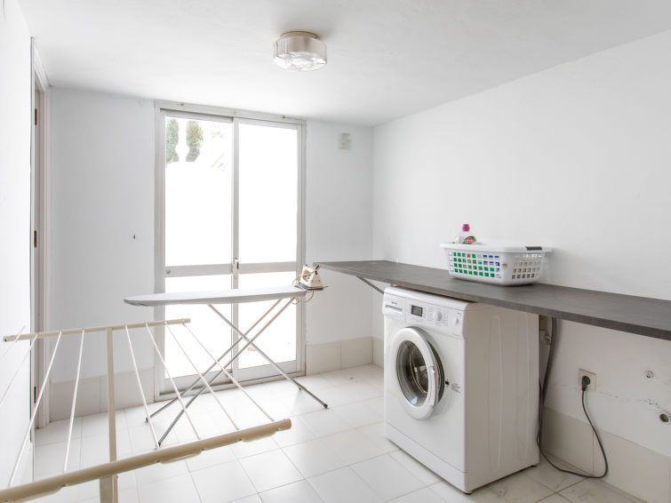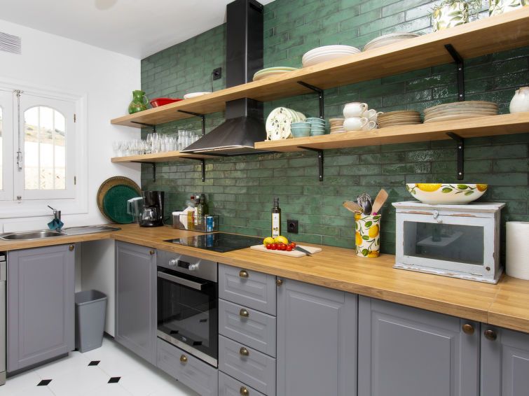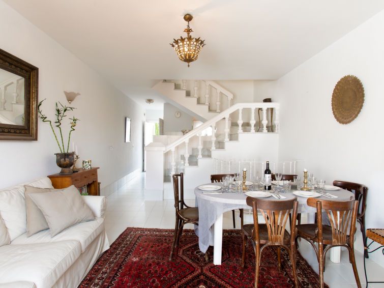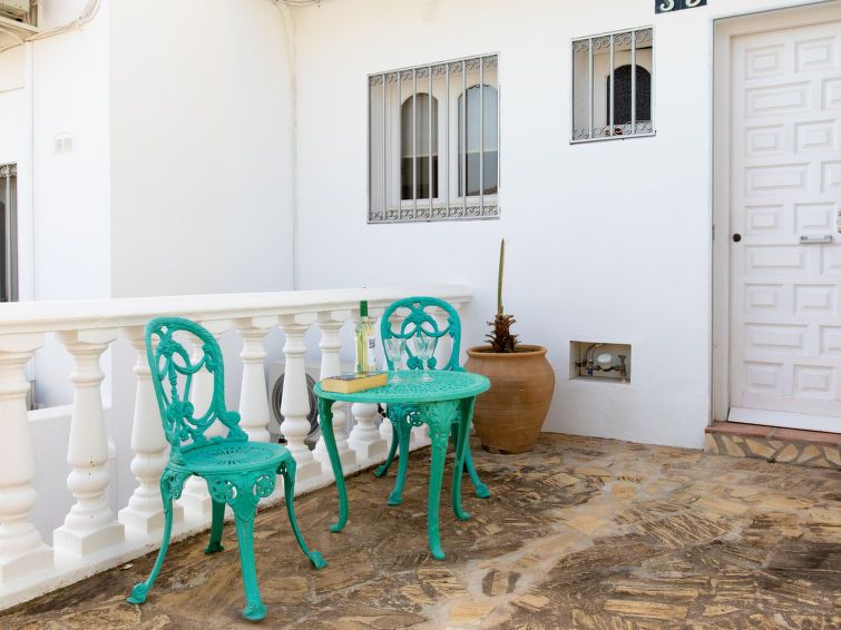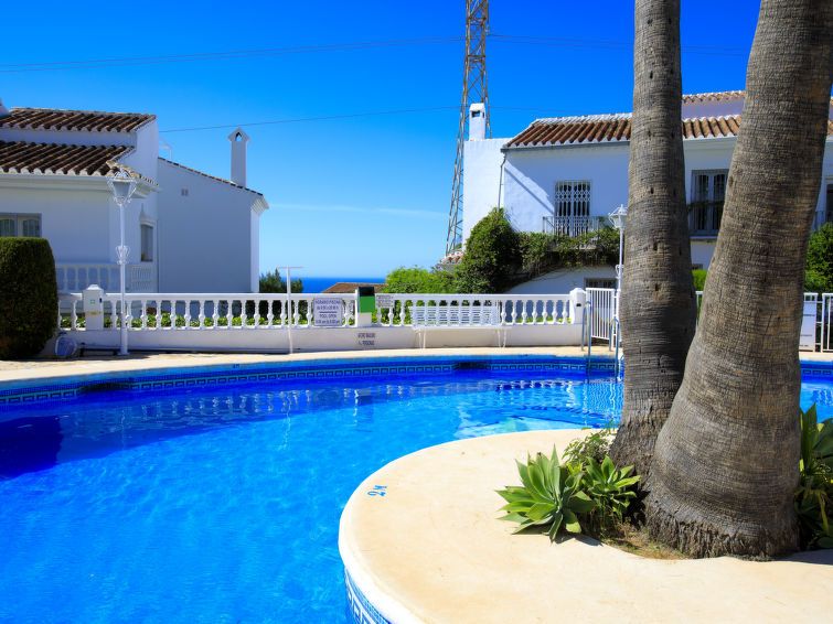 "Jardines de Nerja", 5-room terraced house 110 m2. Practical furnishings: living/dining room with open-hearth fireplace, separate WC, satellite TV, air conditioning and forced-air heating. Exit to the garden, to the terrace, to the swimming pool. Open kitchen (oven, dishwasher, 4 ceramic glass hob hotplates, toaster, kettle, microwave, freezer, electric coffee machine) with dining table.