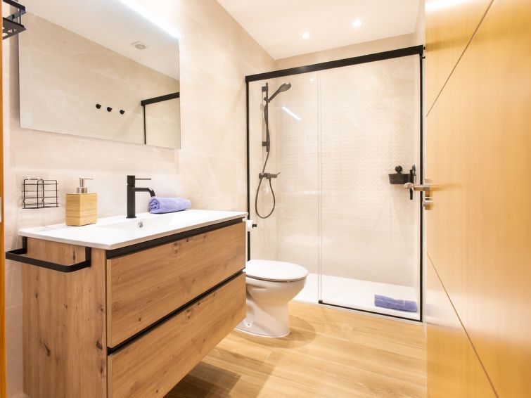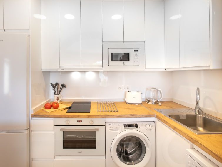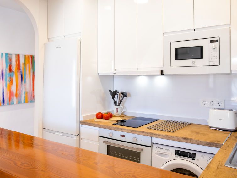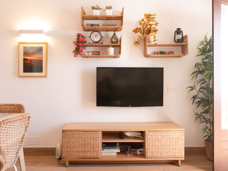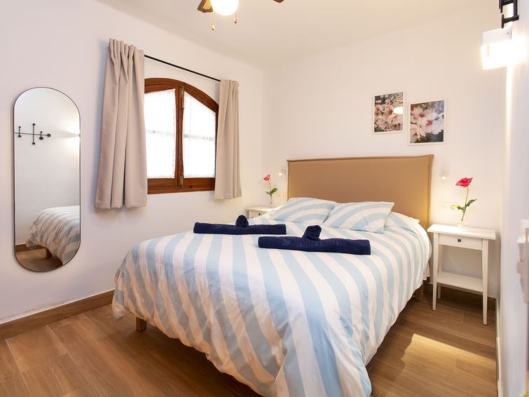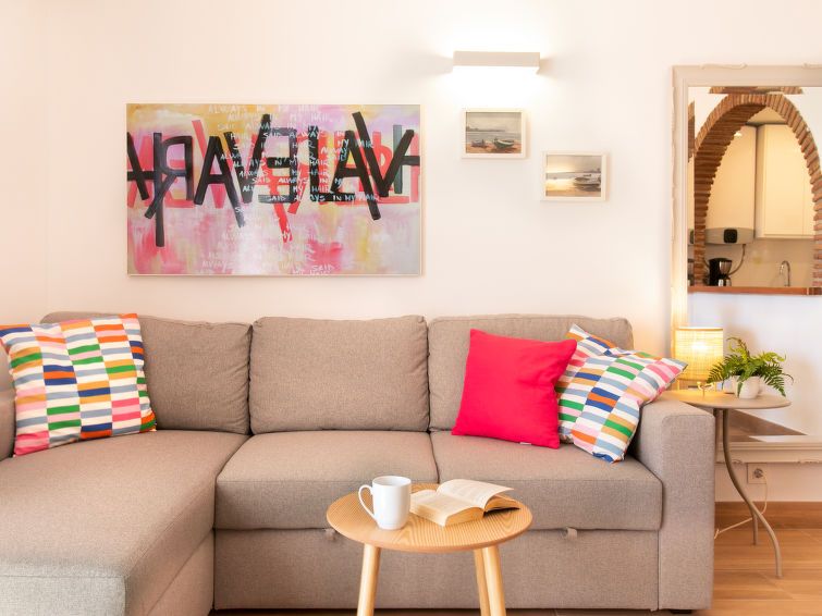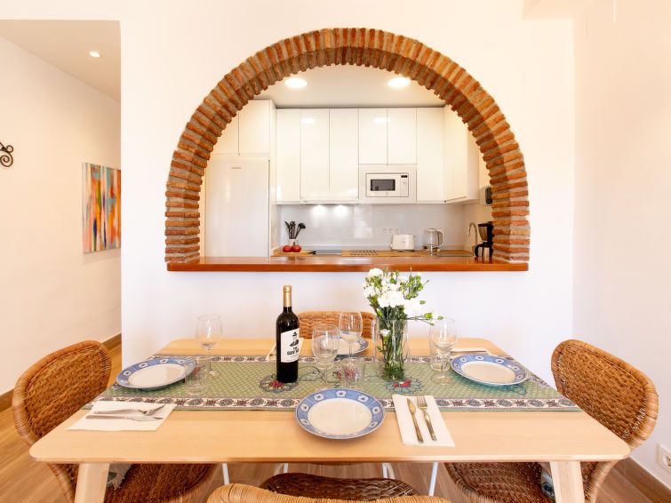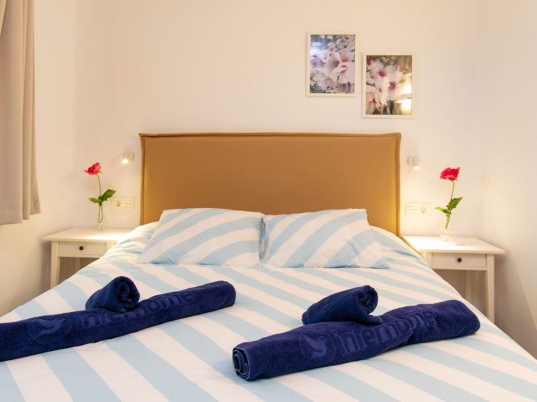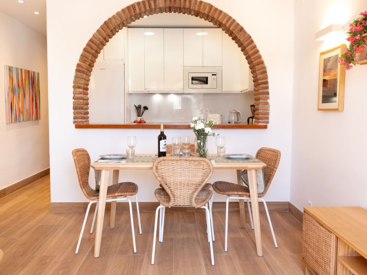 "Los Geraneos de Capistrano", 2-room apartment 41 m2, south facing position. Fully renovated in 2025, practical and comfortable furnishings: living/dining room with digital TV, air conditioning and forced-air heating. Exit to the terrace. 1 room with 1 french bed (160 cm, length 200 cm), fan.