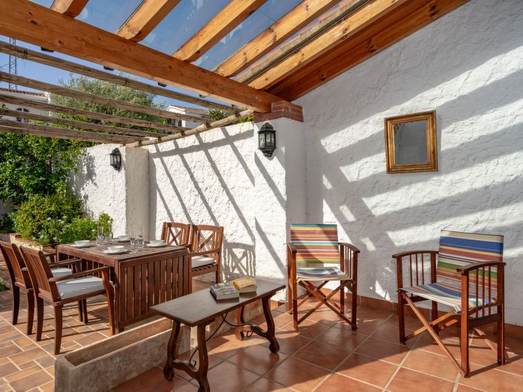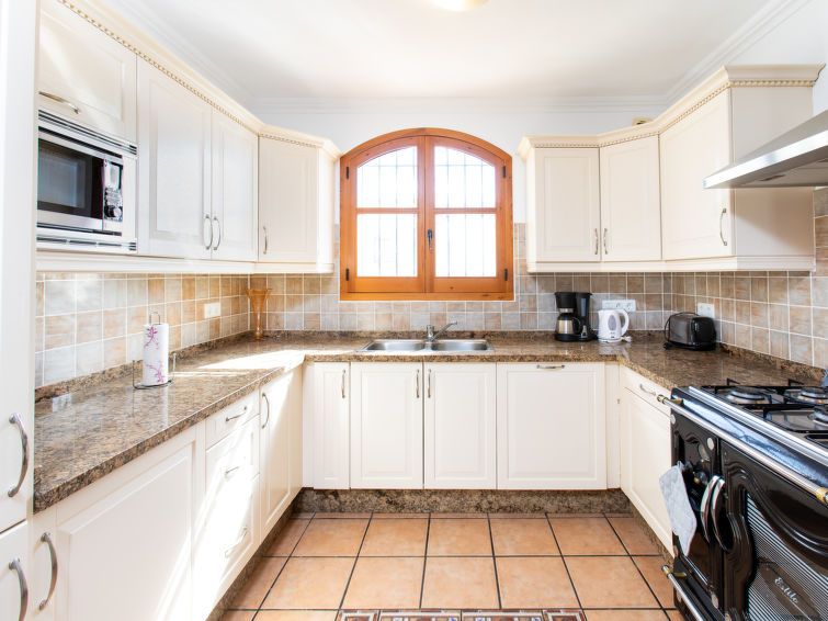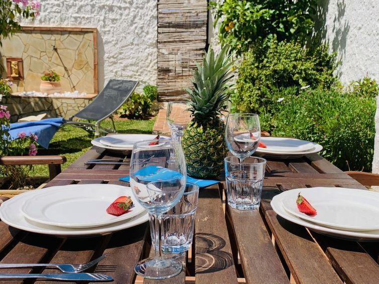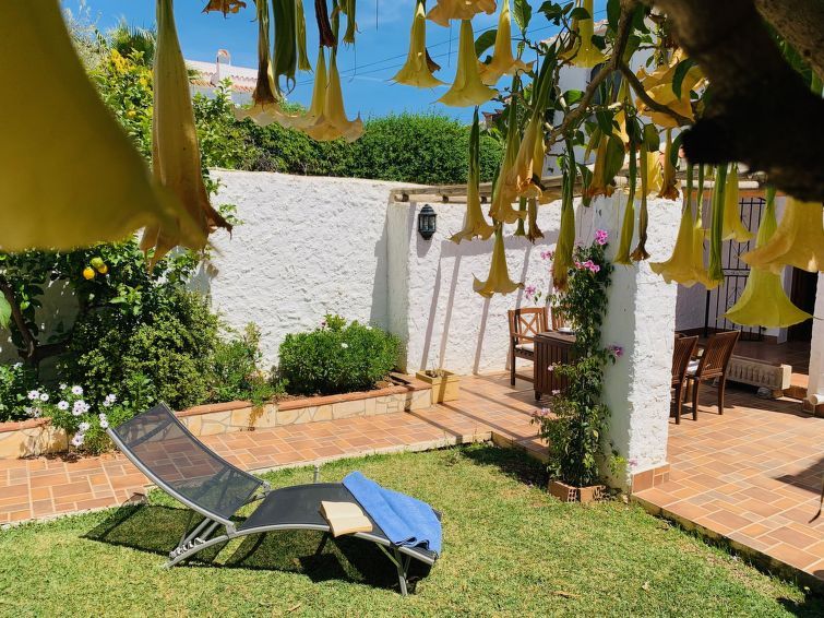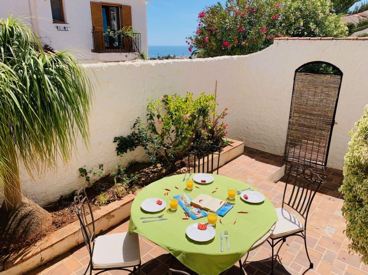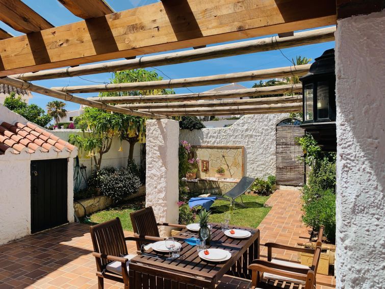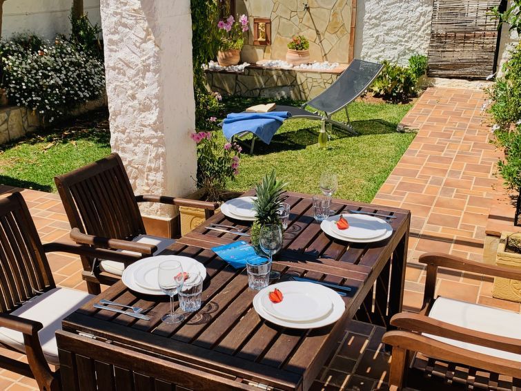 "Los Olivos de Capistrano", 3-room terraced house 121 m2. Spacious and bright, practical and comfortable furnishings: living/dining room with digital TV, air conditioning and forced-air heating. Exit to the garden, to the patio. Open kitchen (5 hot plates, oven, dishwasher, toaster, kettle, microwave, freezer, electric coffee machine, combination microwave).